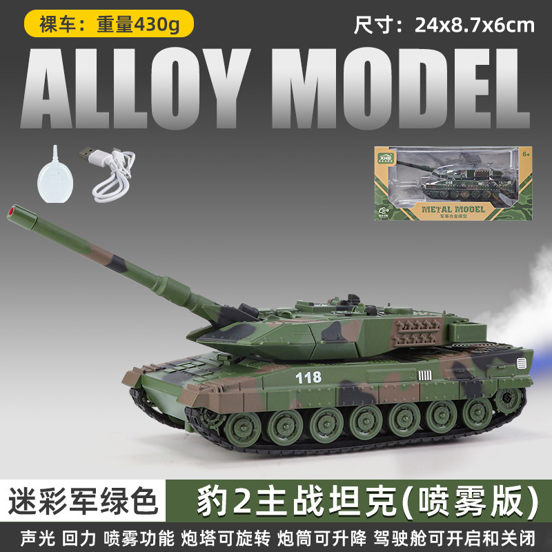 新豪迪合金豹式坦克模型回力声光玩具豹二主战装甲车仿真车可喷雾