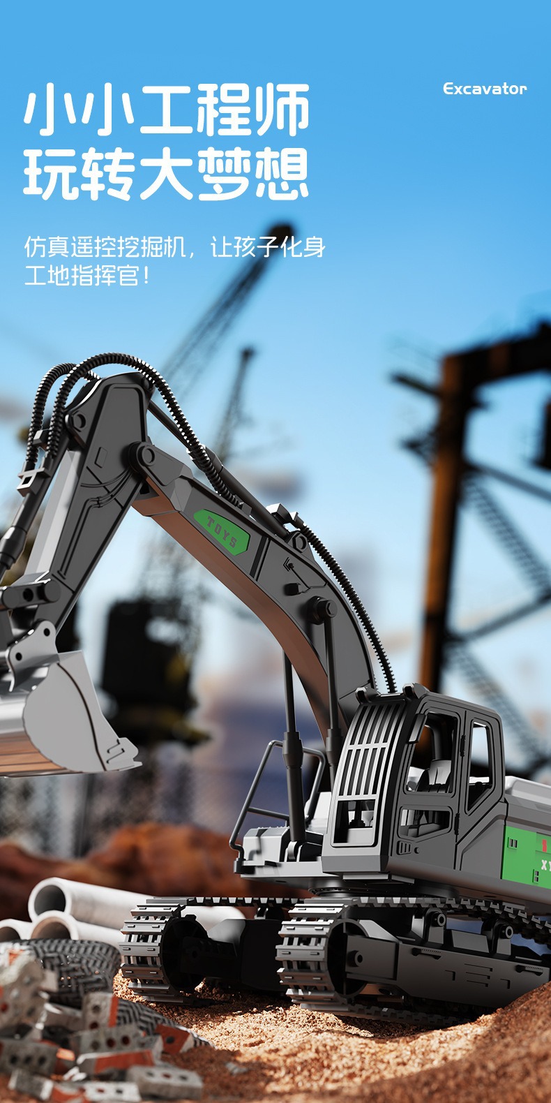 儿童超大号合金rc遥控挖掘机工程车玩具履带男孩仿真模型