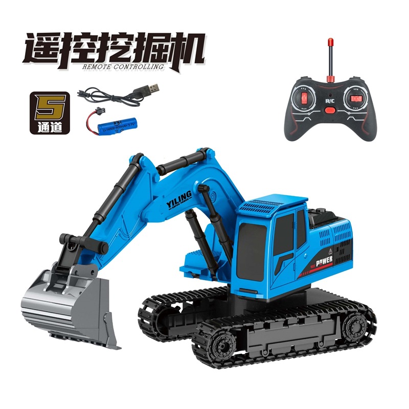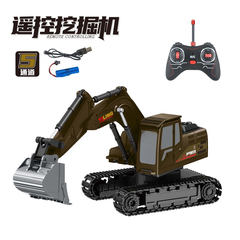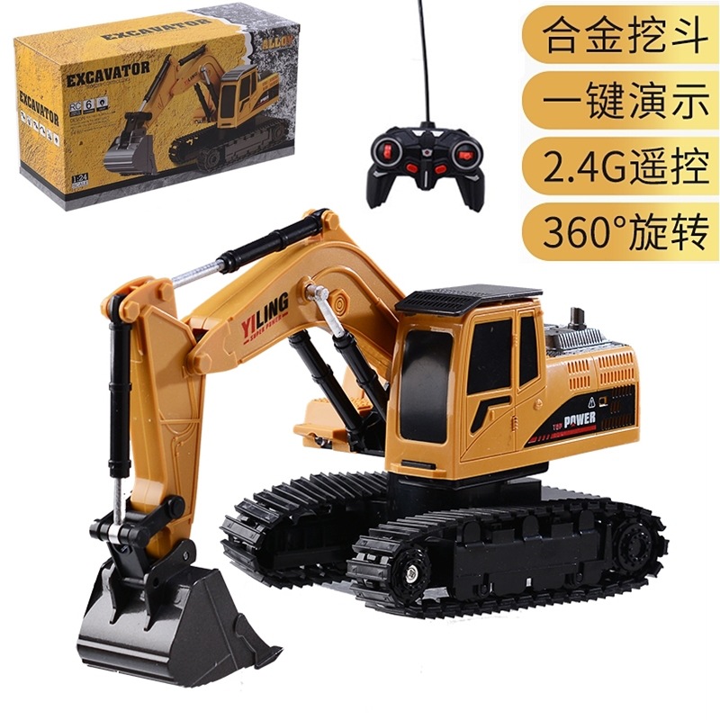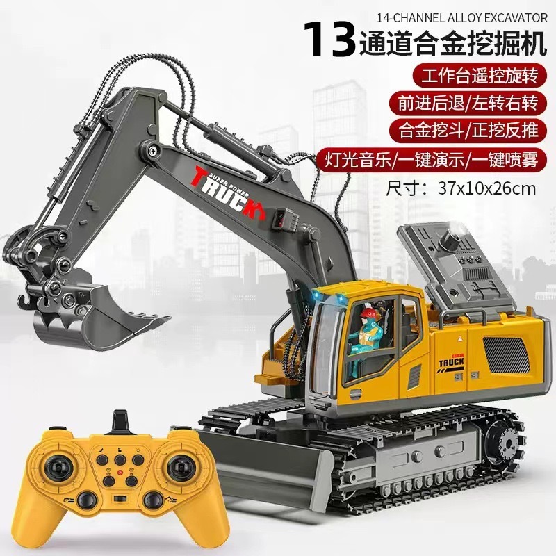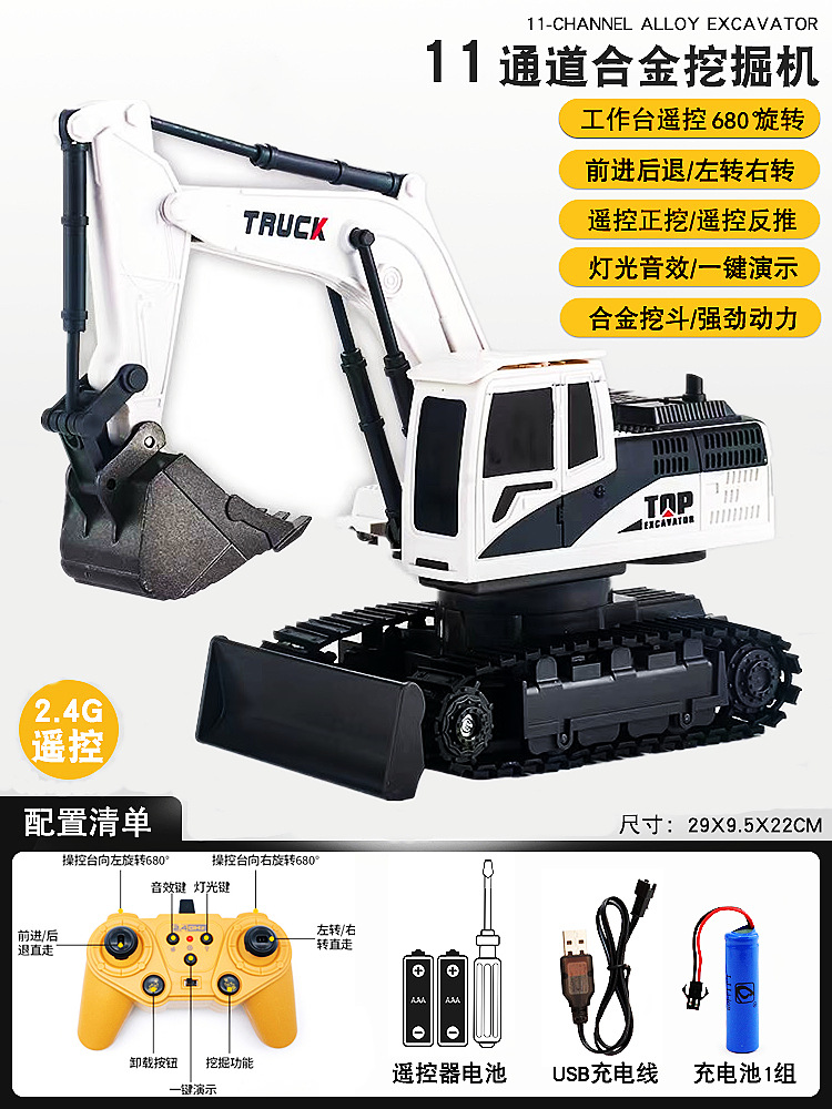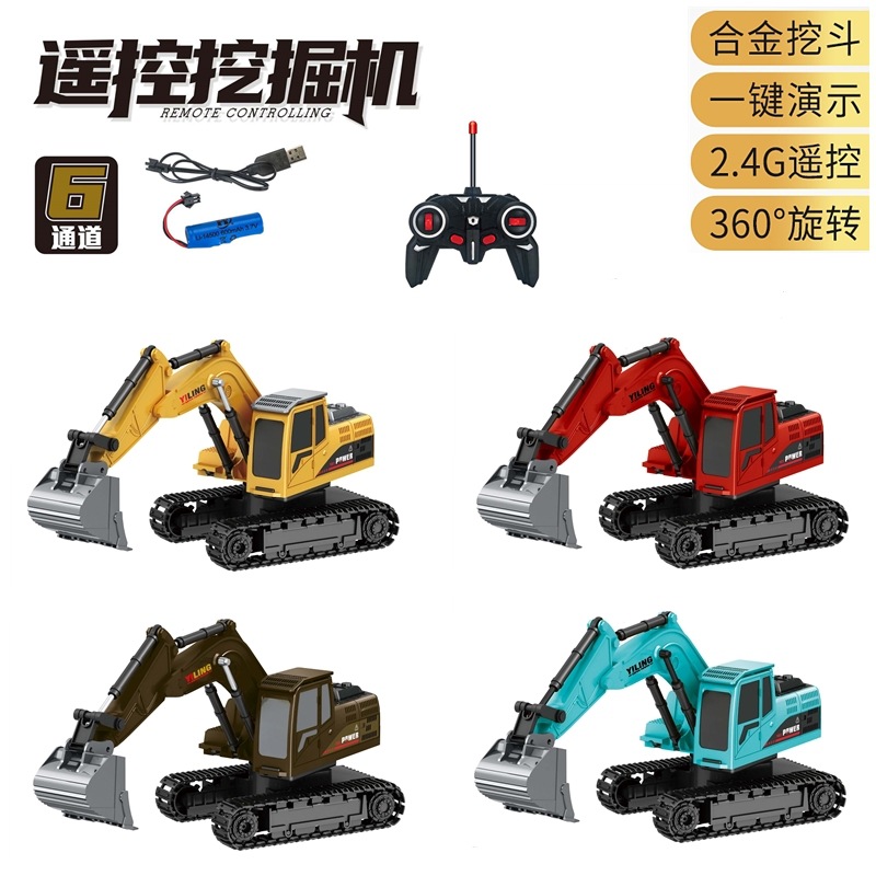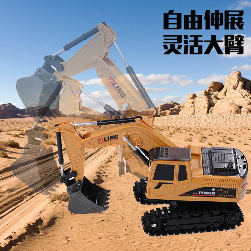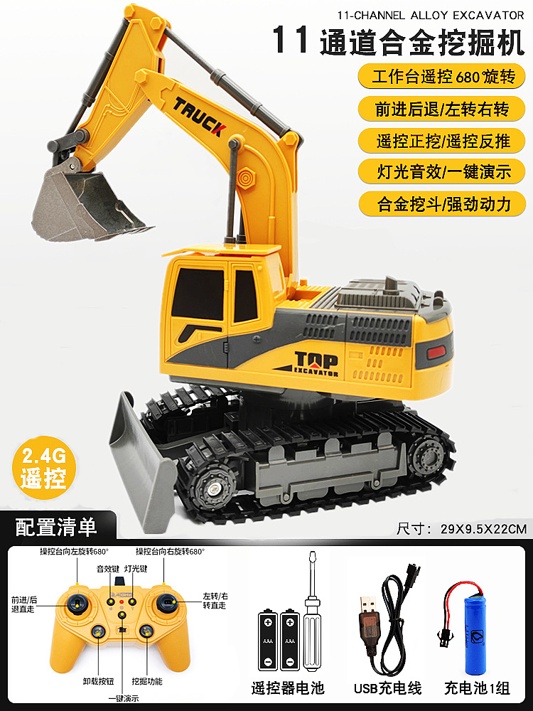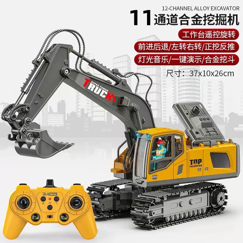 儿童合金遥控挖掘机玩具六通遥控挖土机11通道电动工程车玩具跨境