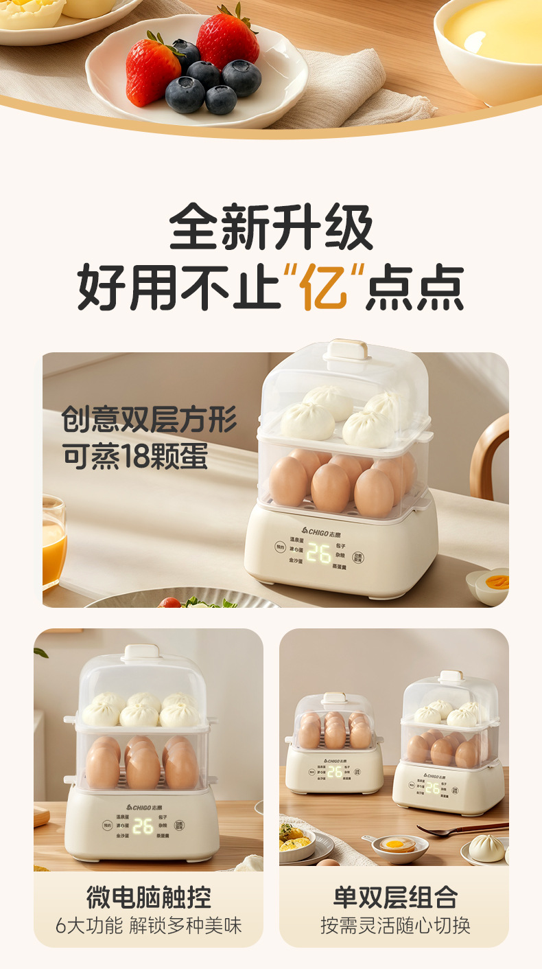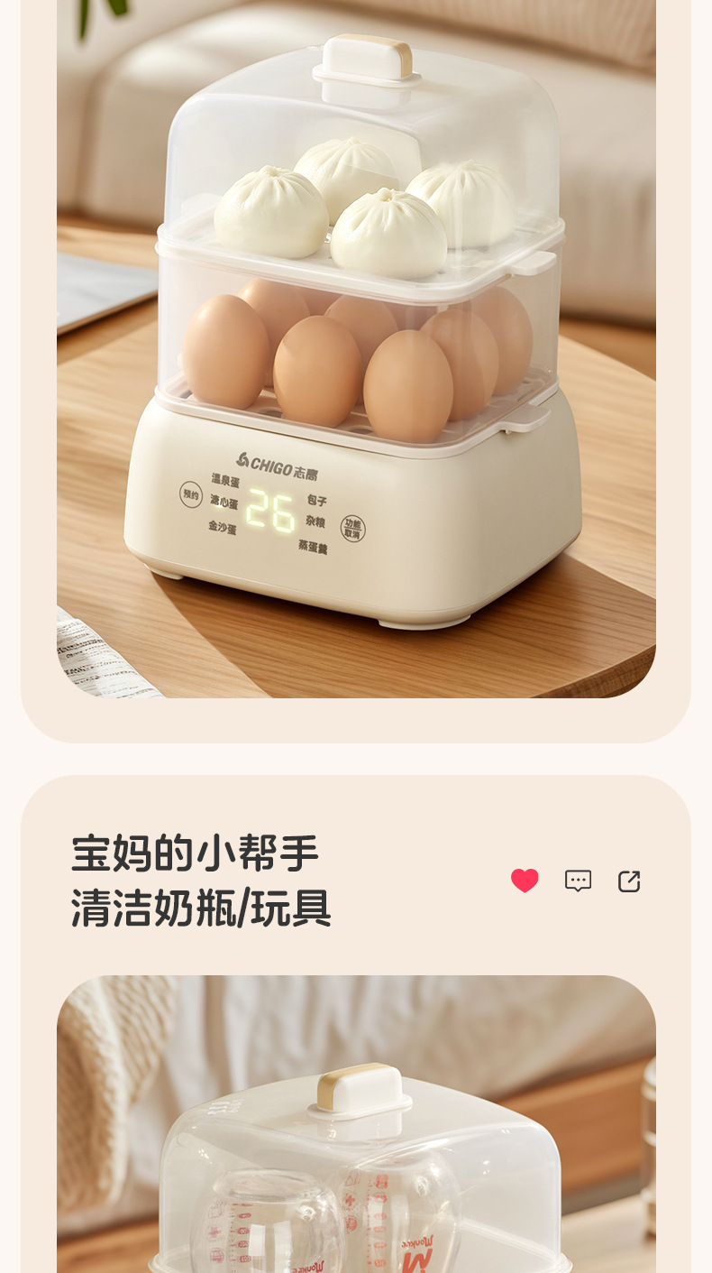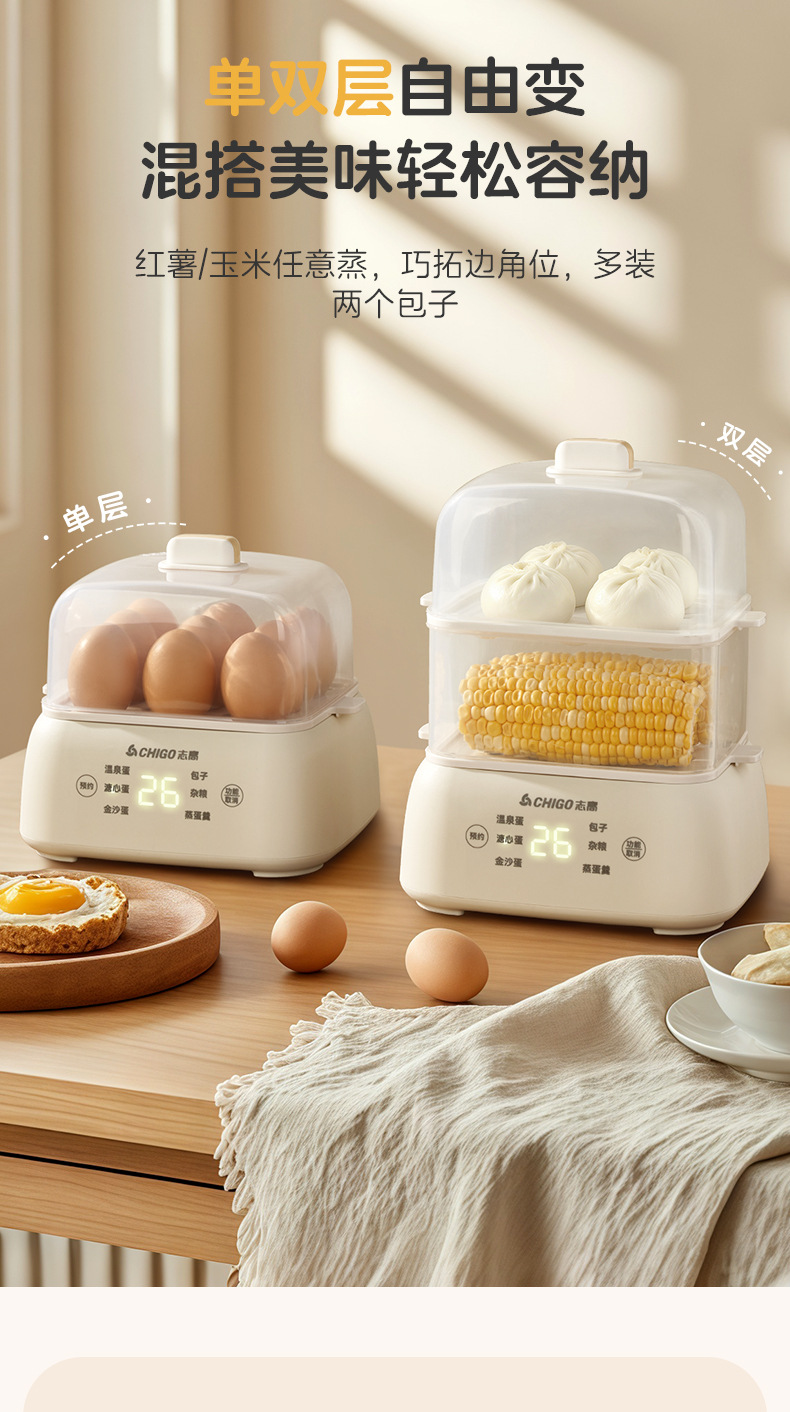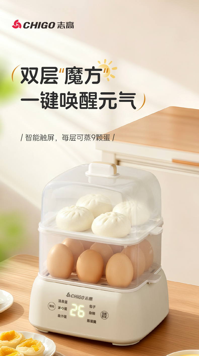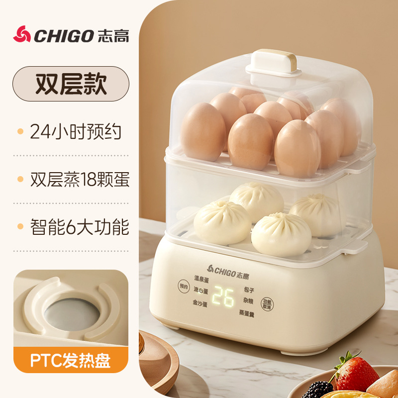 志高电蒸锅大容量蒸蛋器双层定时家用自动断电早餐机蒸蛋器煮蛋器