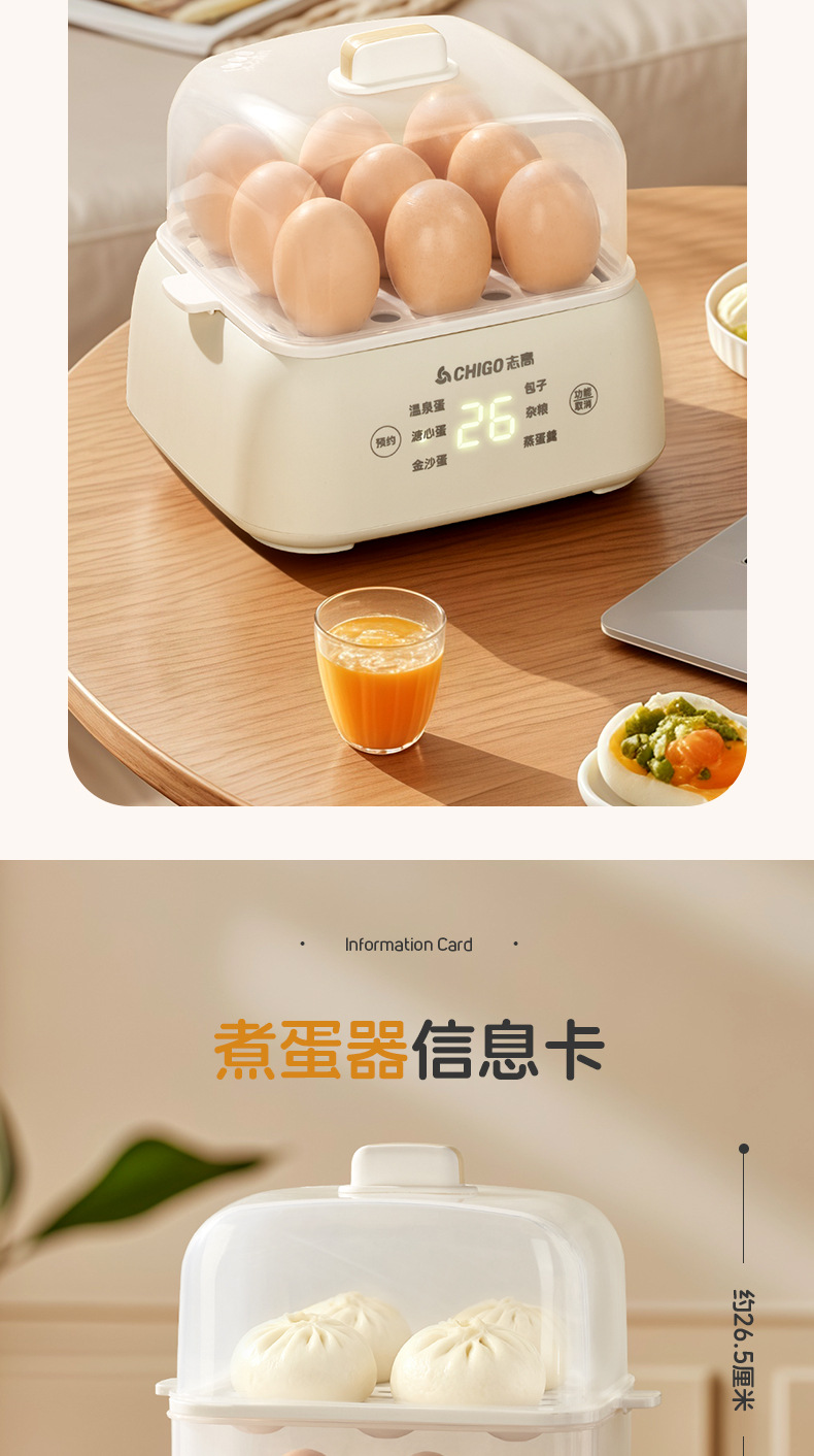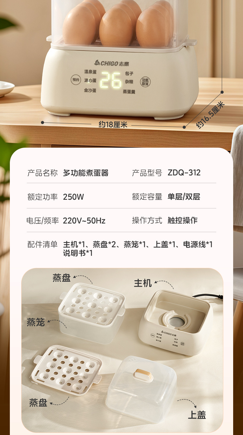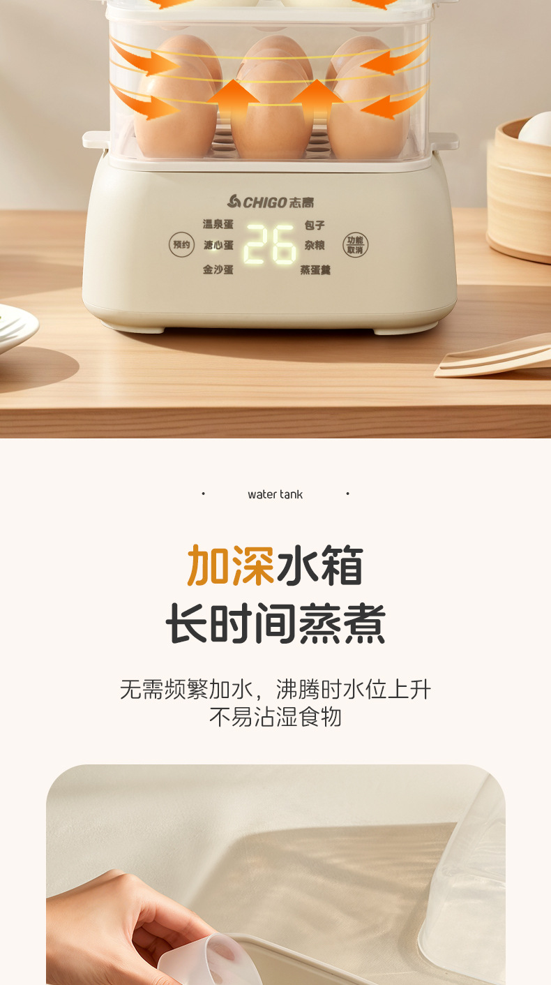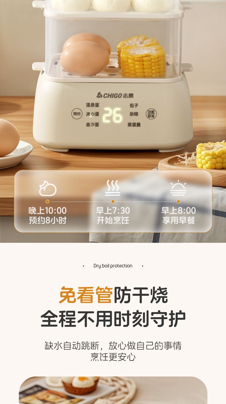 志高电蒸锅大容量蒸蛋器双层定时家用自动断电早餐机蒸蛋器煮蛋器