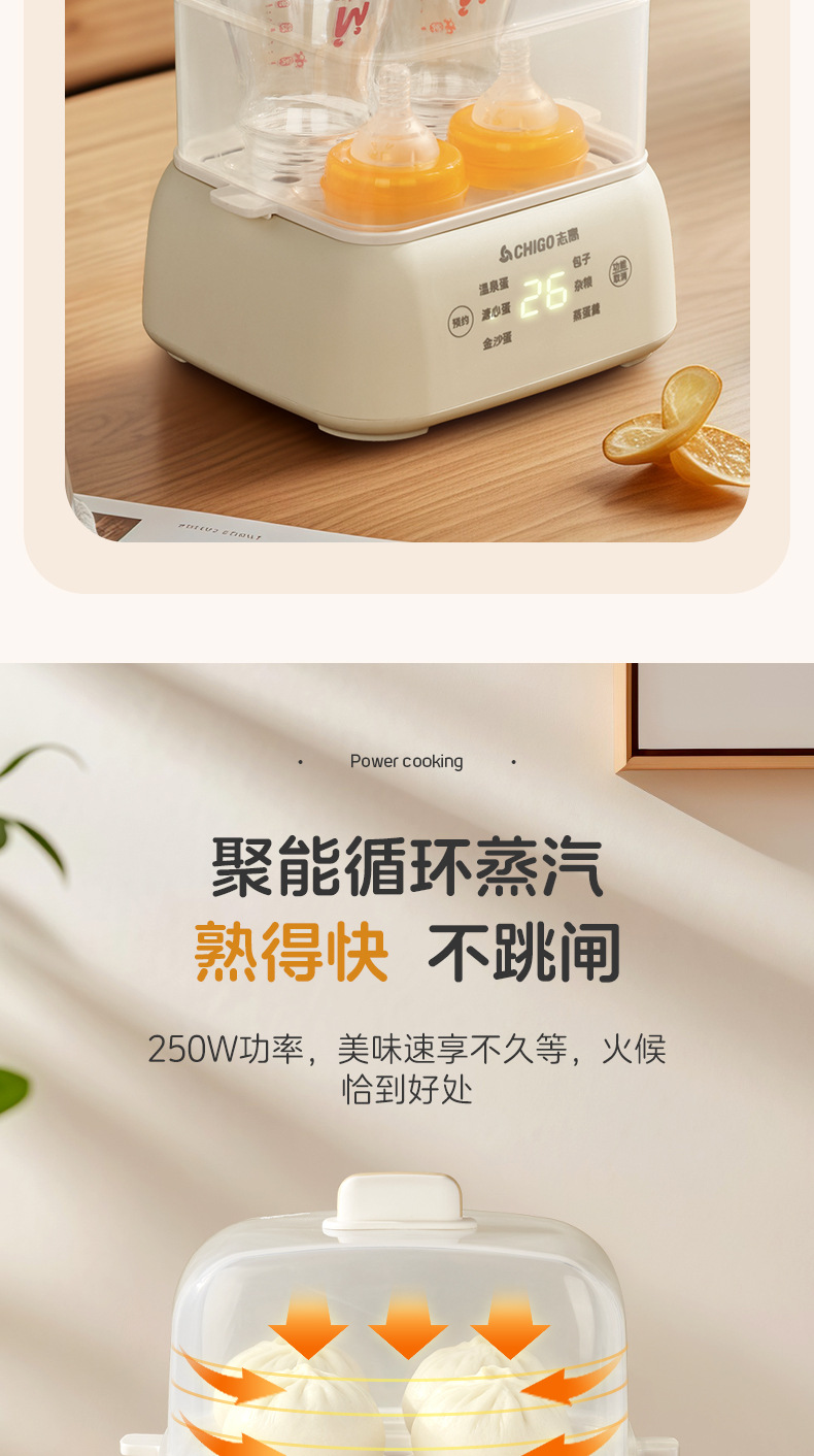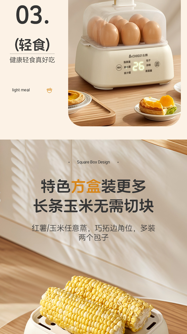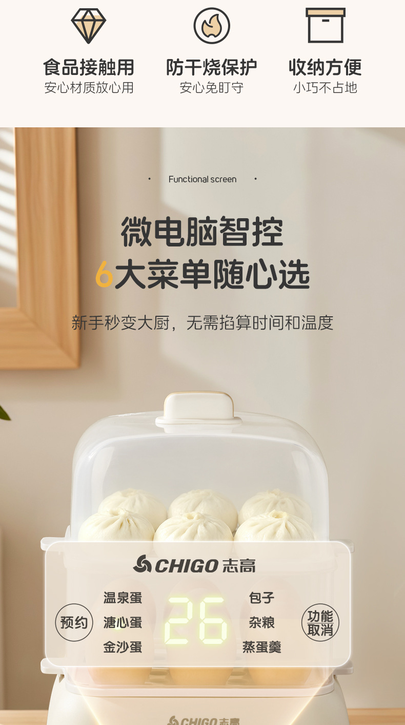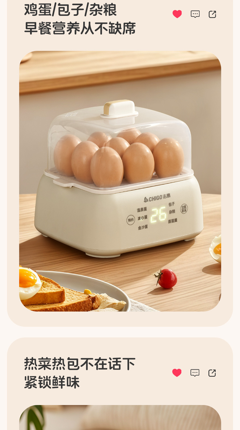 志高电蒸锅大容量蒸蛋器双层定时家用自动断电早餐机蒸蛋器煮蛋器