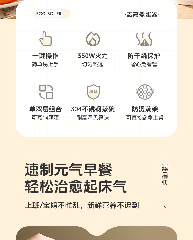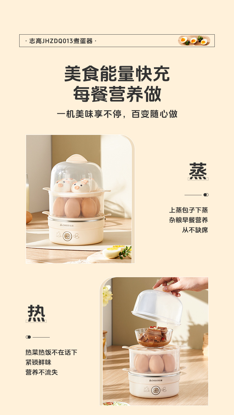 志高煮蛋器机双层自动断电家用蒸蛋器宿舍蒸煮鸡蛋早餐机鸡蛋羹