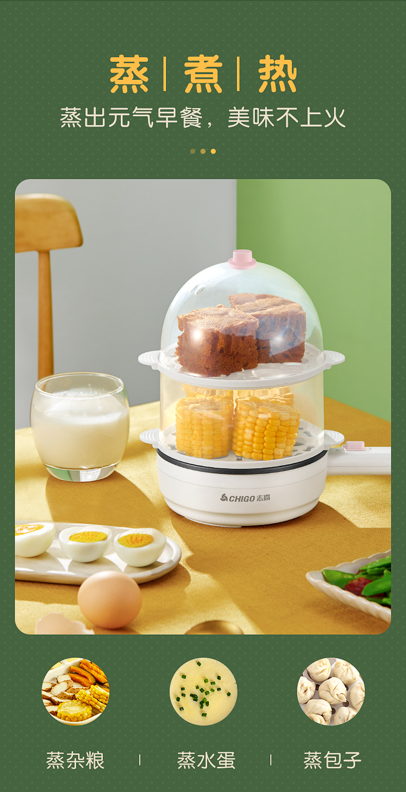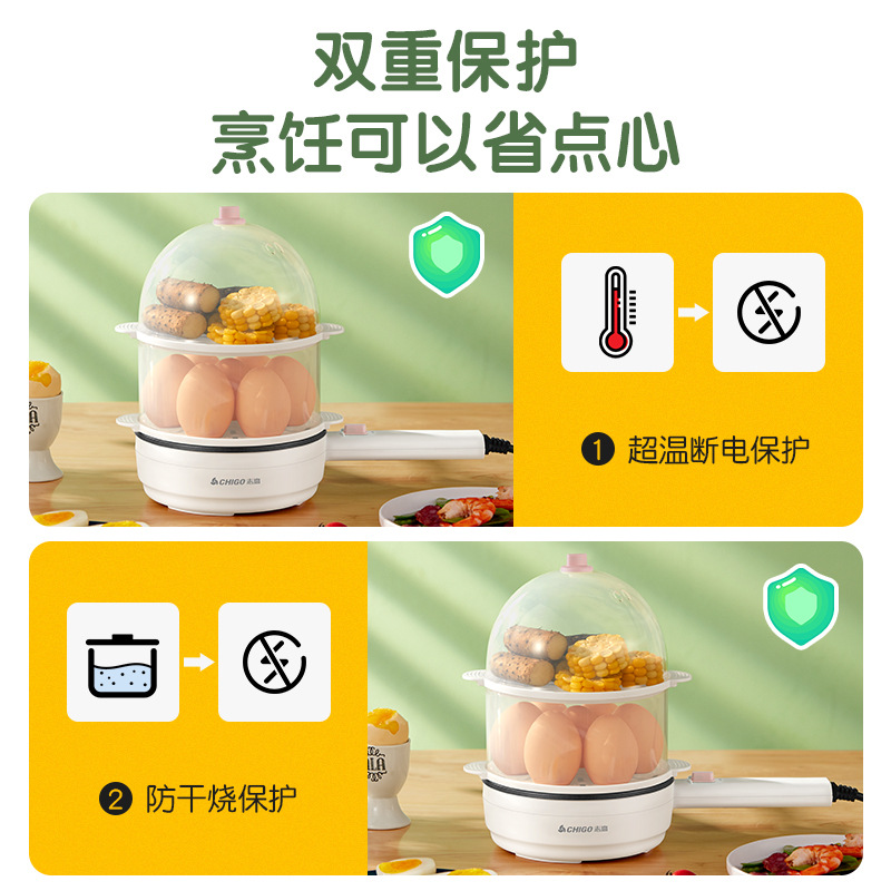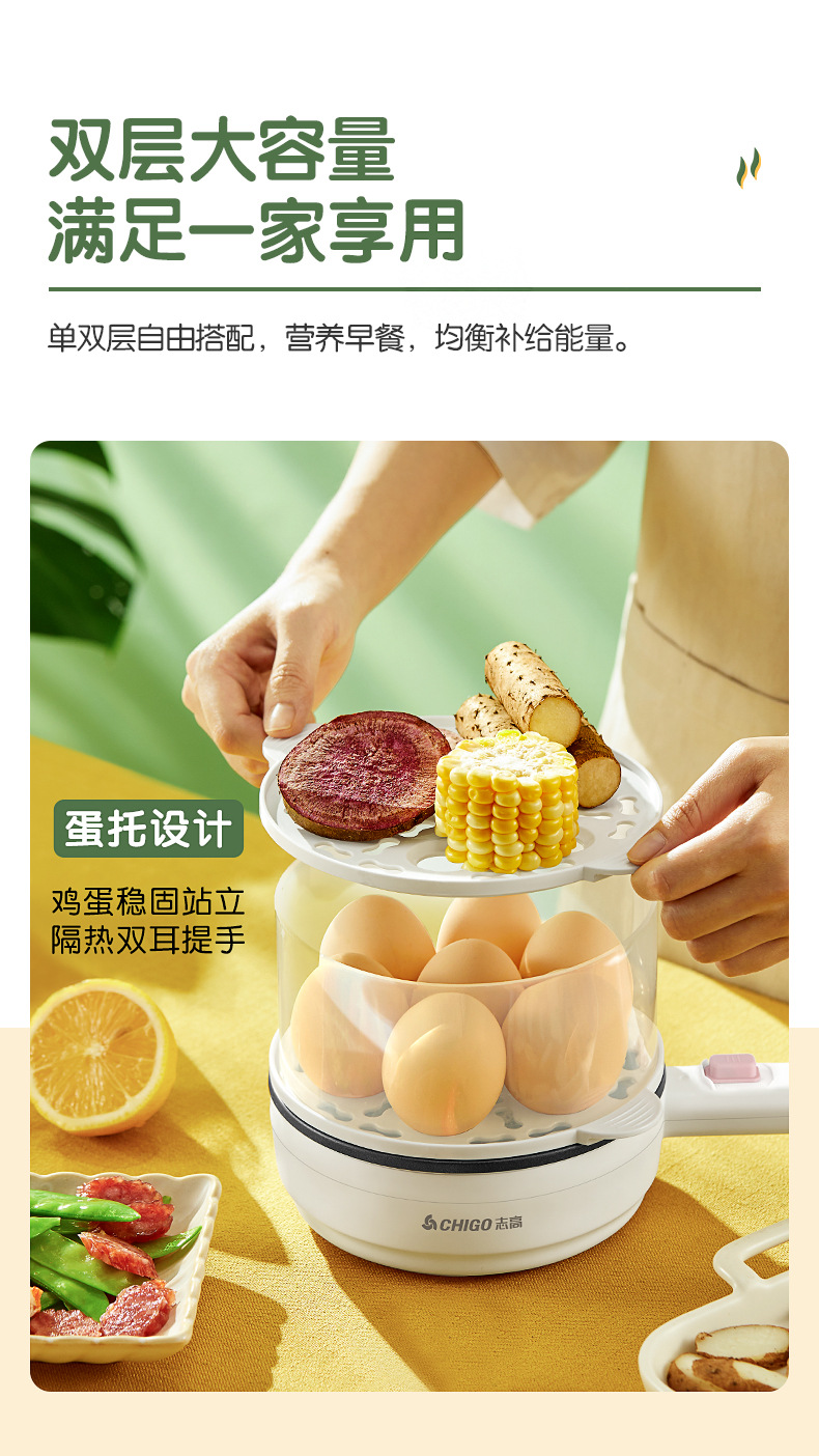 志高煮蛋器双层家用蒸蛋器自动断电蒸鸡蛋羹多功能早餐煎鸡蛋神器