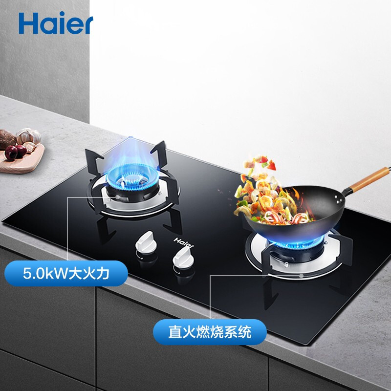 海尔燃气灶家用厨房5.0KW天然气双灶大功率猛火熄火家用双灶液化