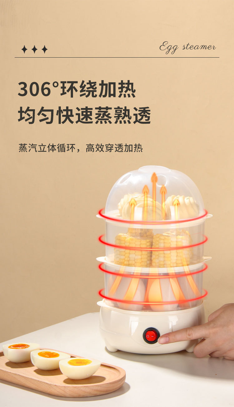 煮蛋器+PP蒸架+304蒸碗+PP蒸格