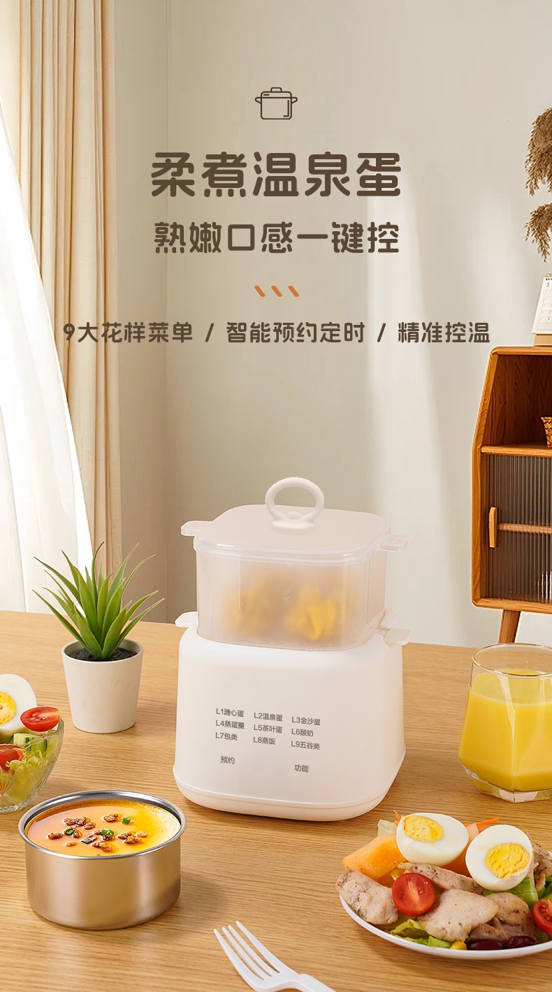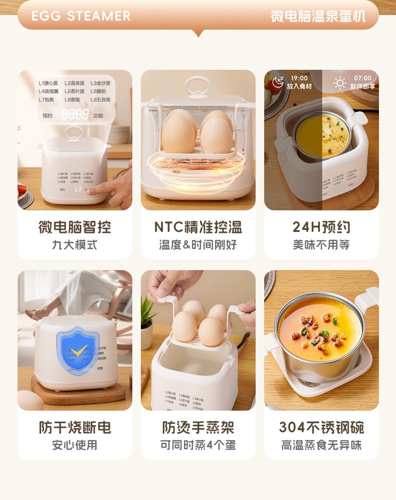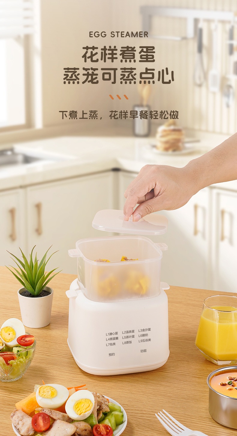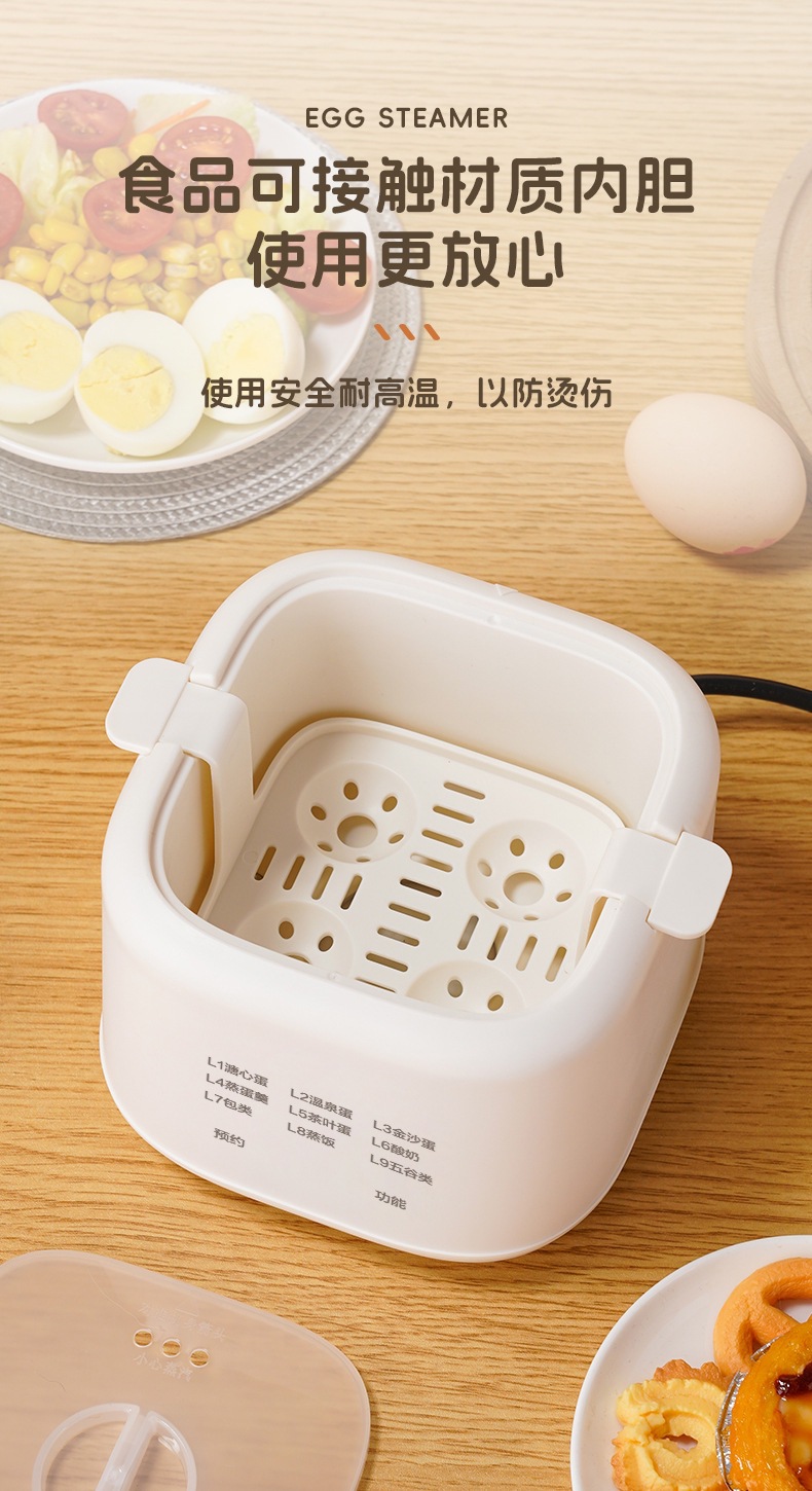 9键智能款煮蛋器+不锈钢碗+蒸笼白色