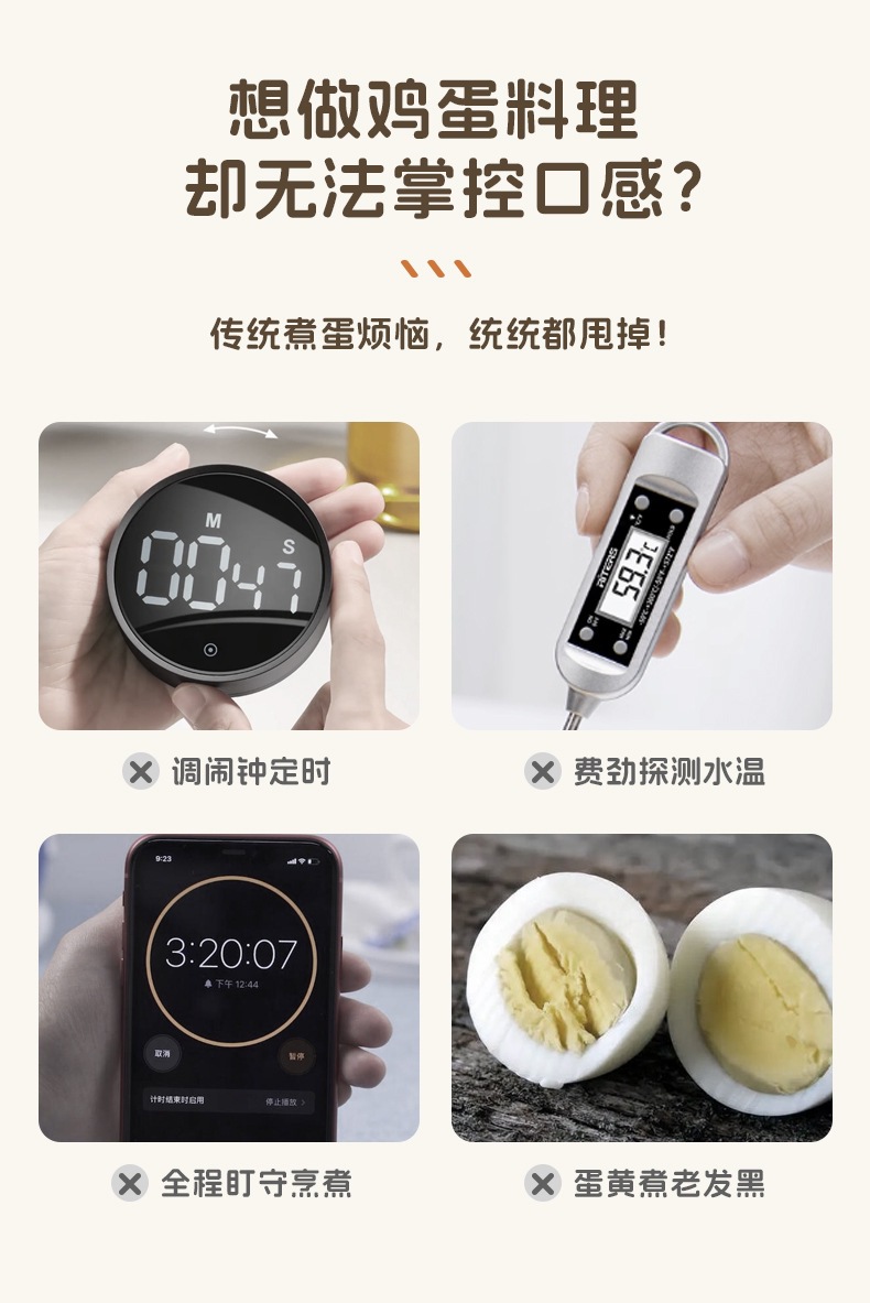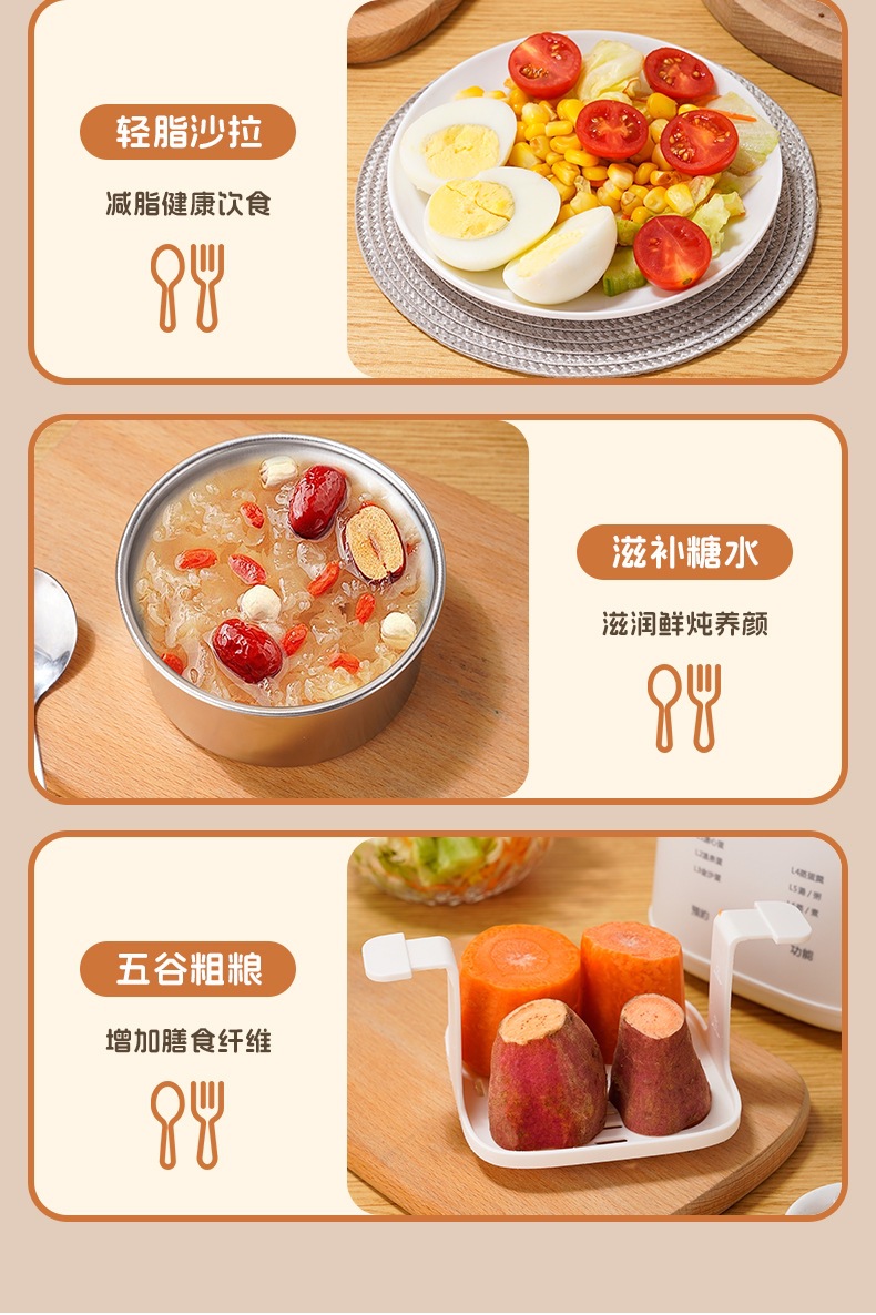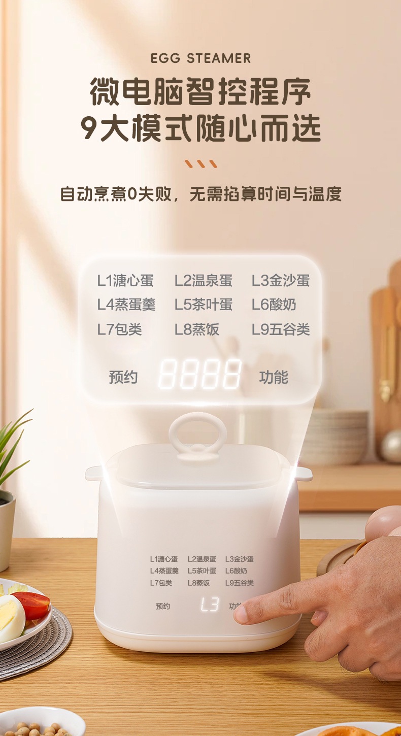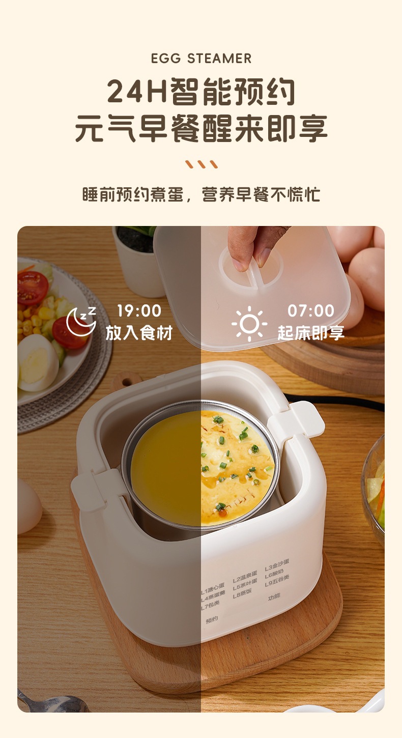 9键智能款煮蛋器+不锈钢碗+蒸笼白色