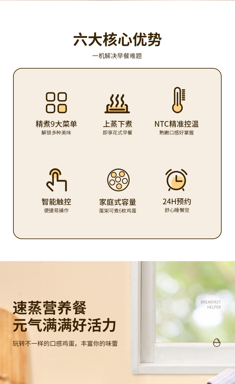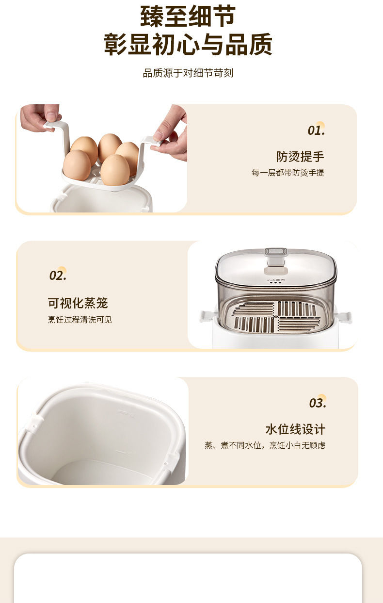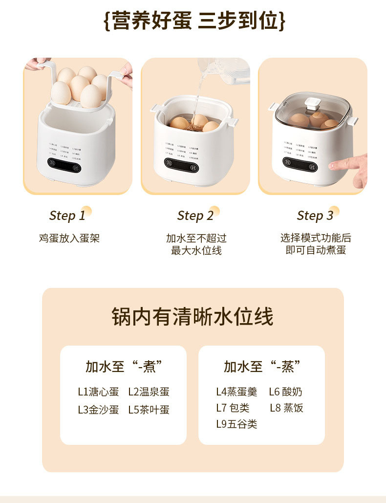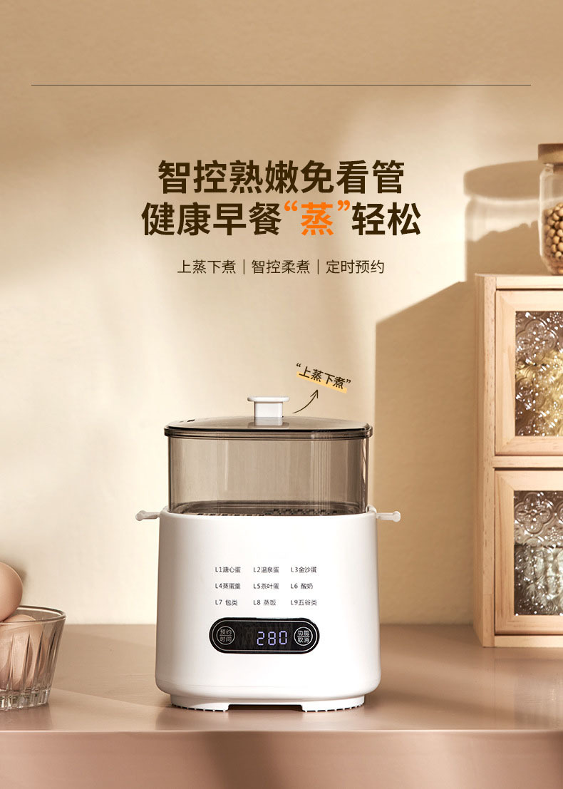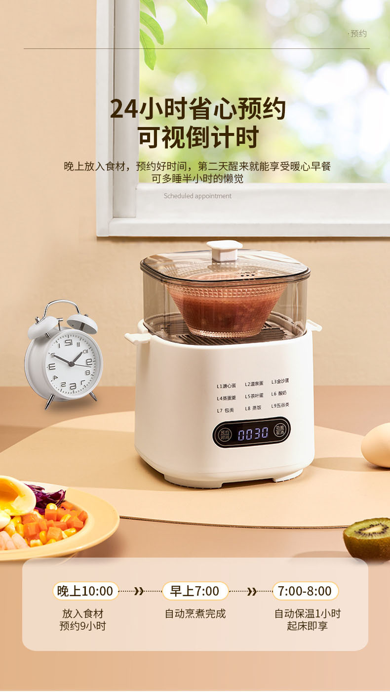 【24H预约+自动断电】蒸蛋架+蛋羹碗+蒸笼