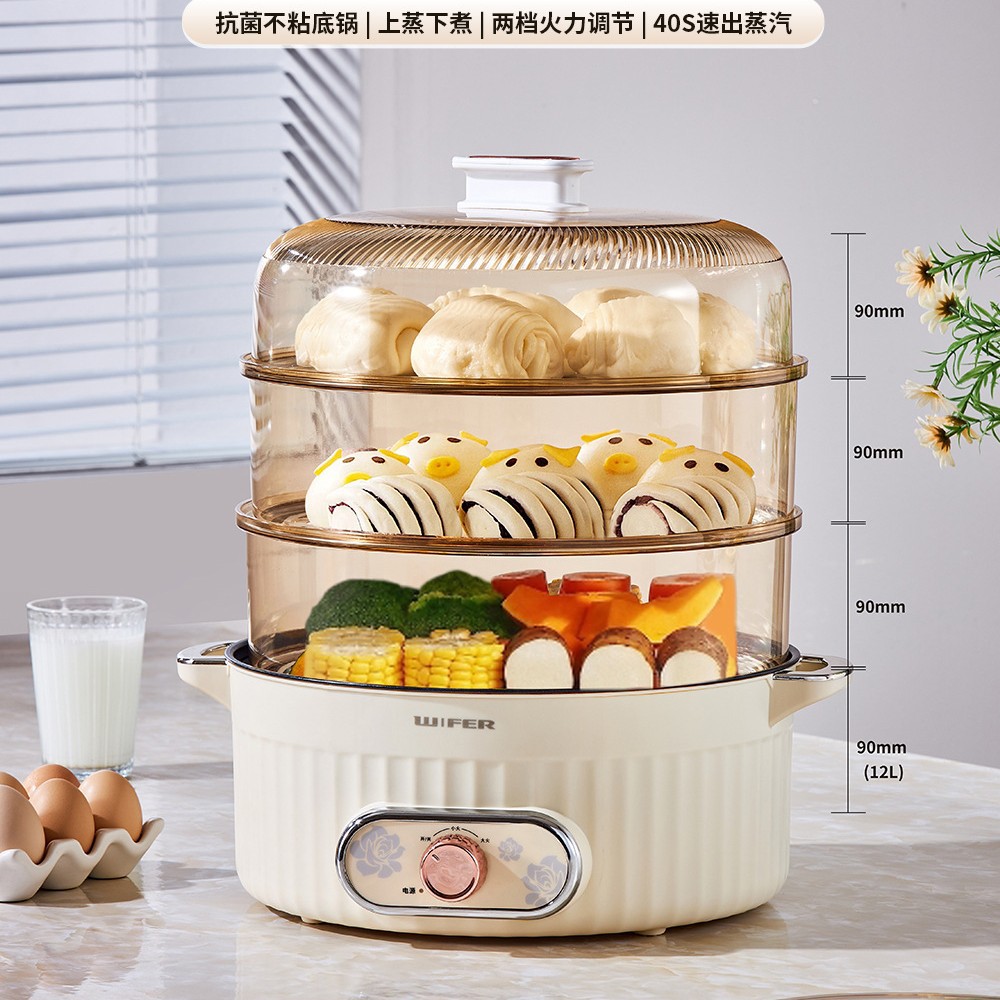 电蒸锅家用三层电蒸笼多功能蒸锅一体大容量早餐机