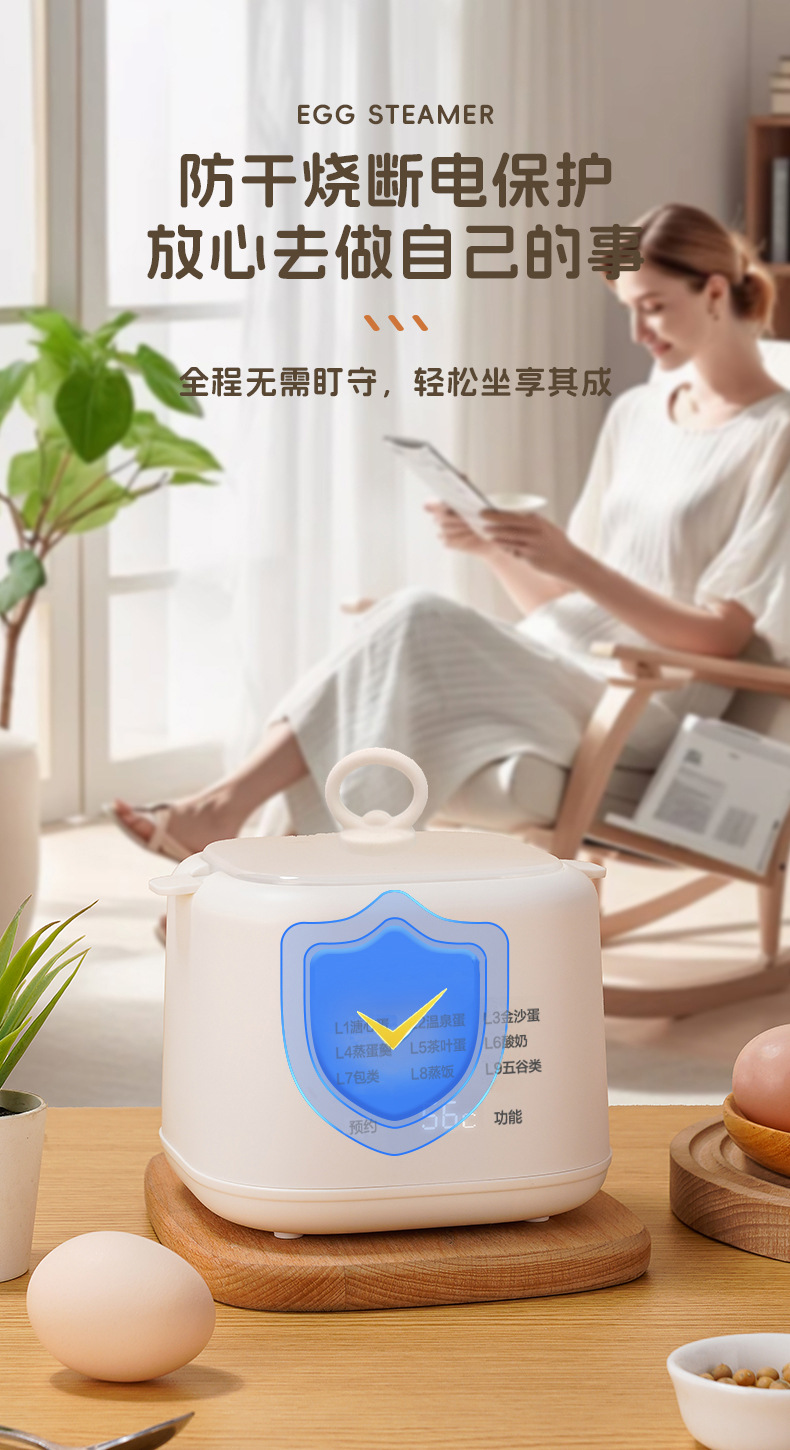 6键智能款煮蛋器+不锈钢碗+蒸笼 白色
