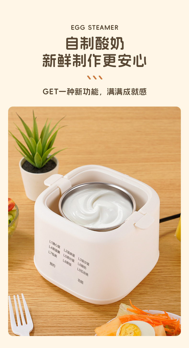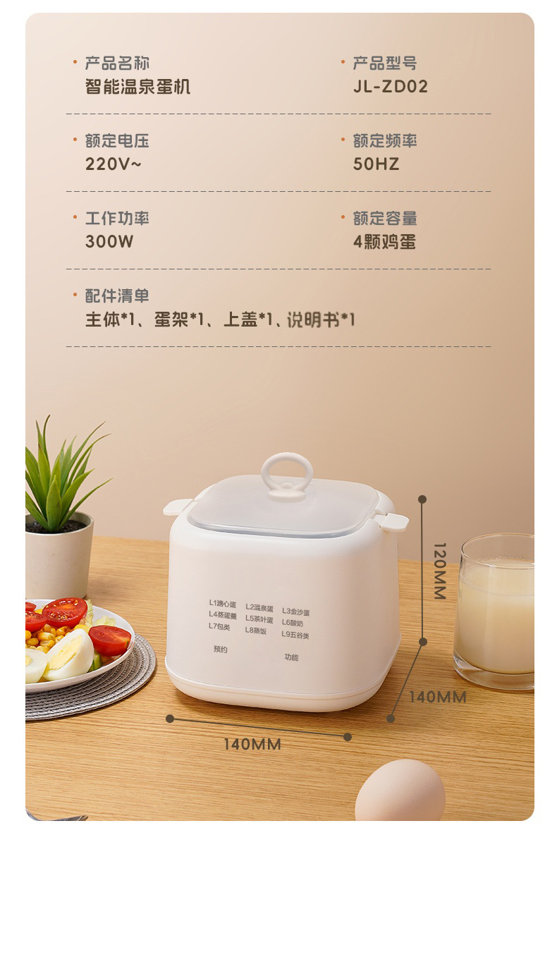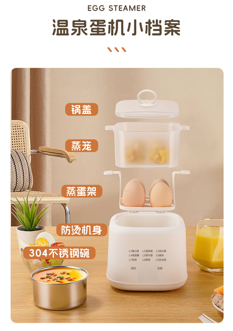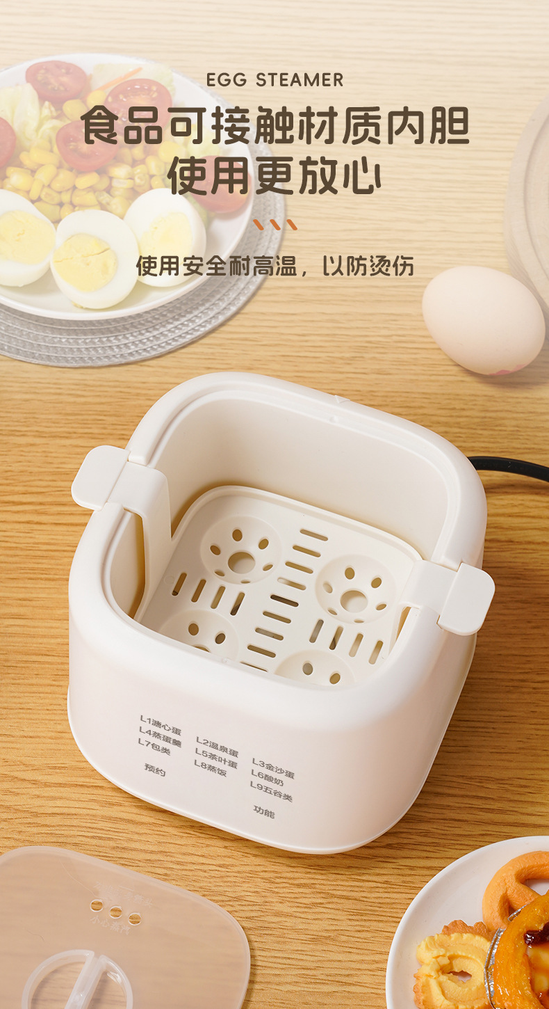 9键智能款煮蛋器+不锈钢碗+蒸笼 白色