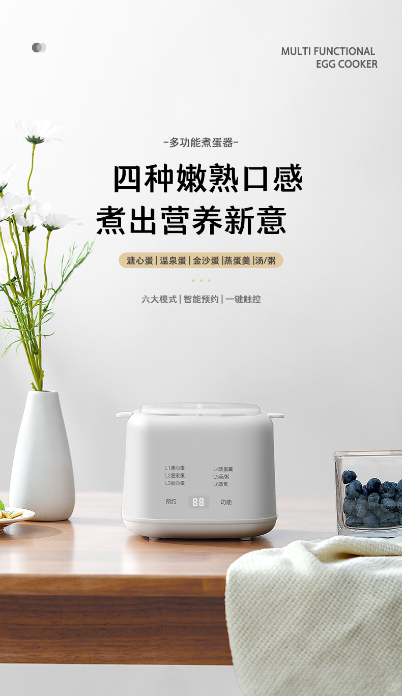 6功能煮蛋器【主机+蒸蛋架+蛋羹碗】