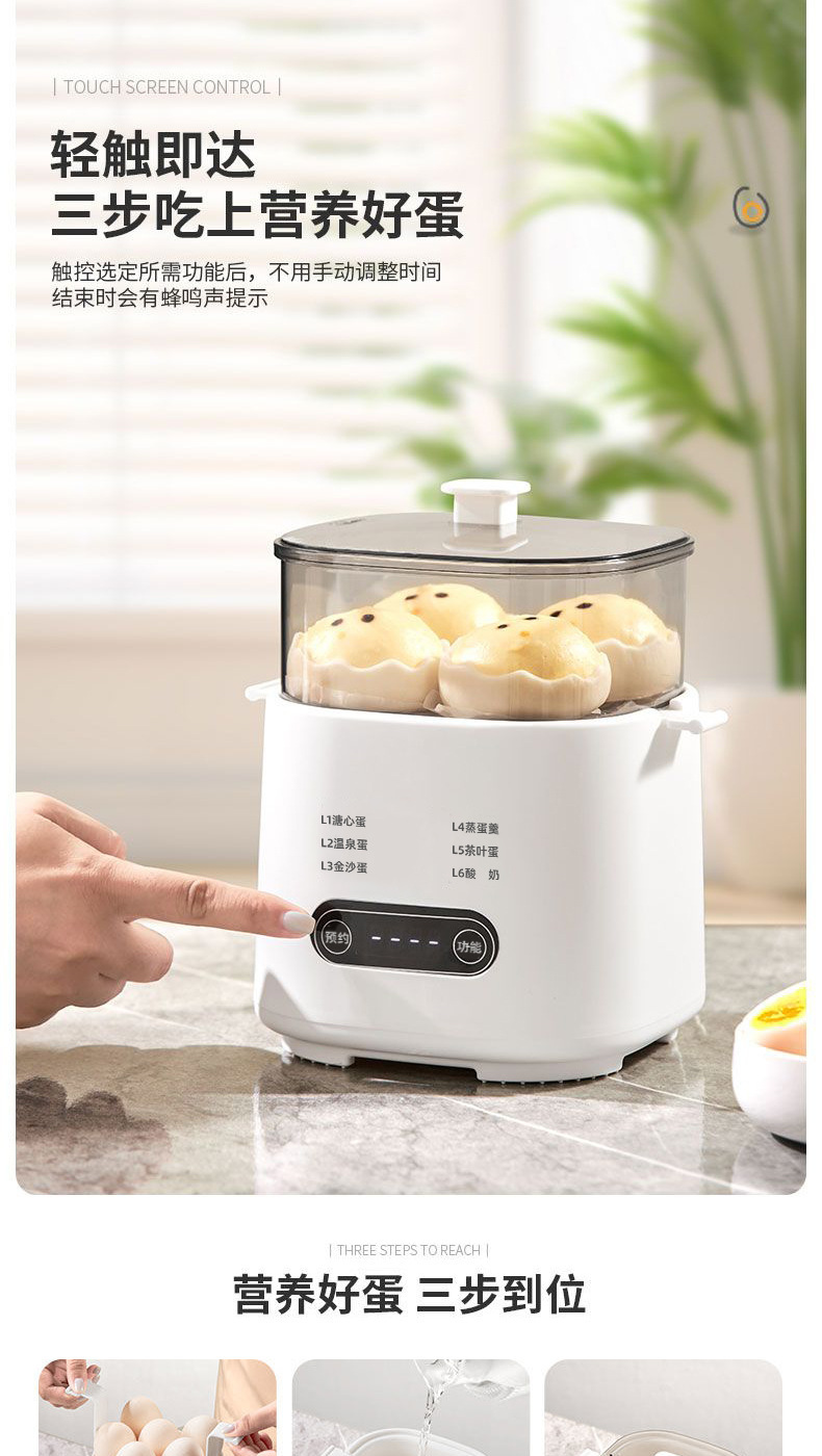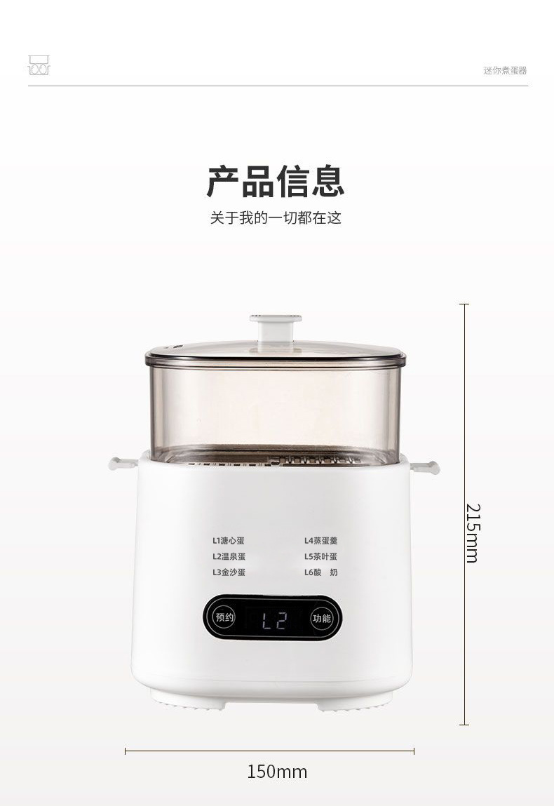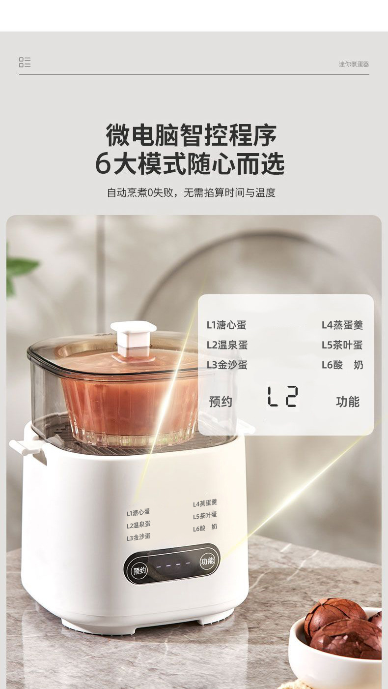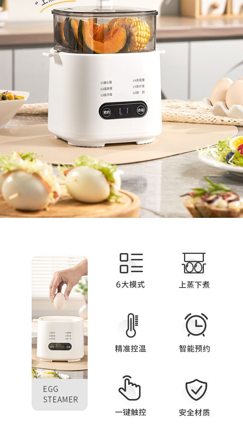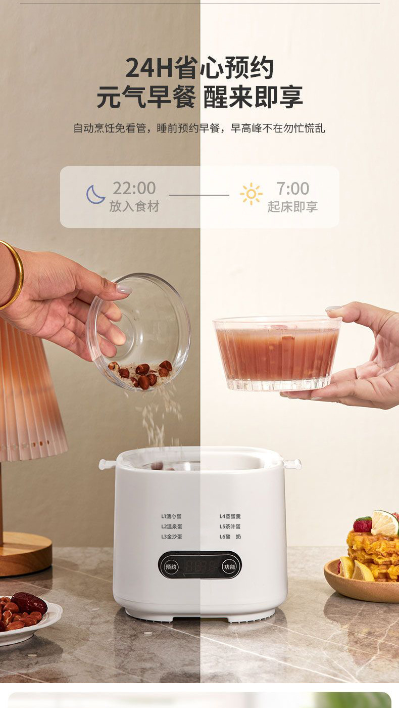 【6种预设菜单】主机+蒸蛋架/定时预约