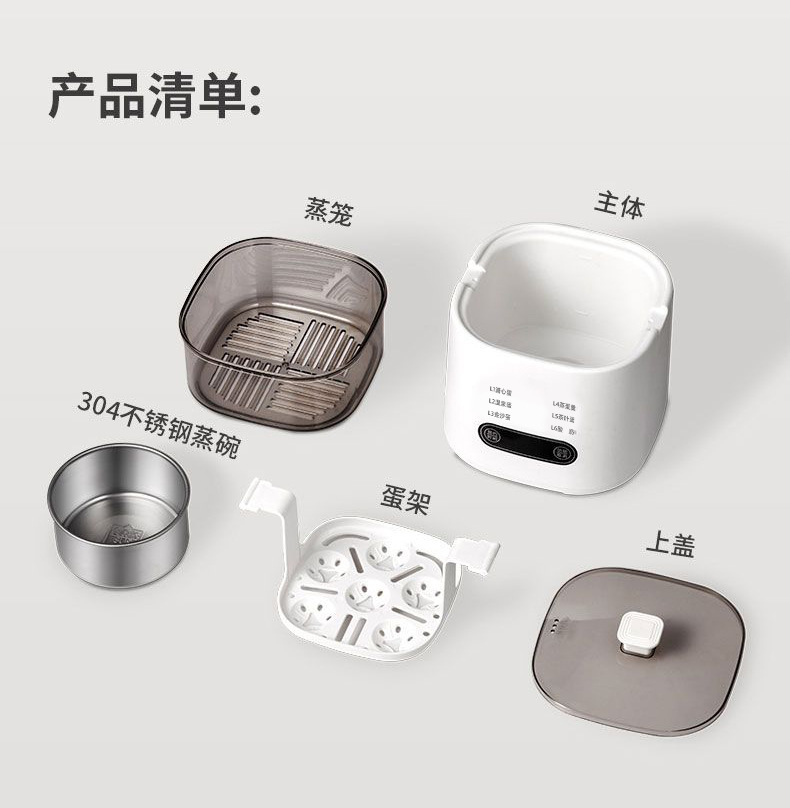 【6种预设菜单】主机+蒸蛋架+不锈钢蒸碗