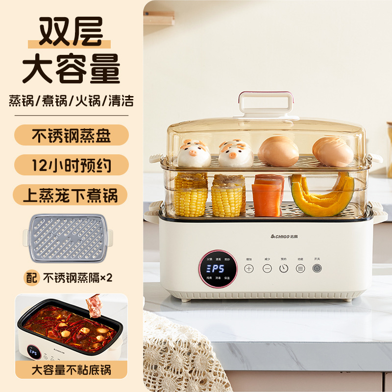 电蒸锅三层大容量蒸煮锅蒸笼多功能保温家用多层智能预约早餐