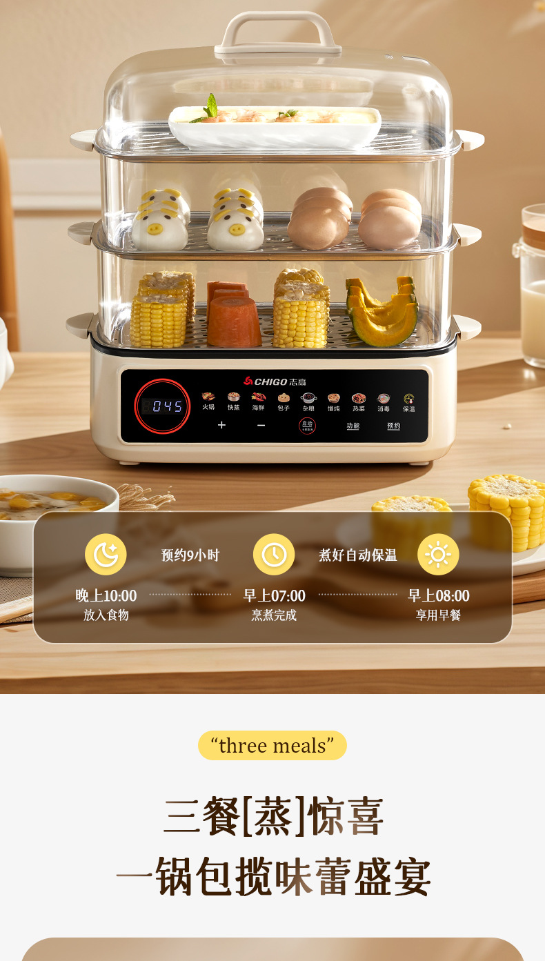 智能预约款三层【全不锈钢款蒸笼】