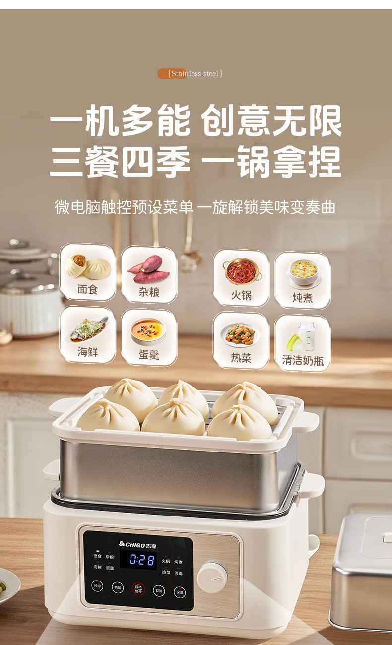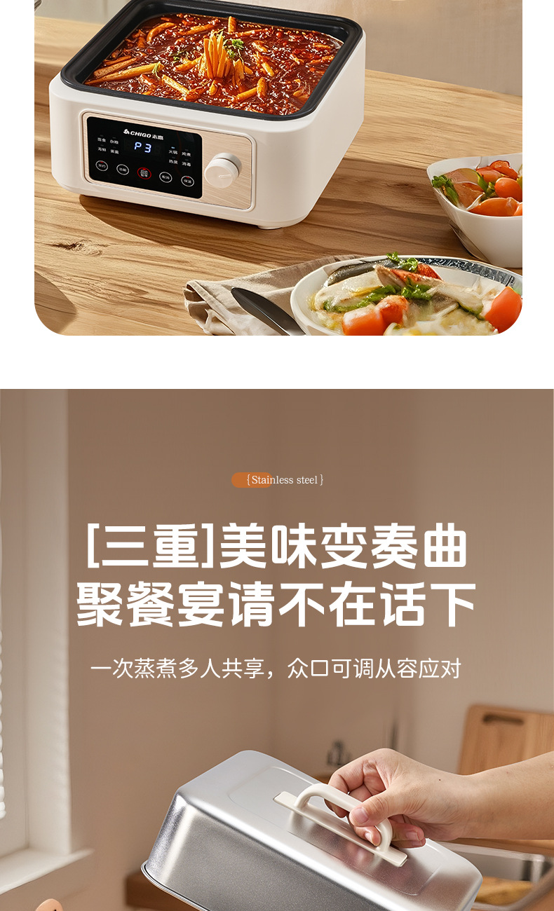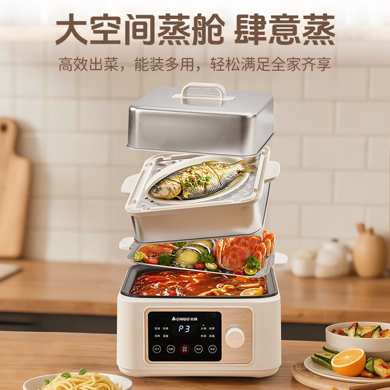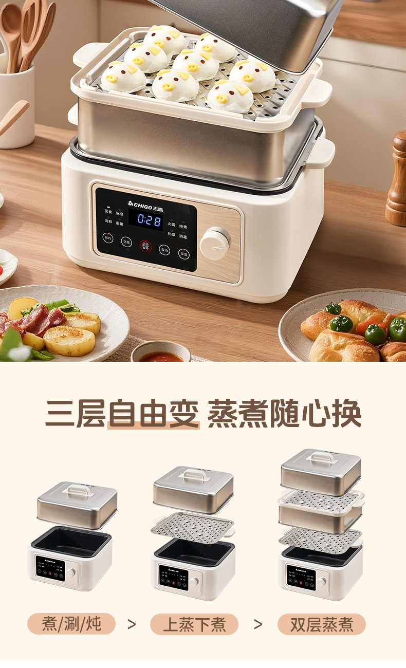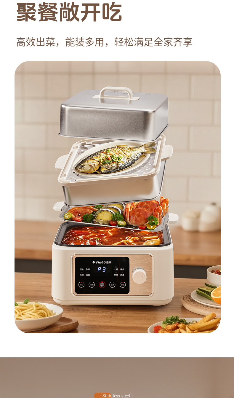 电蒸锅多功能家用三层蒸煮炖预约多层大容量不锈钢电火锅煮锅