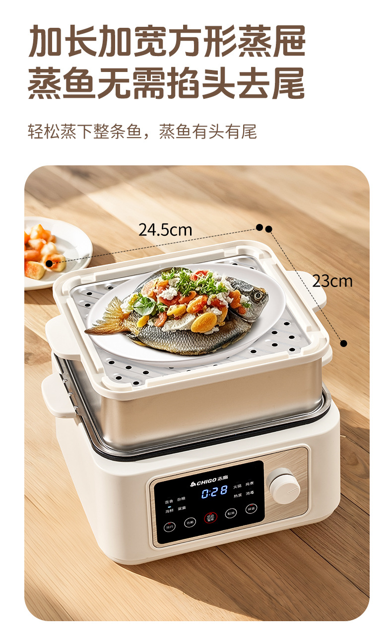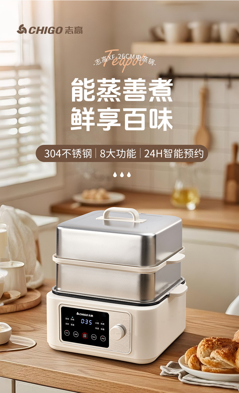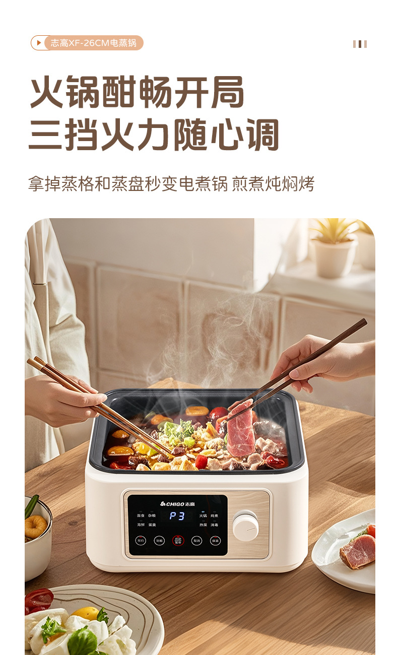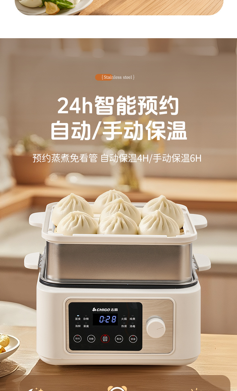 电蒸锅多功能家用三层蒸煮炖预约多层大容量不锈钢电火锅煮锅