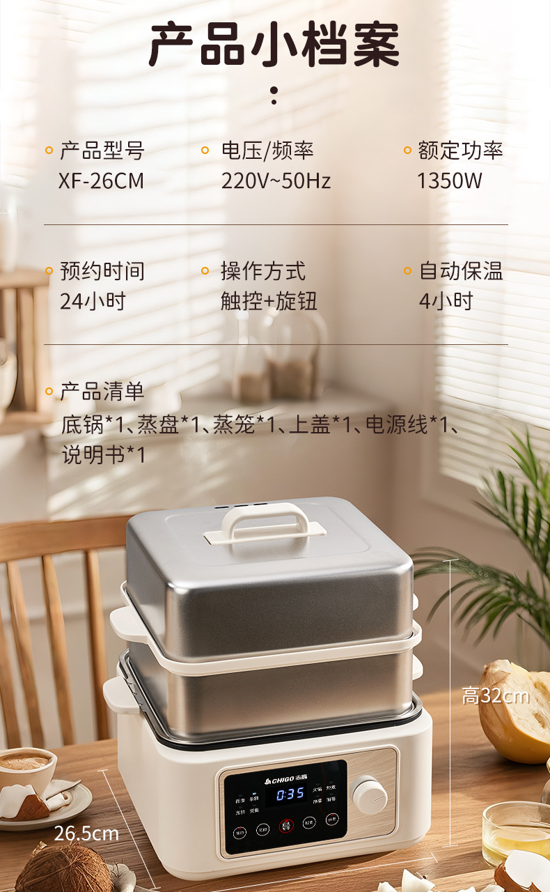电蒸笼家用早餐多功能三层大容量蒸汽锅自动断电蒸箱电蒸锅