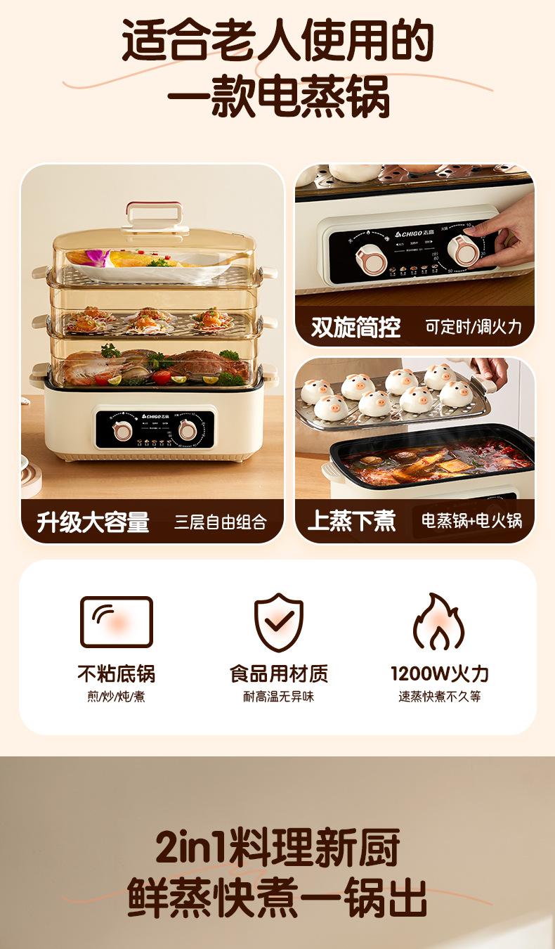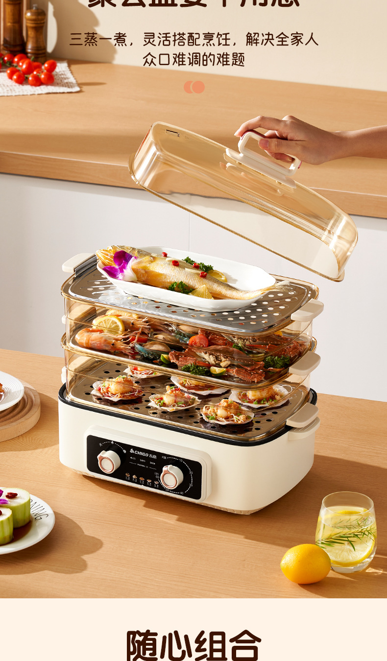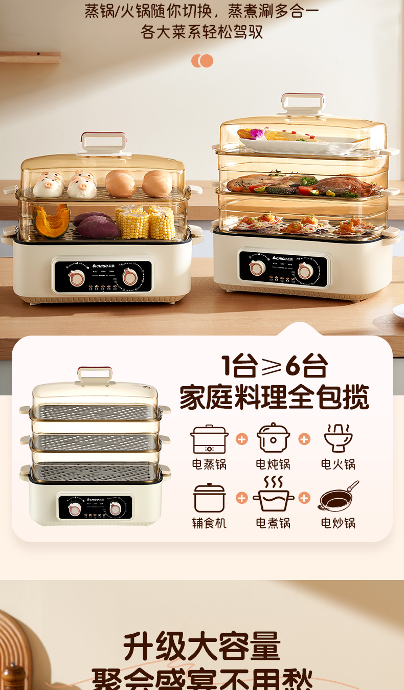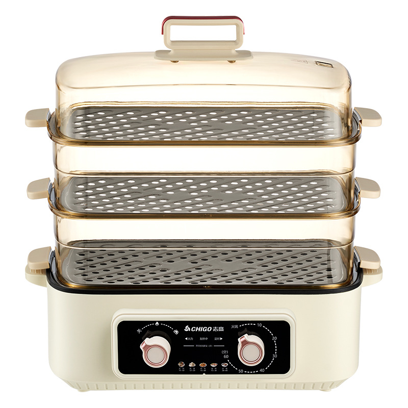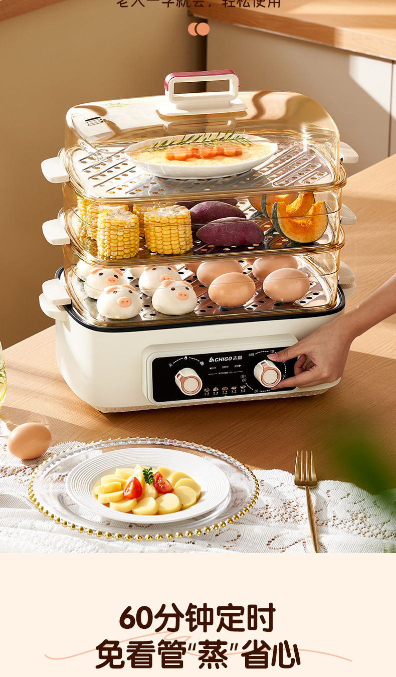 志高电蒸锅多功能家用三层蒸煮炖预约多层大容量不锈钢煮锅早餐机