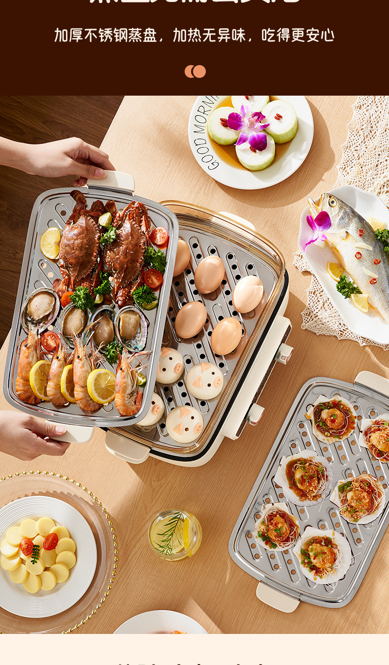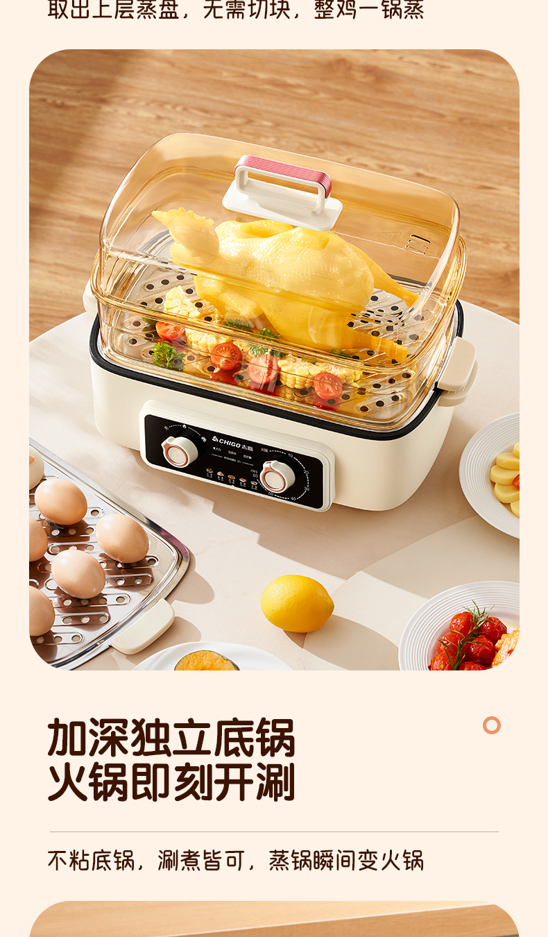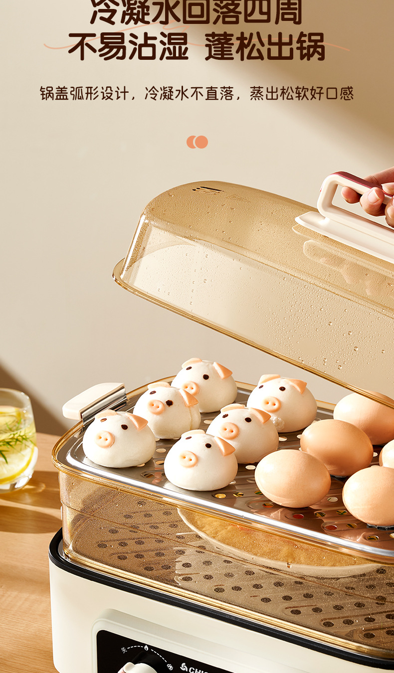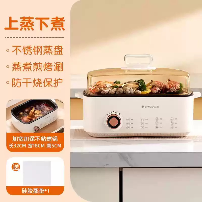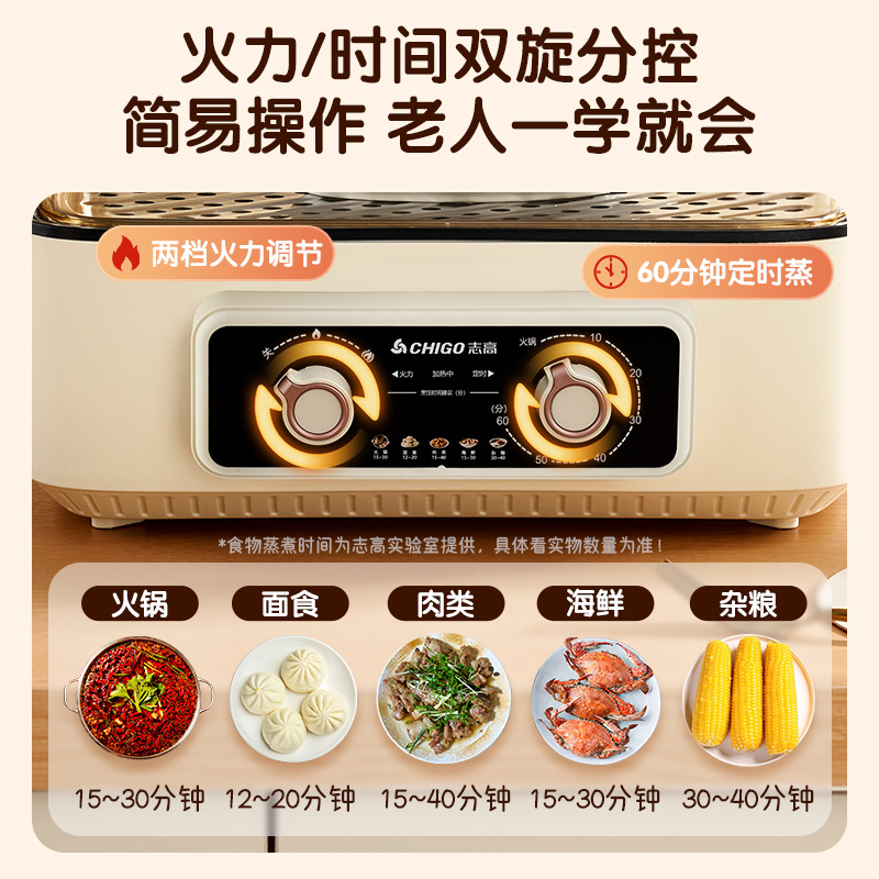 志高电蒸锅多功能家用三层蒸煮炖预约多层大容量不锈钢煮锅早餐机