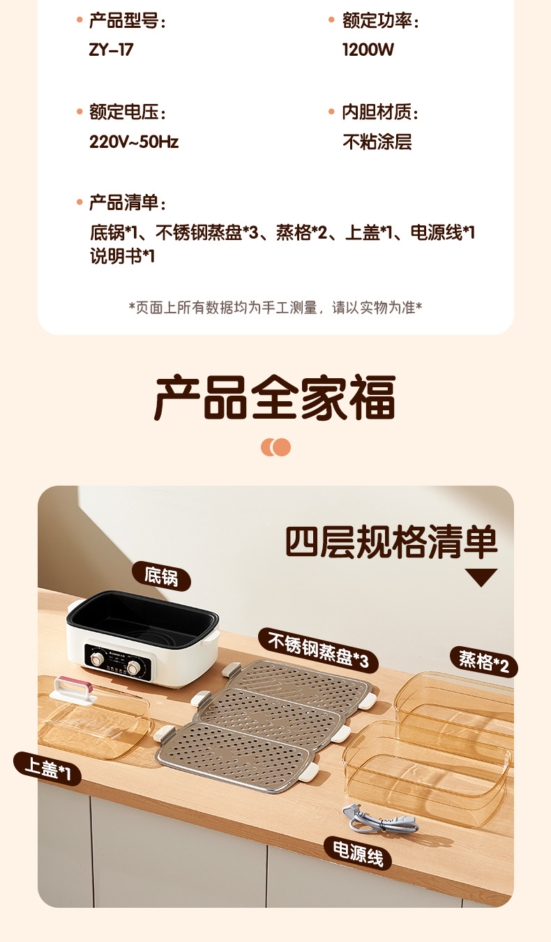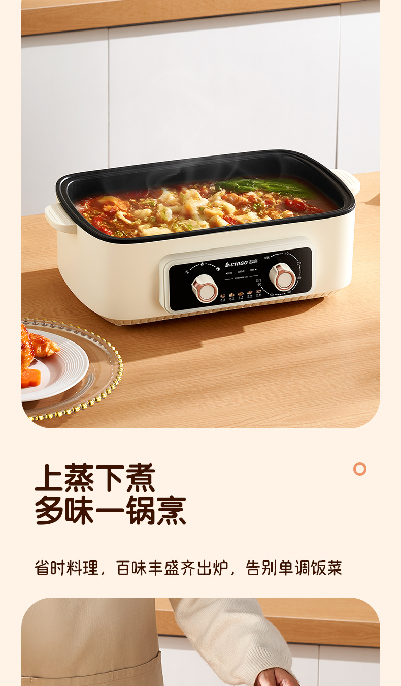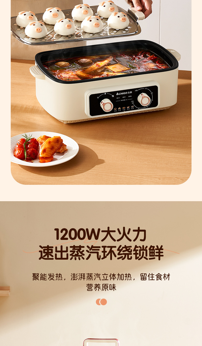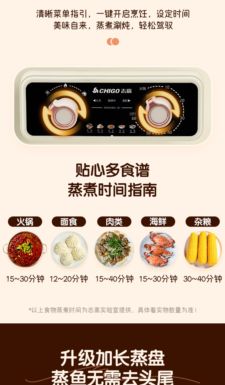 志高电蒸锅多功能家用三层蒸煮炖预约多层大容量不锈钢煮锅早餐机