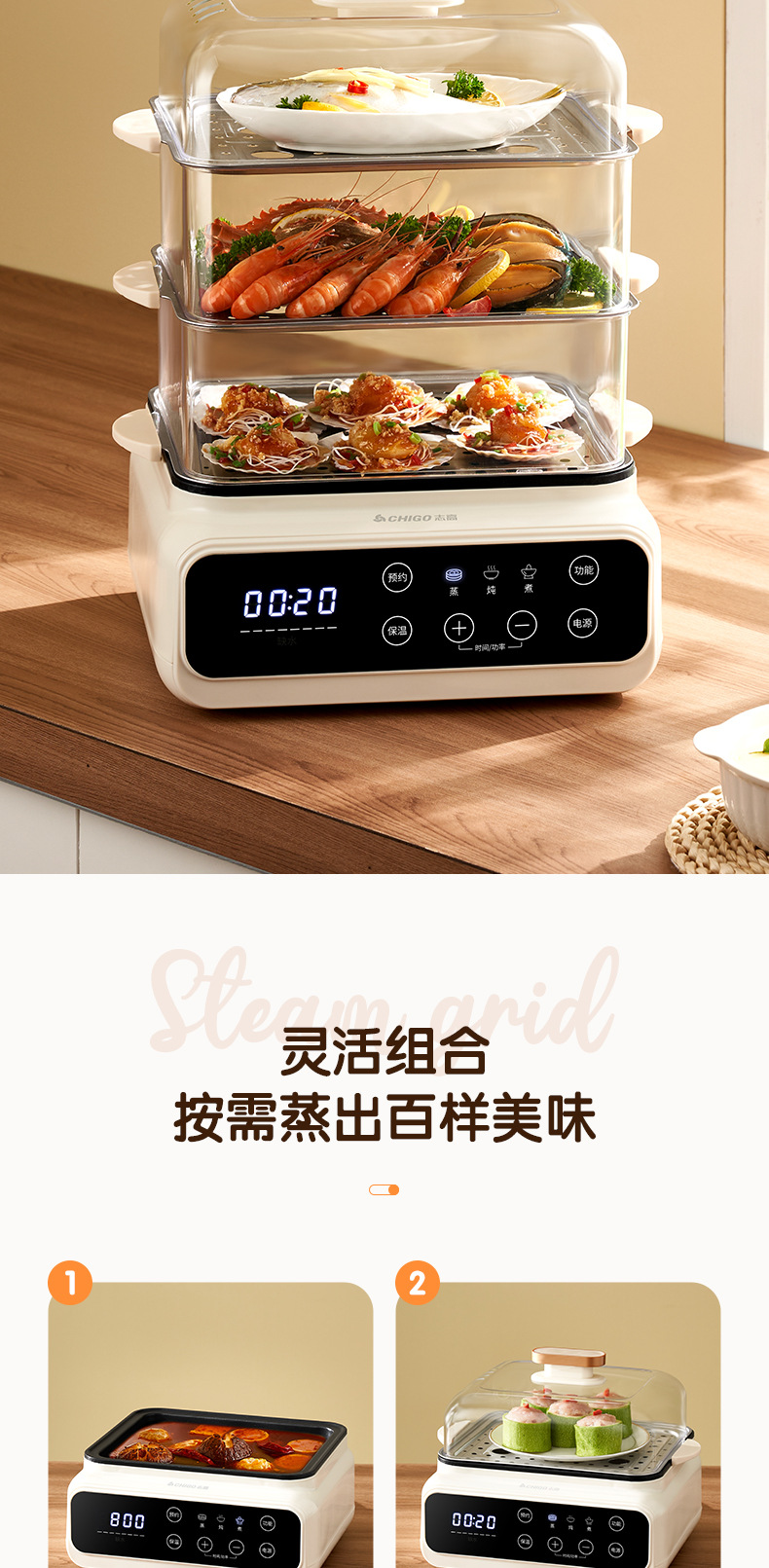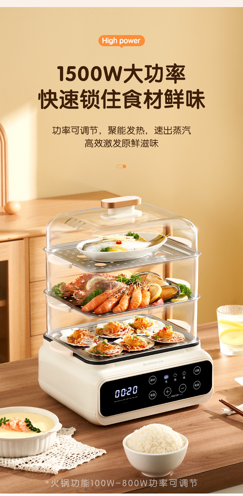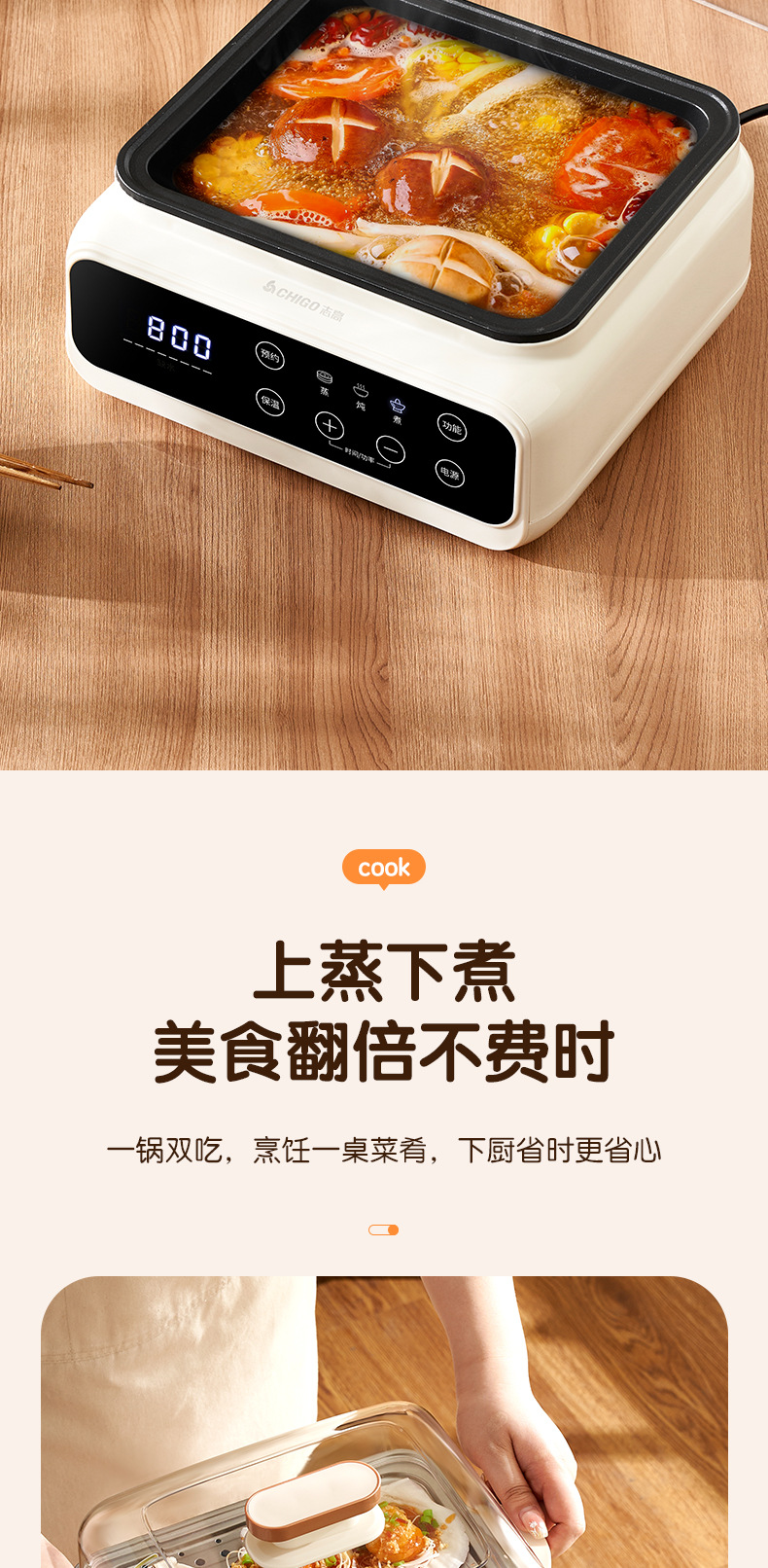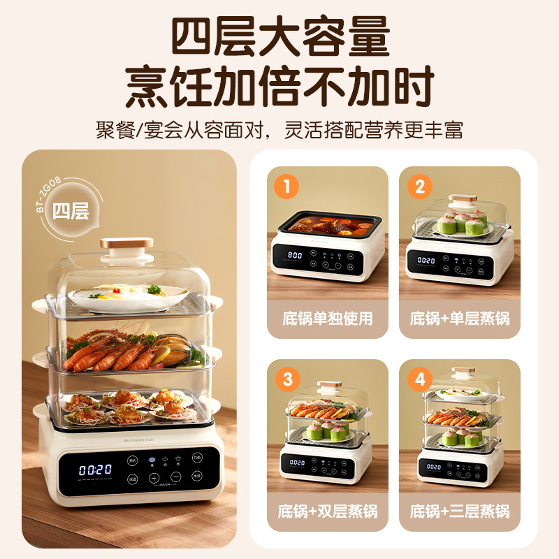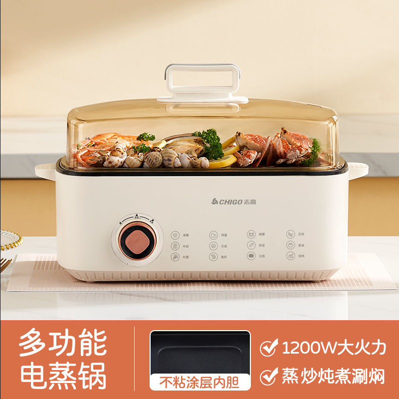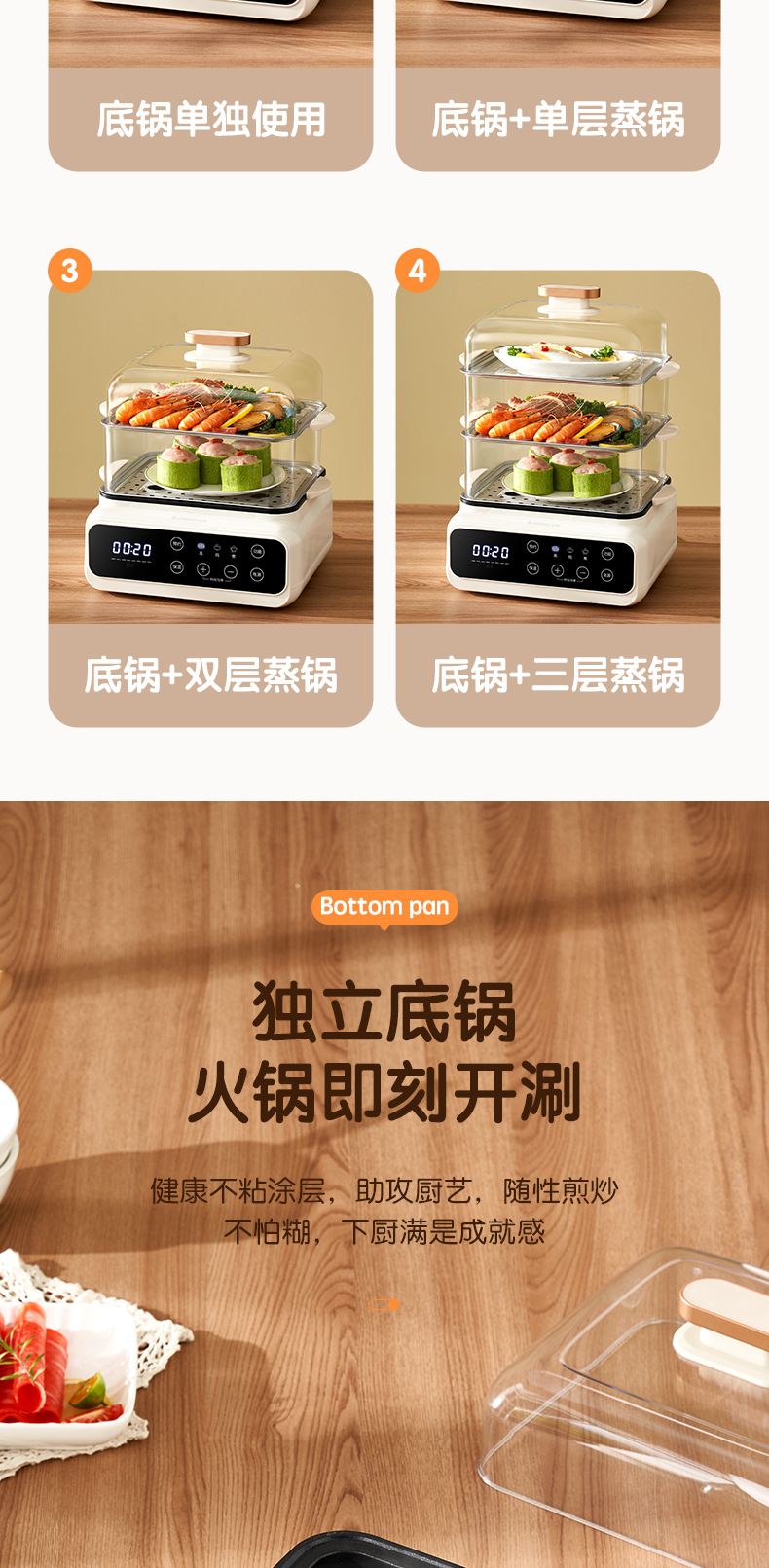 电煮锅蒸炖煮一体火锅家用不粘蒸笼三层大容量电蒸炒锅智能