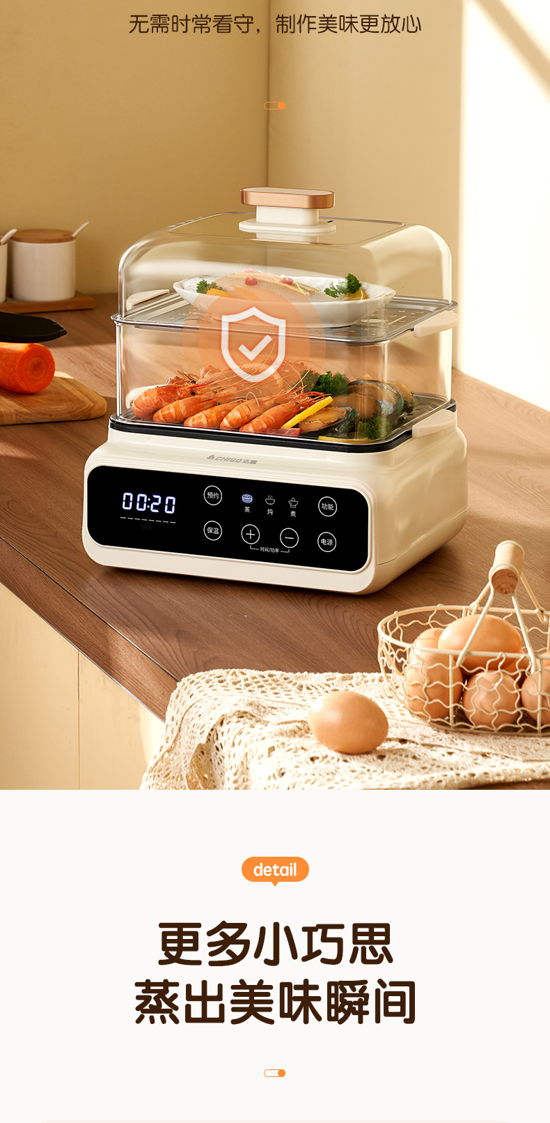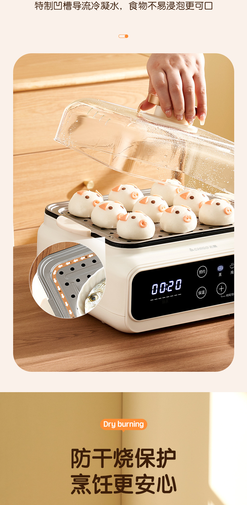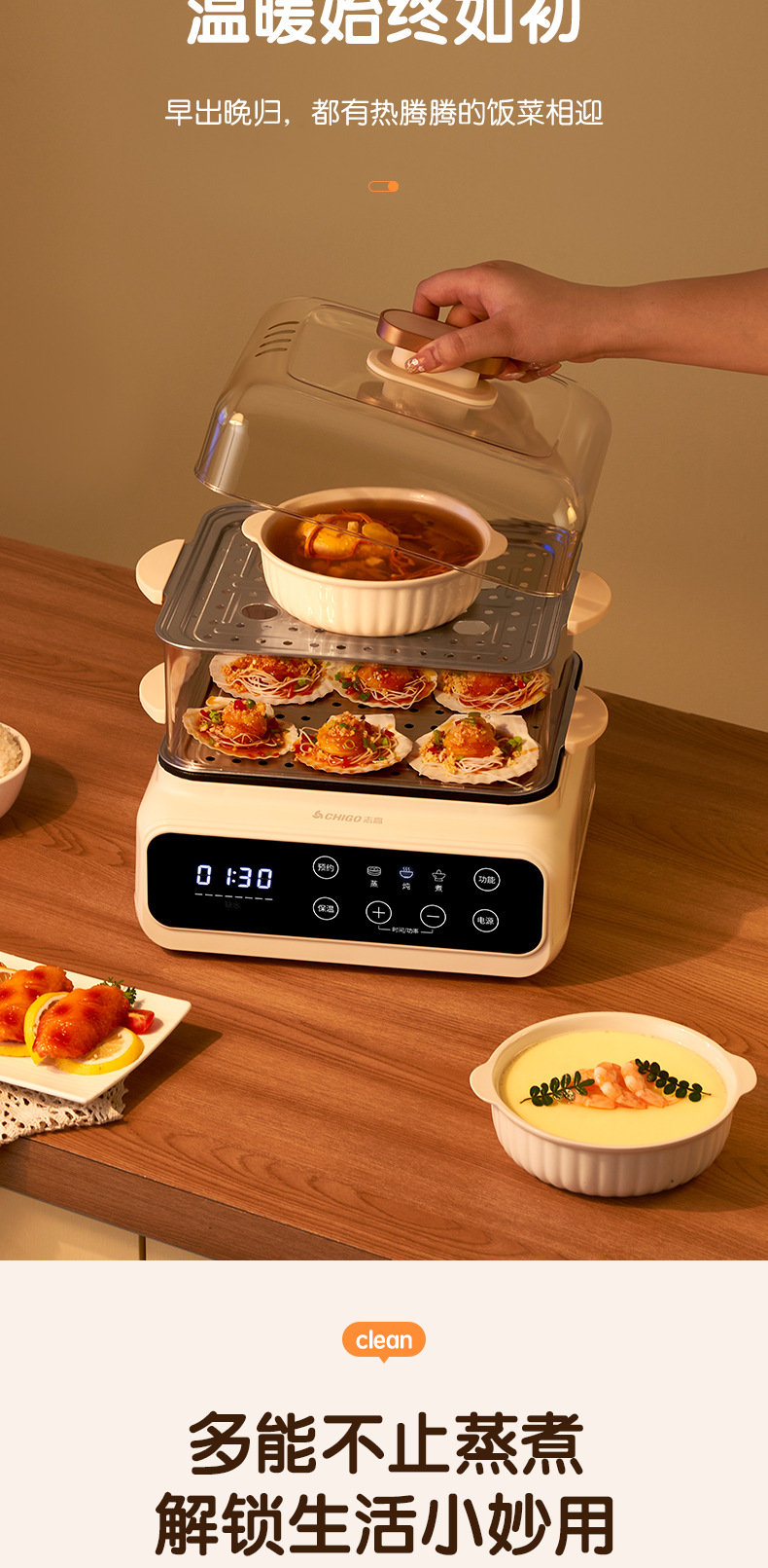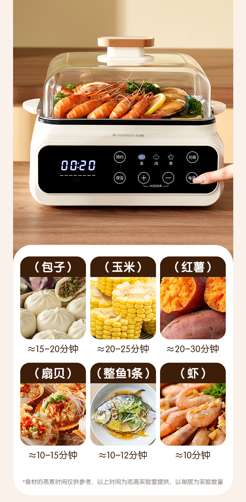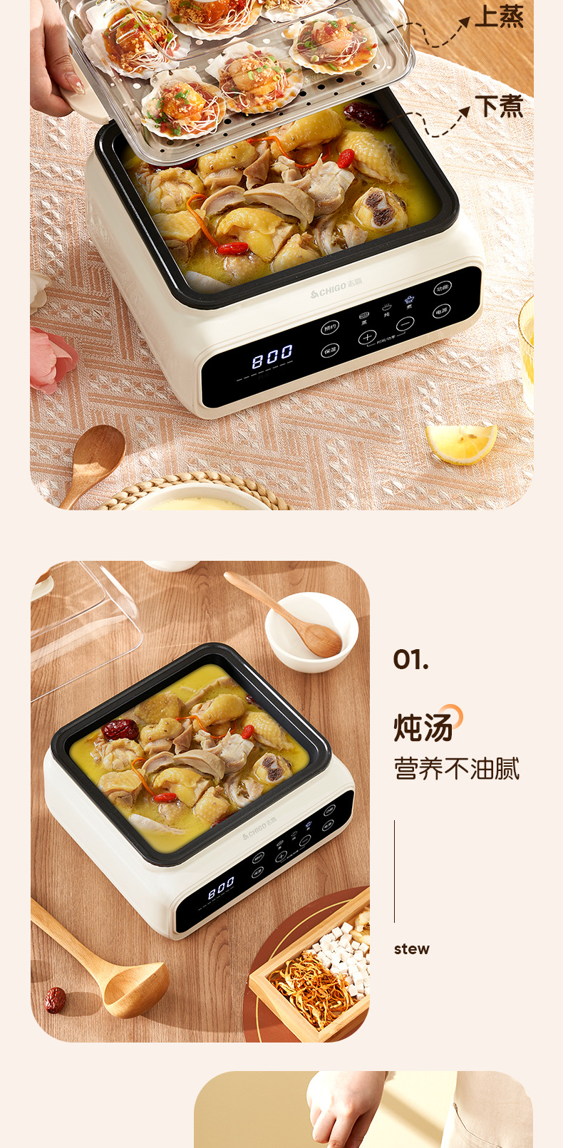 电煮锅蒸炖煮一体火锅家用不粘蒸笼三层大容量电蒸炒锅智能