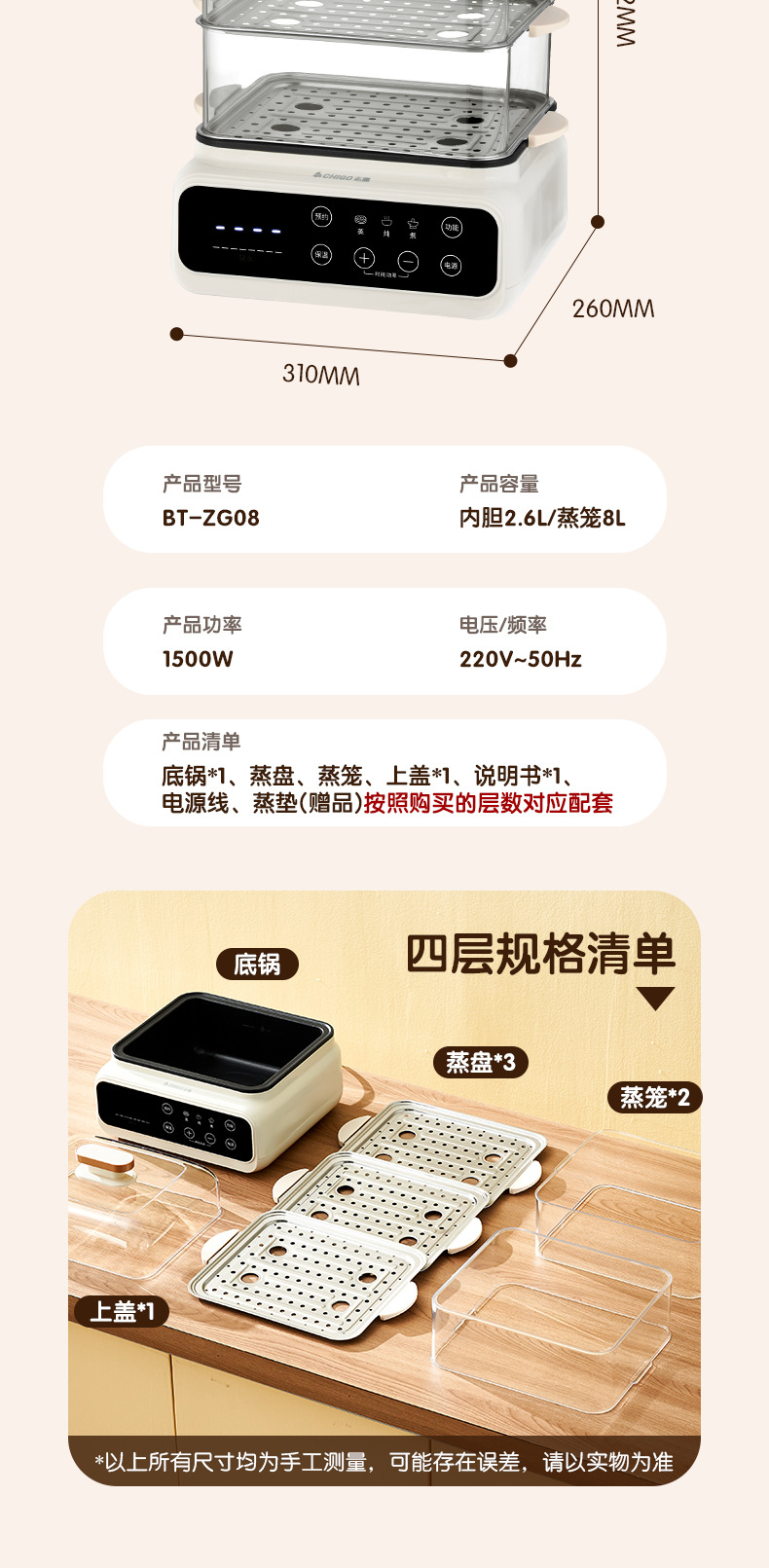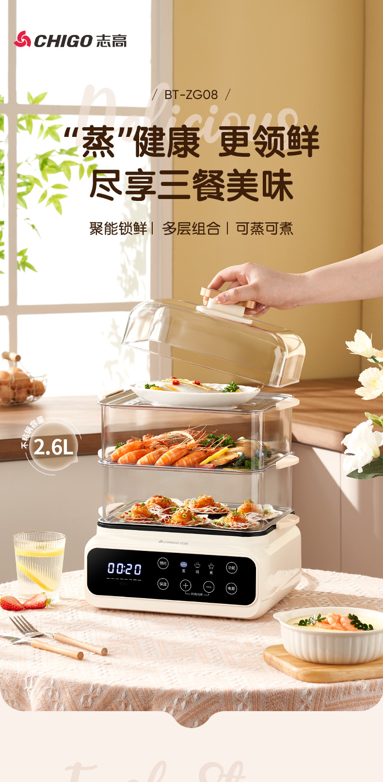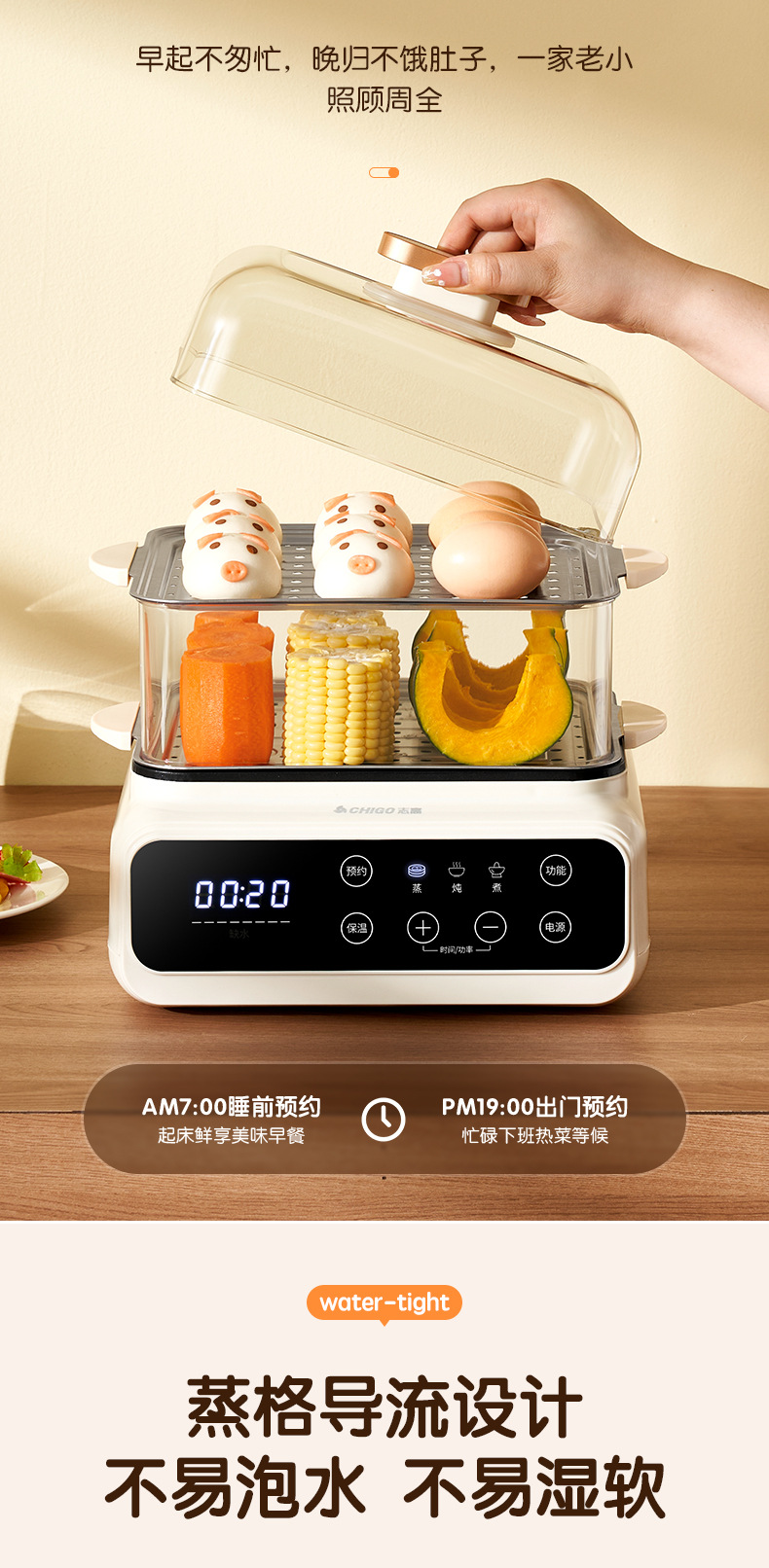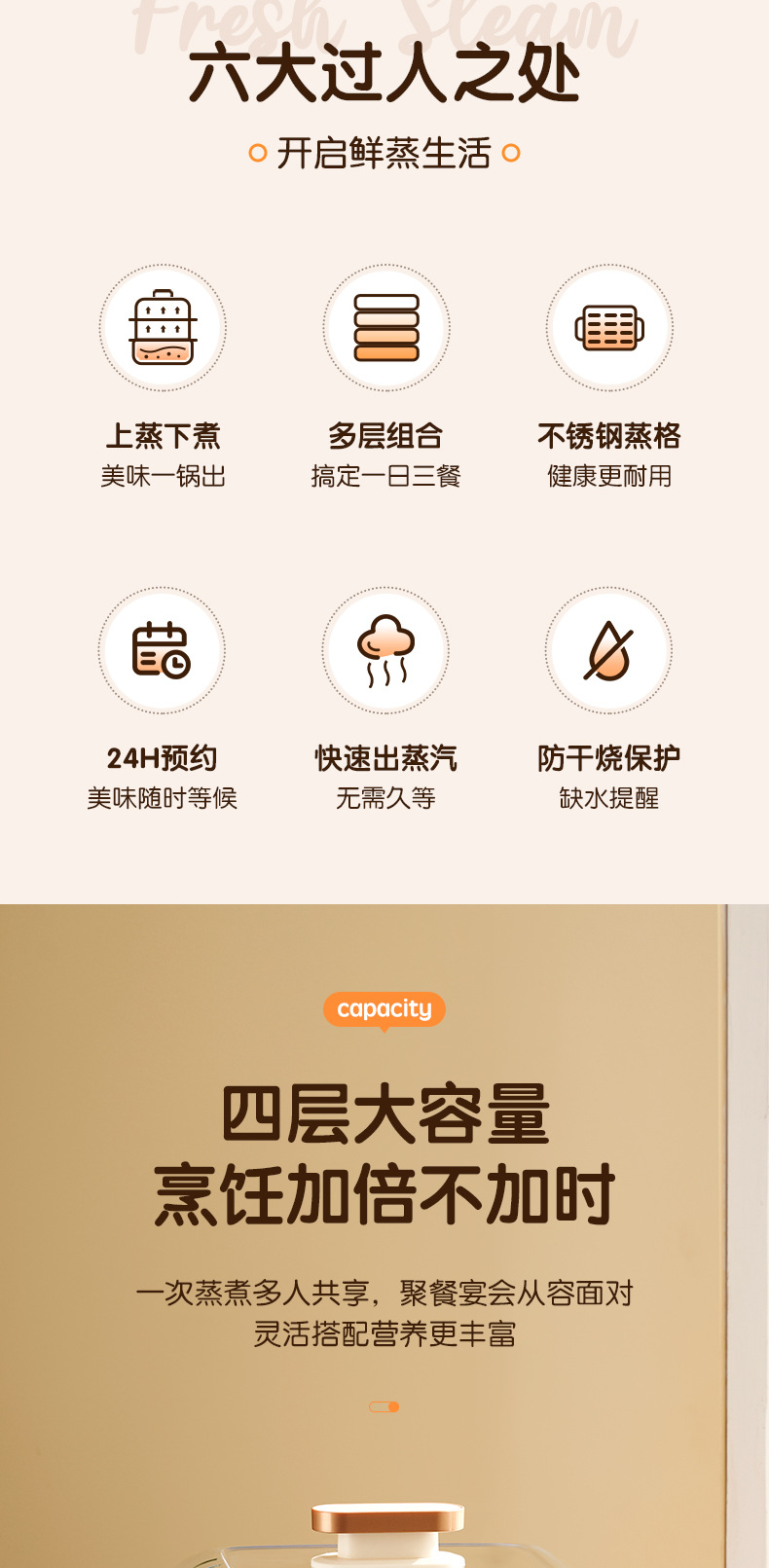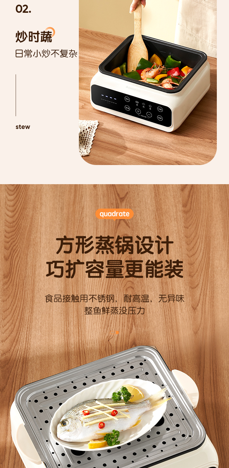 电煮锅蒸炖煮一体火锅家用不粘蒸笼三层大容量电蒸炒锅智能