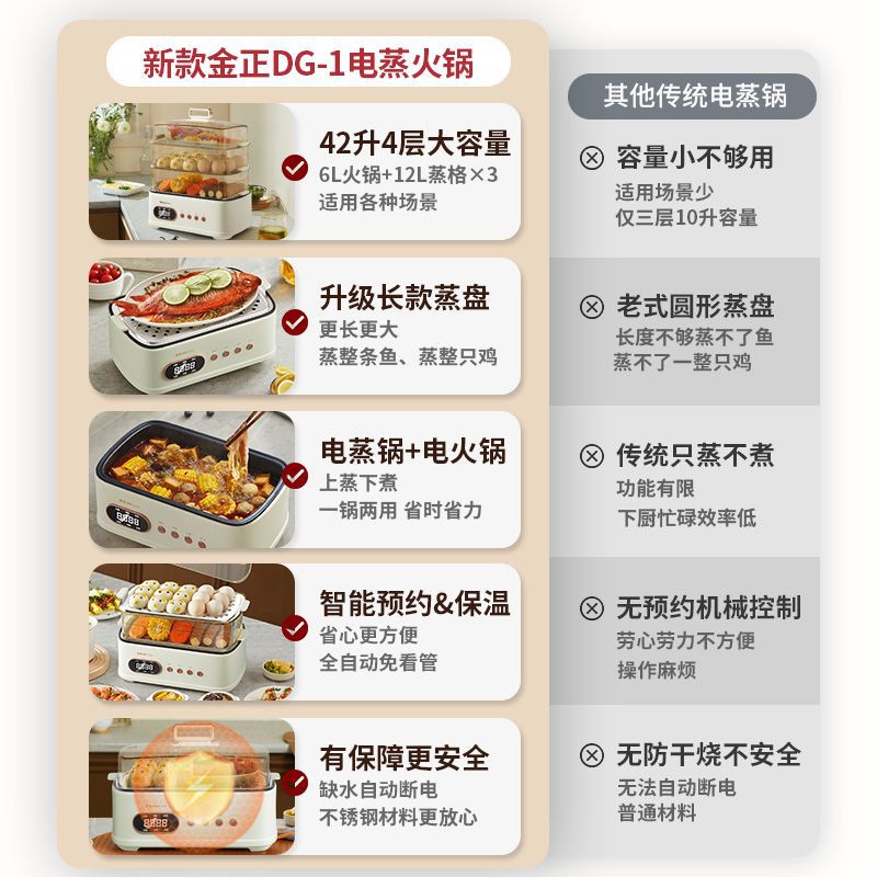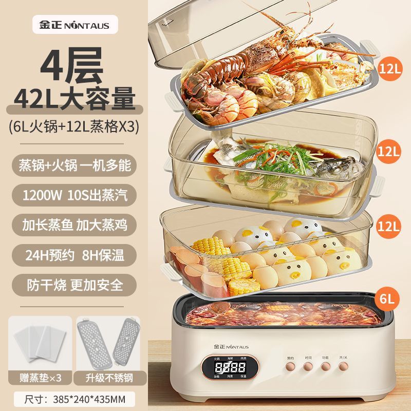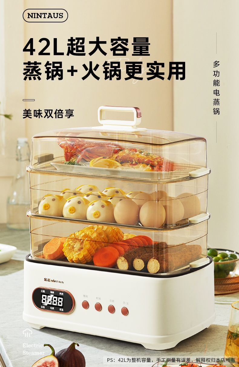42L大容量电蒸锅电蒸三层家用上蒸下煮多功能炖蒸煮一体蒸锅