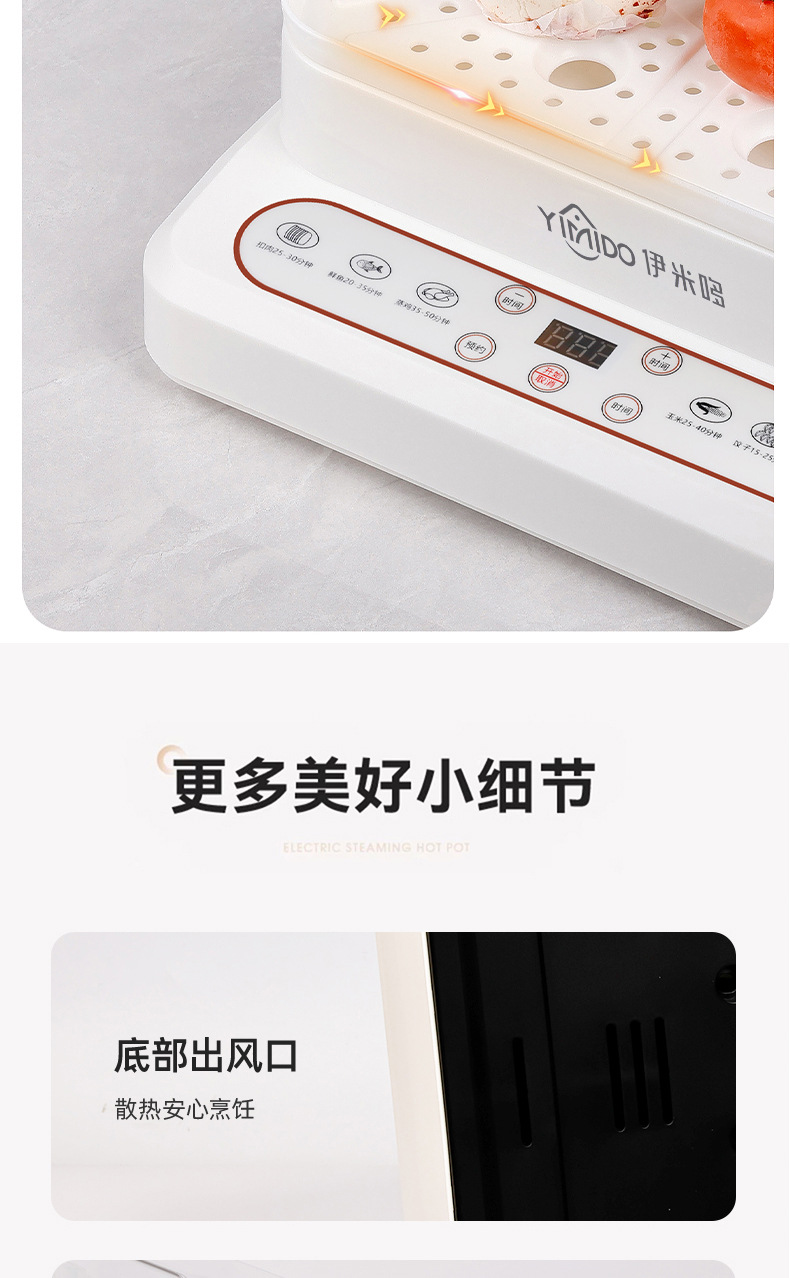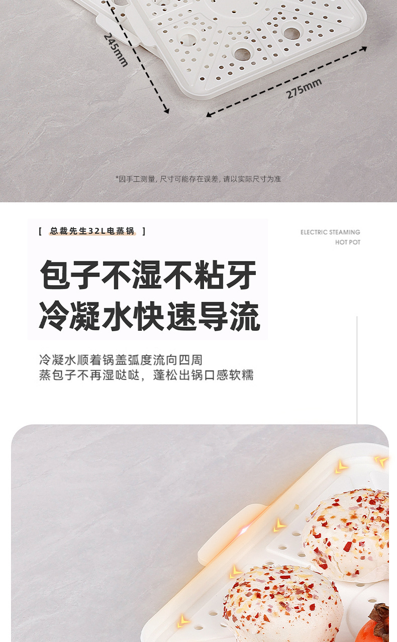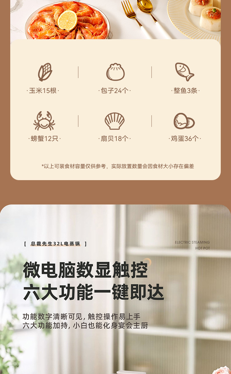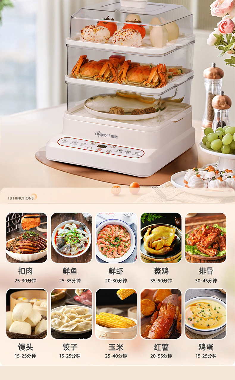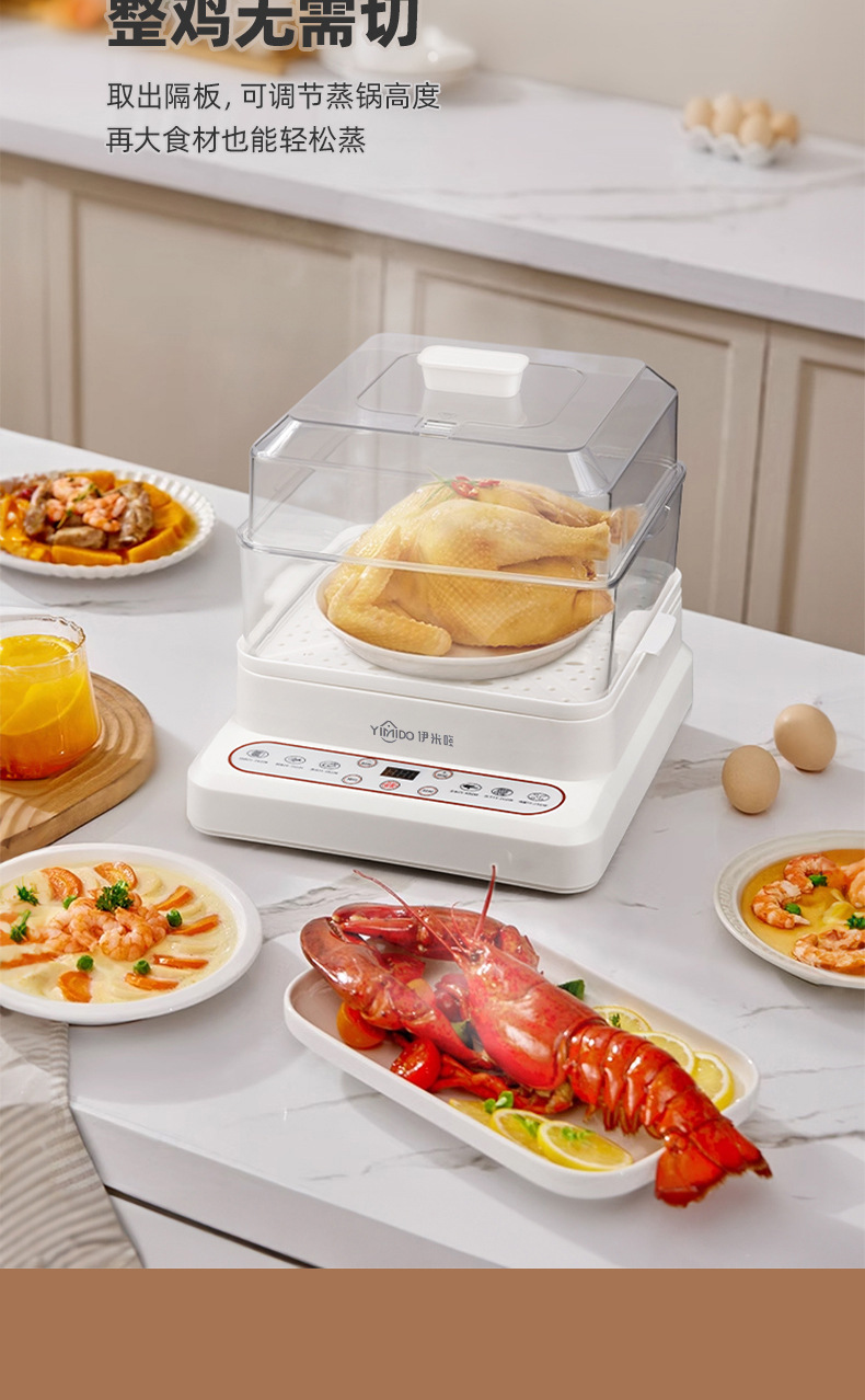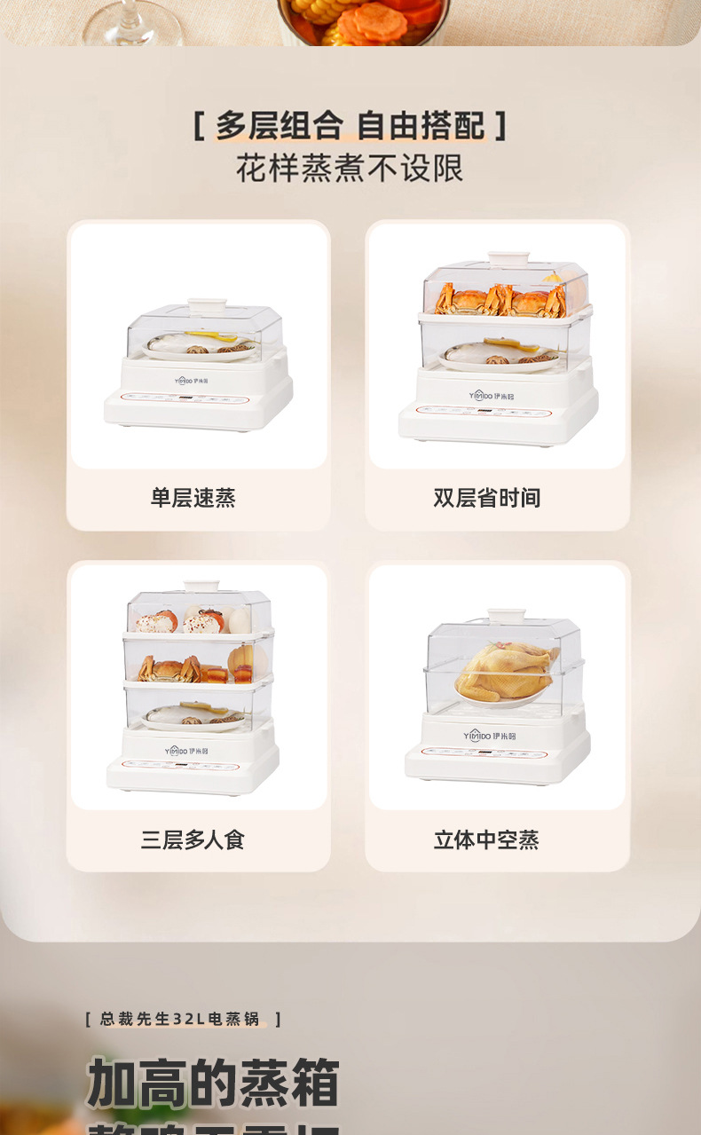 电蒸锅家用32升PC款三层电蒸笼大容量智能预约早餐机蒸煮