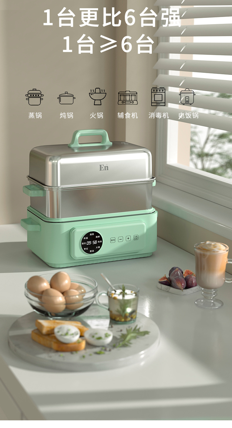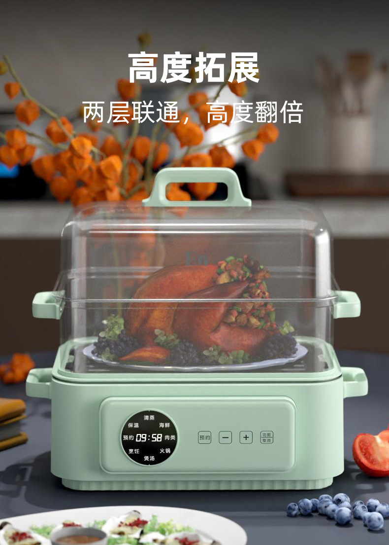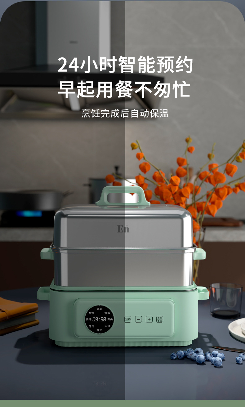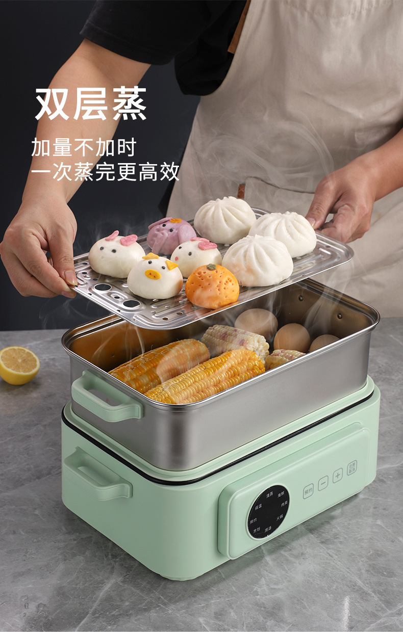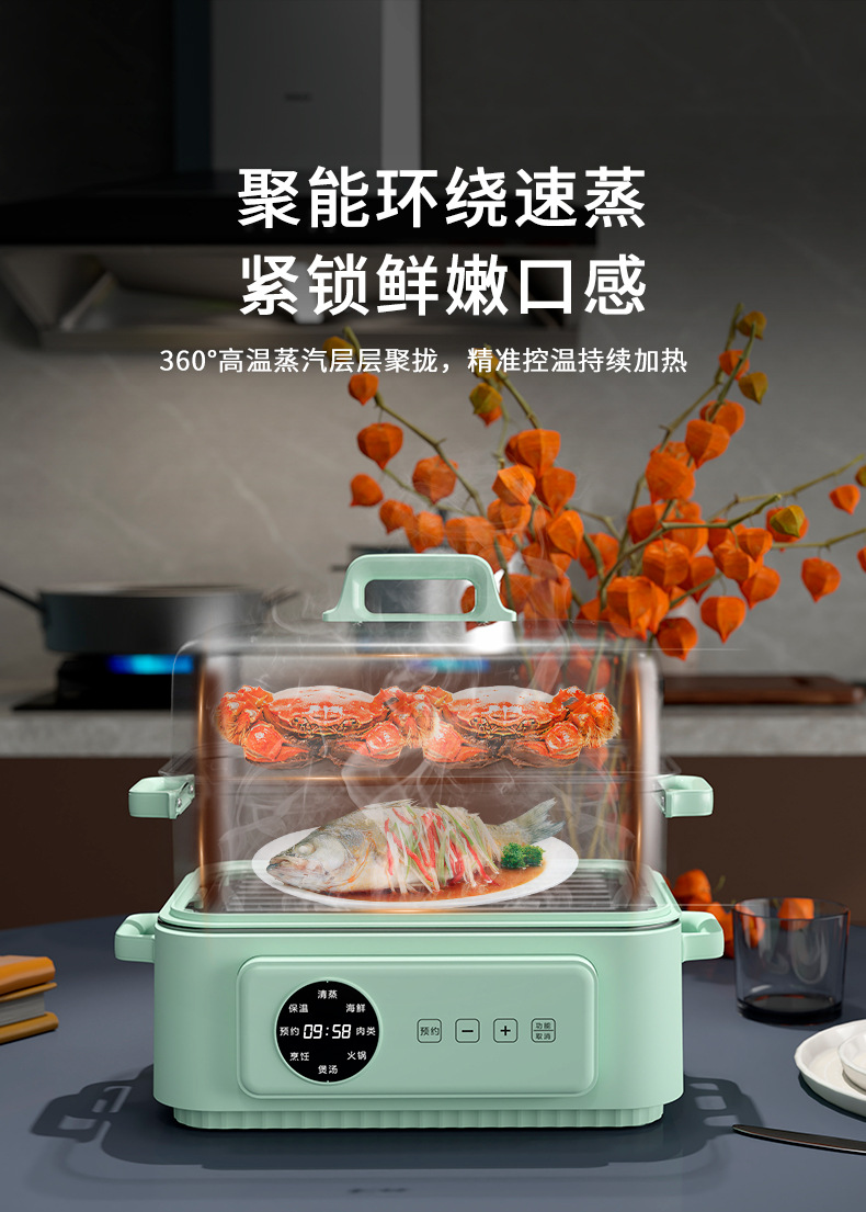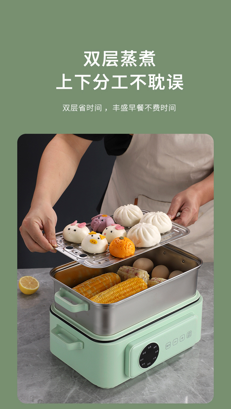 多功能电蒸锅家用不锈钢火锅一体电蒸笼大容量智能预约定时早餐机