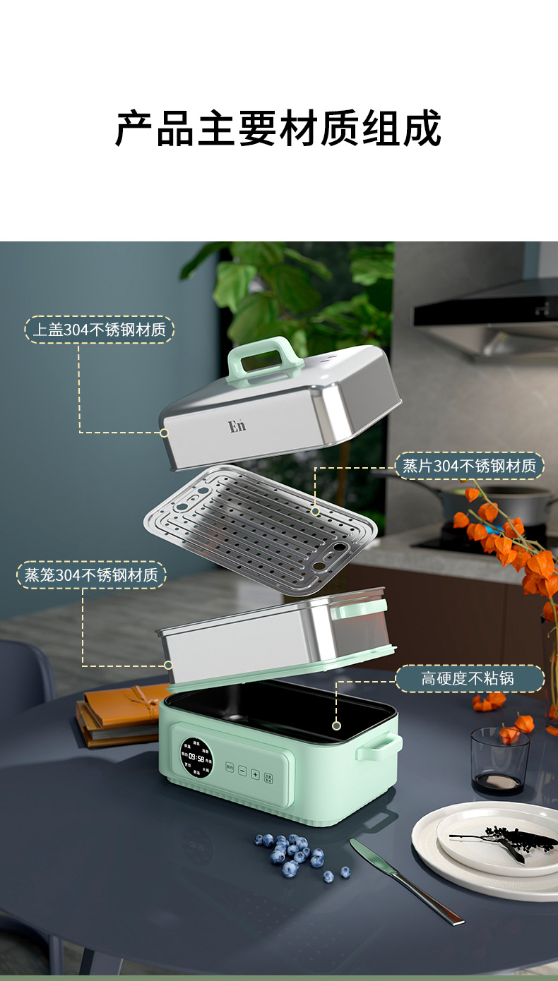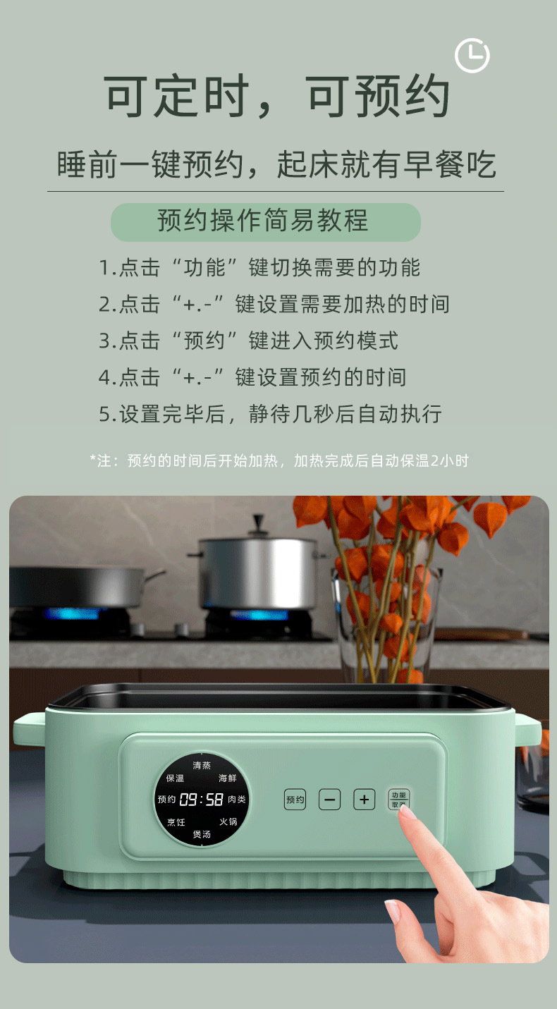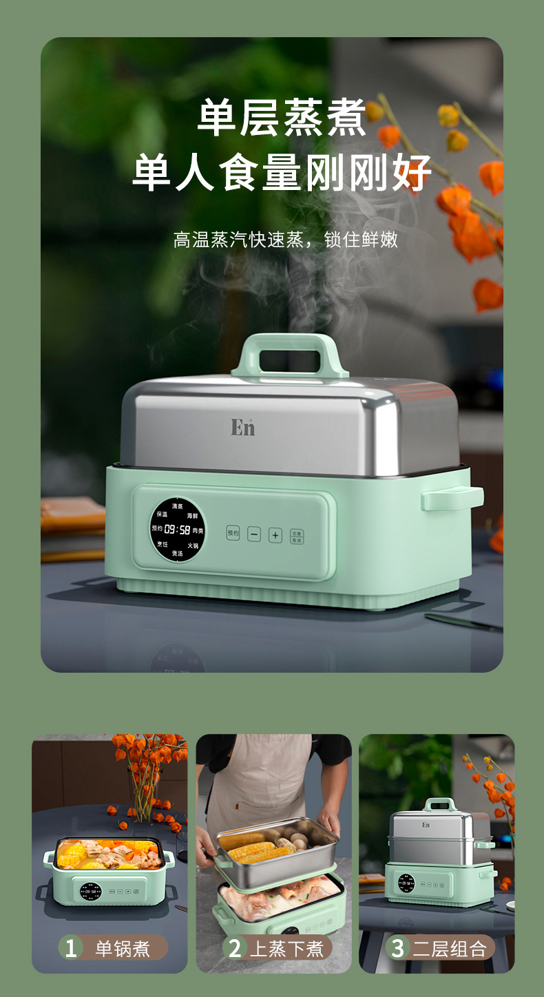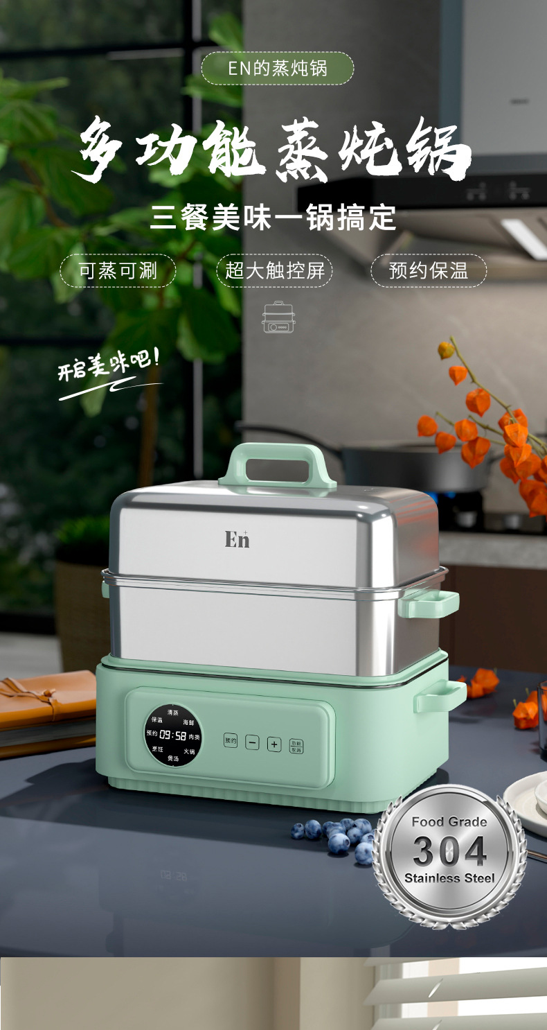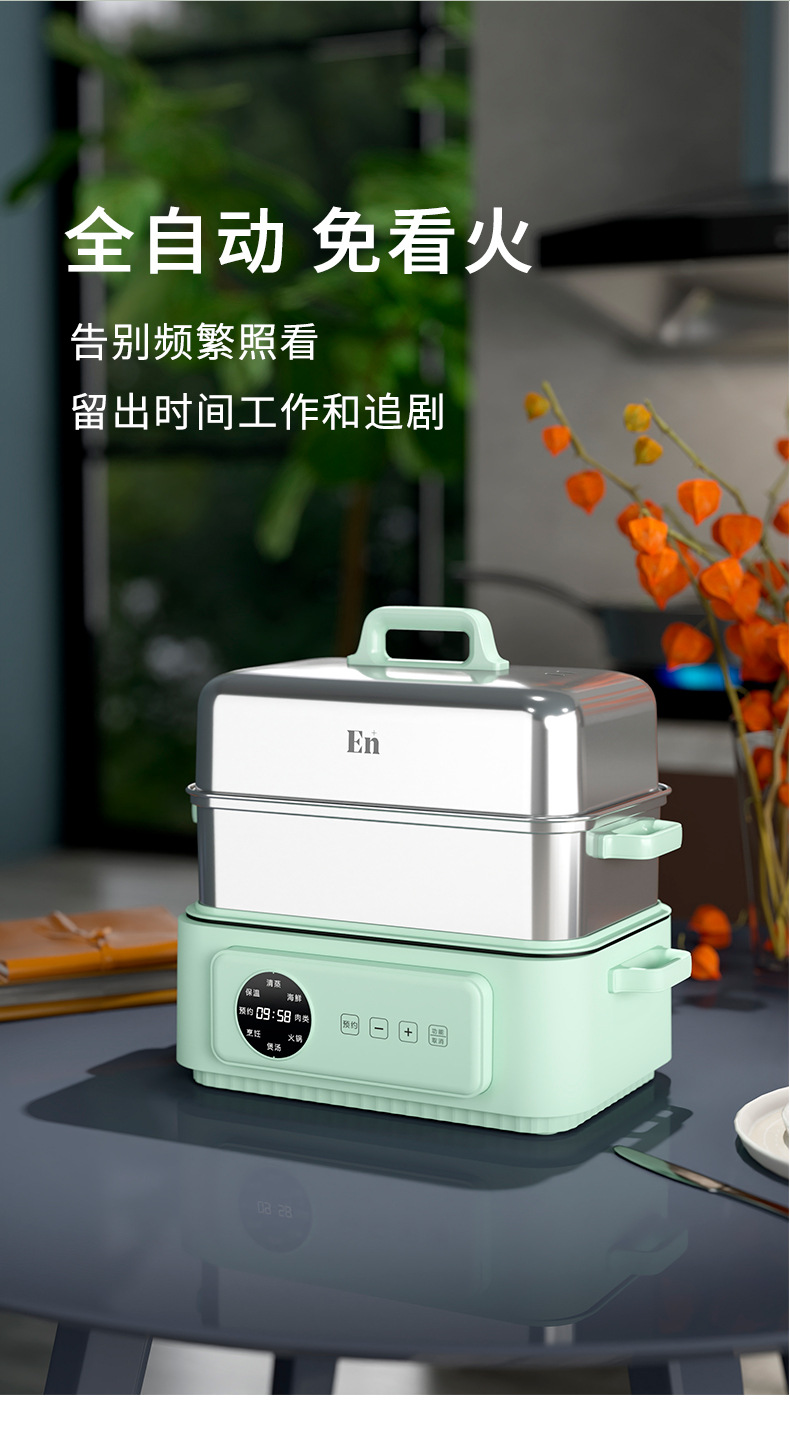 多功能电蒸锅家用不锈钢火锅一体电蒸笼大容量智能预约定时早餐机