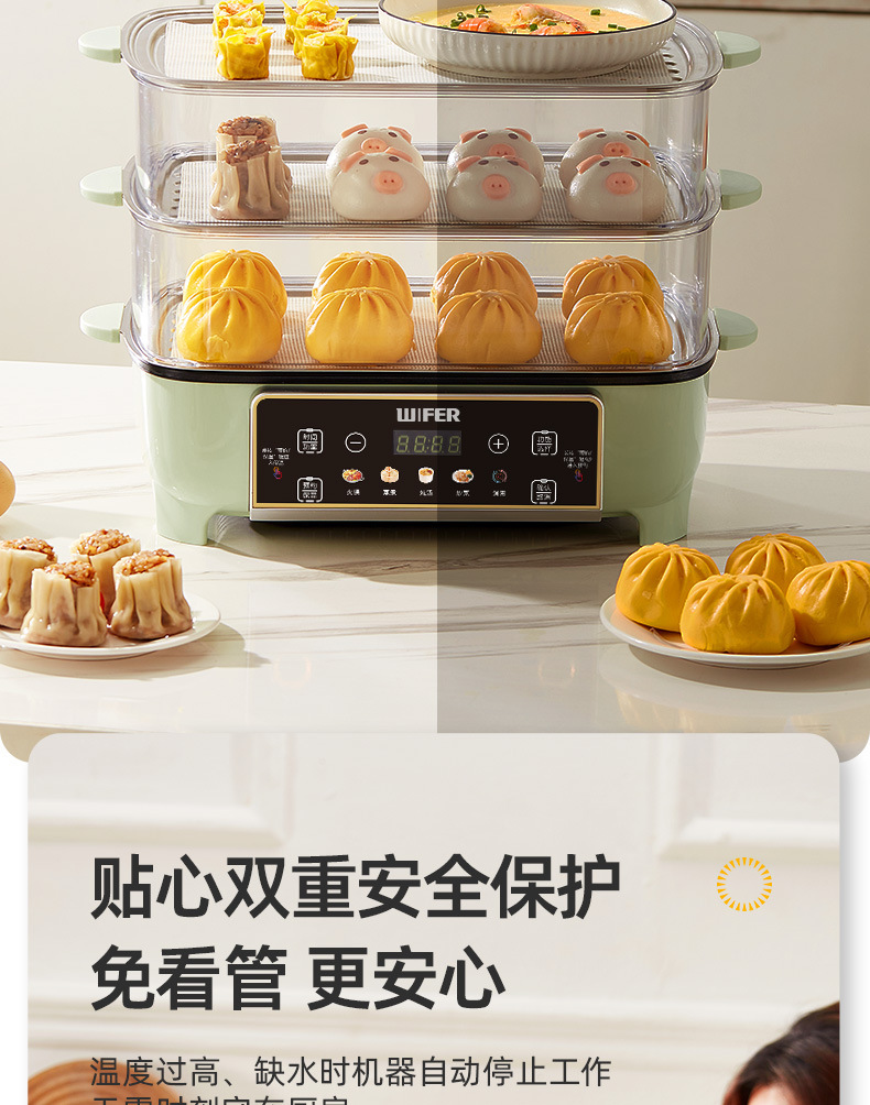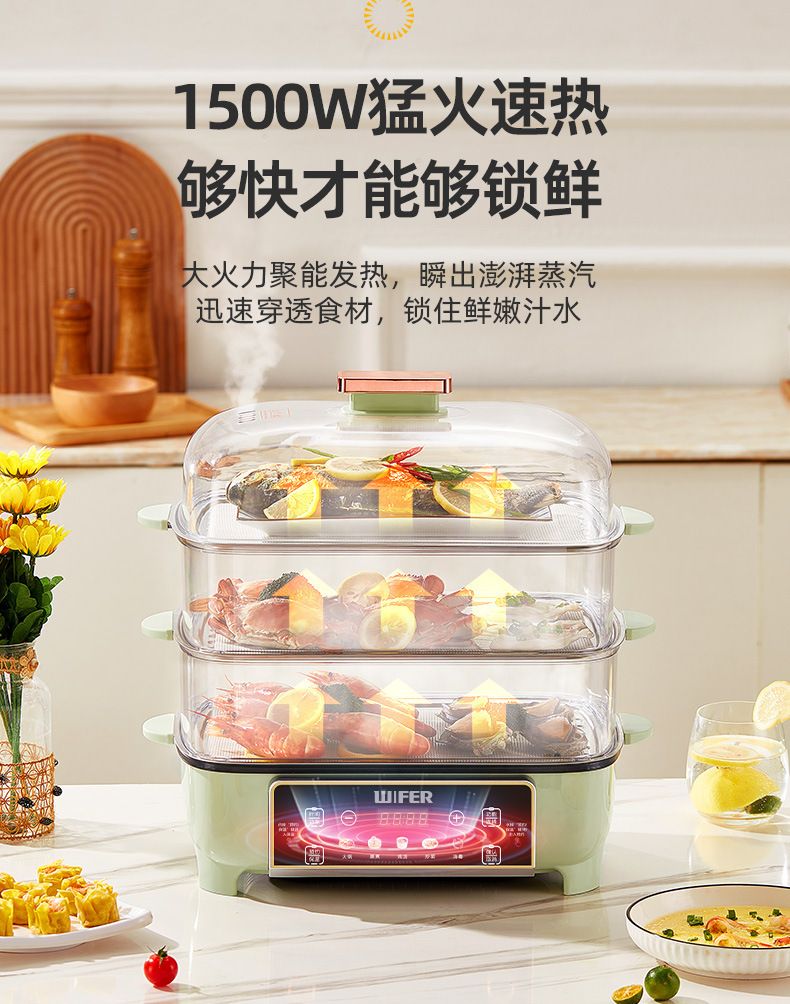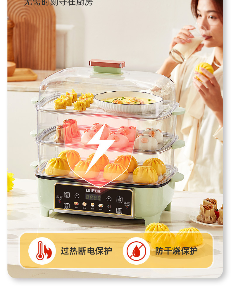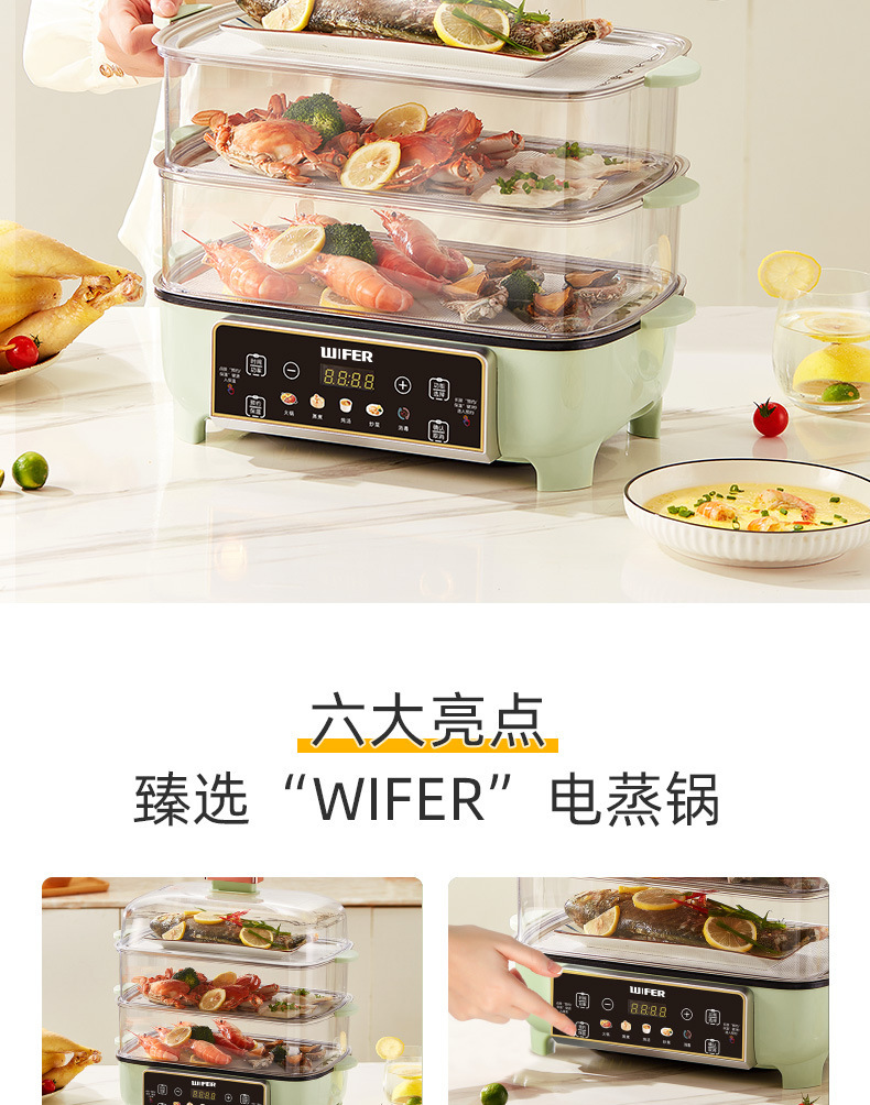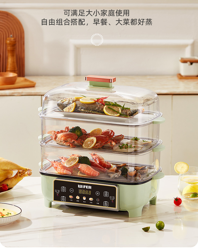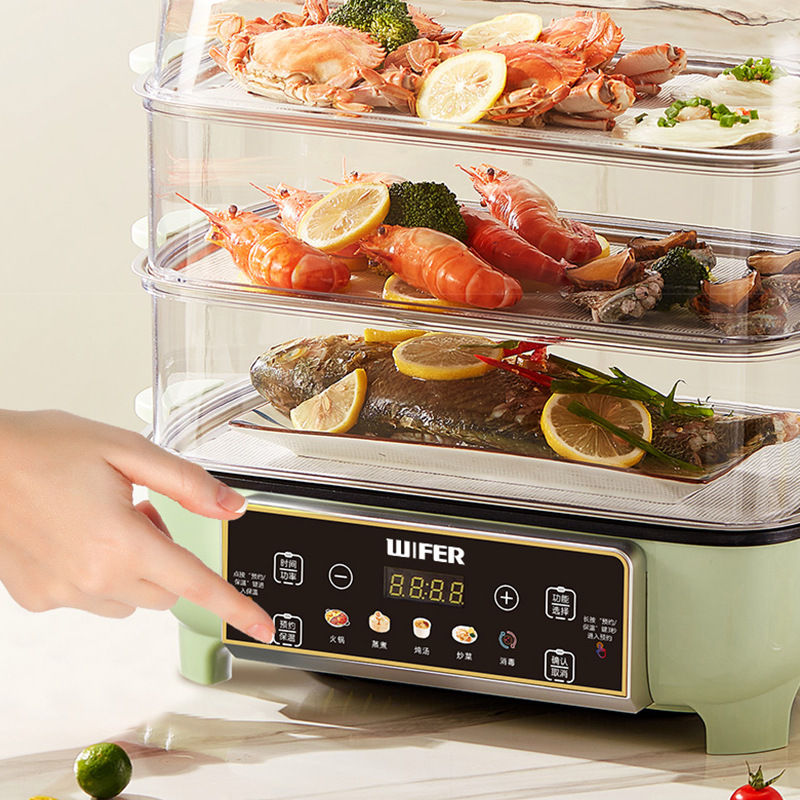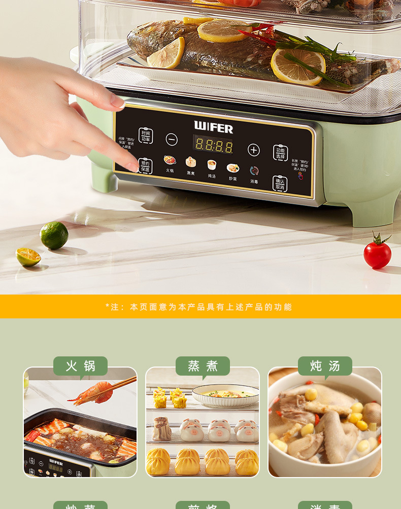 好夫人家用早餐多功能48升大容量锅火锅涮煮炒一体三层电蒸锅