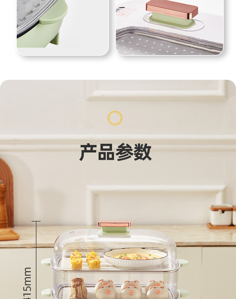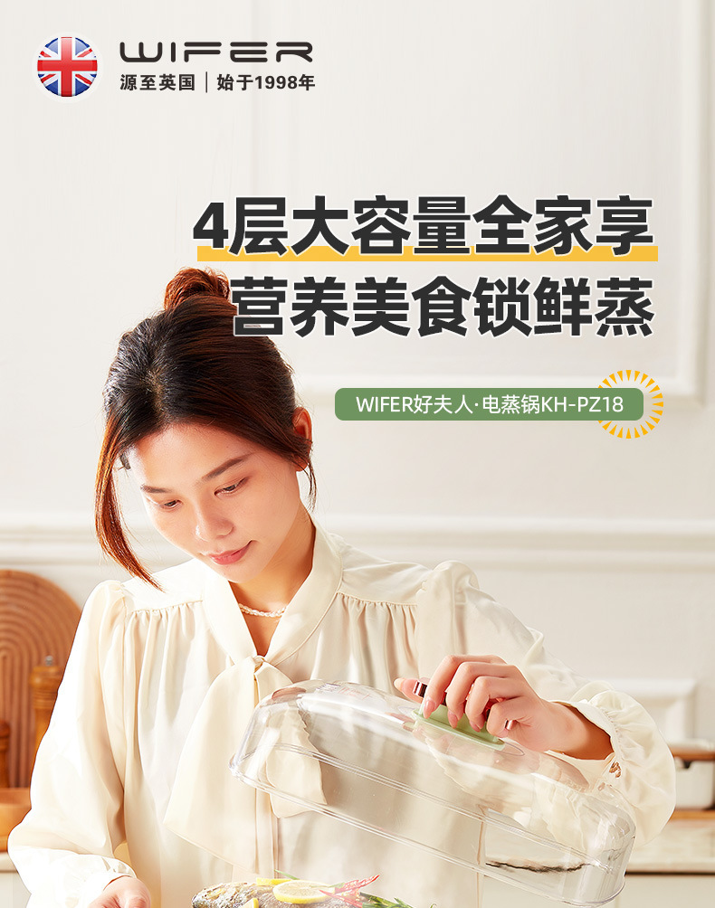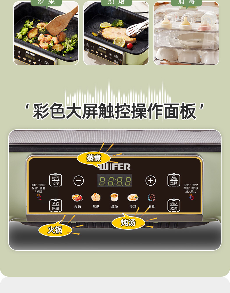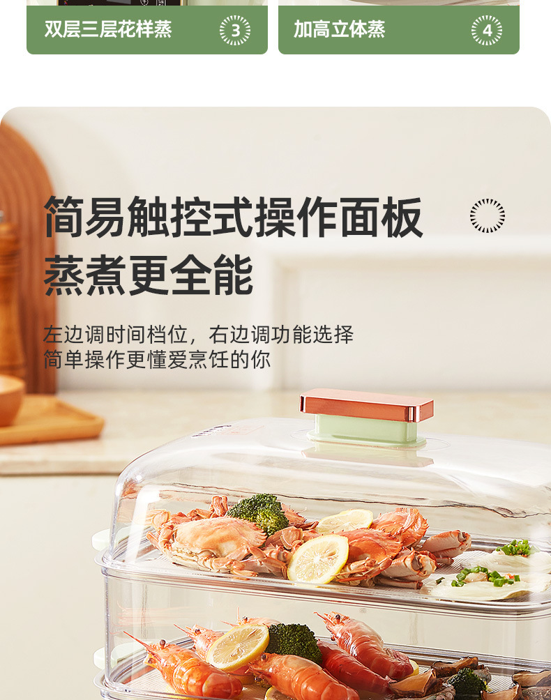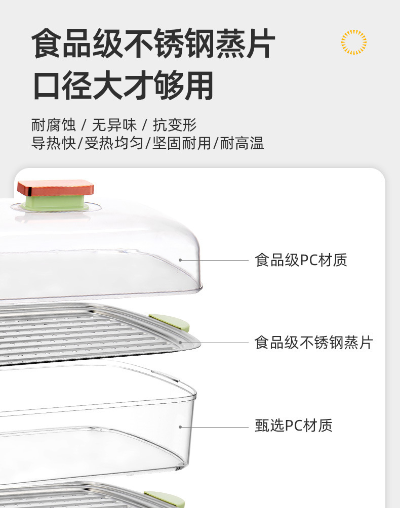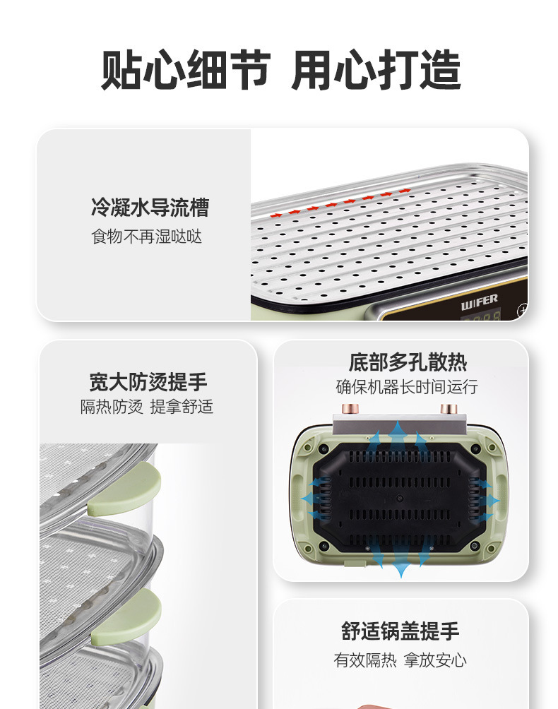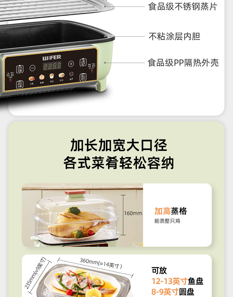 好夫人家用早餐多功能48升大容量锅火锅涮煮炒一体三层电蒸锅