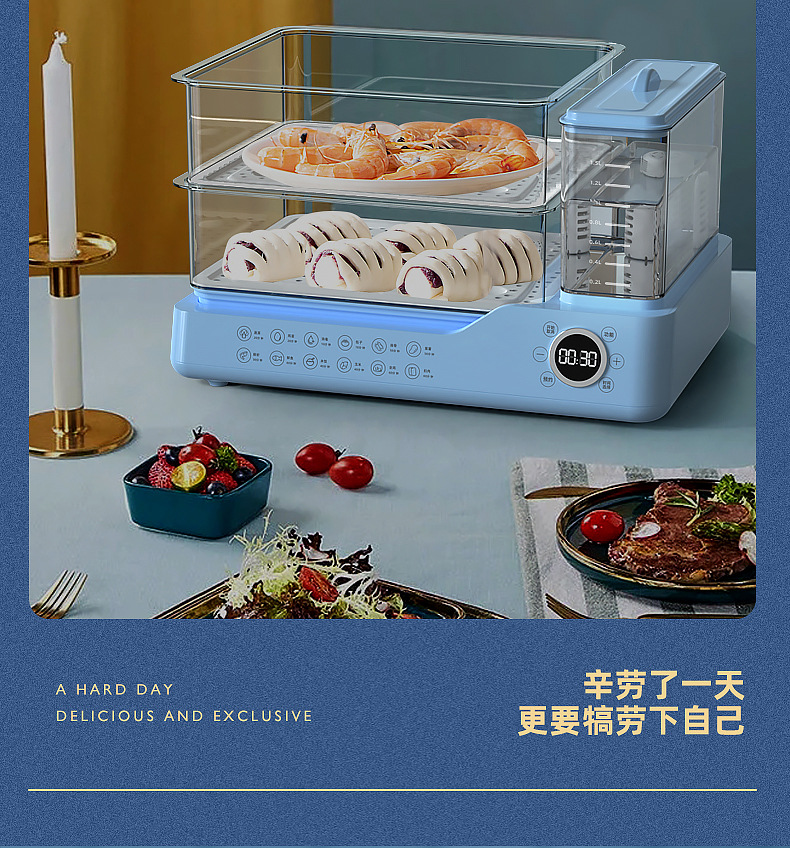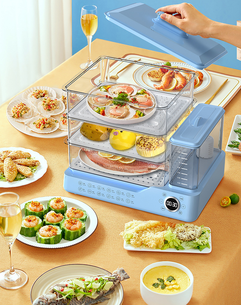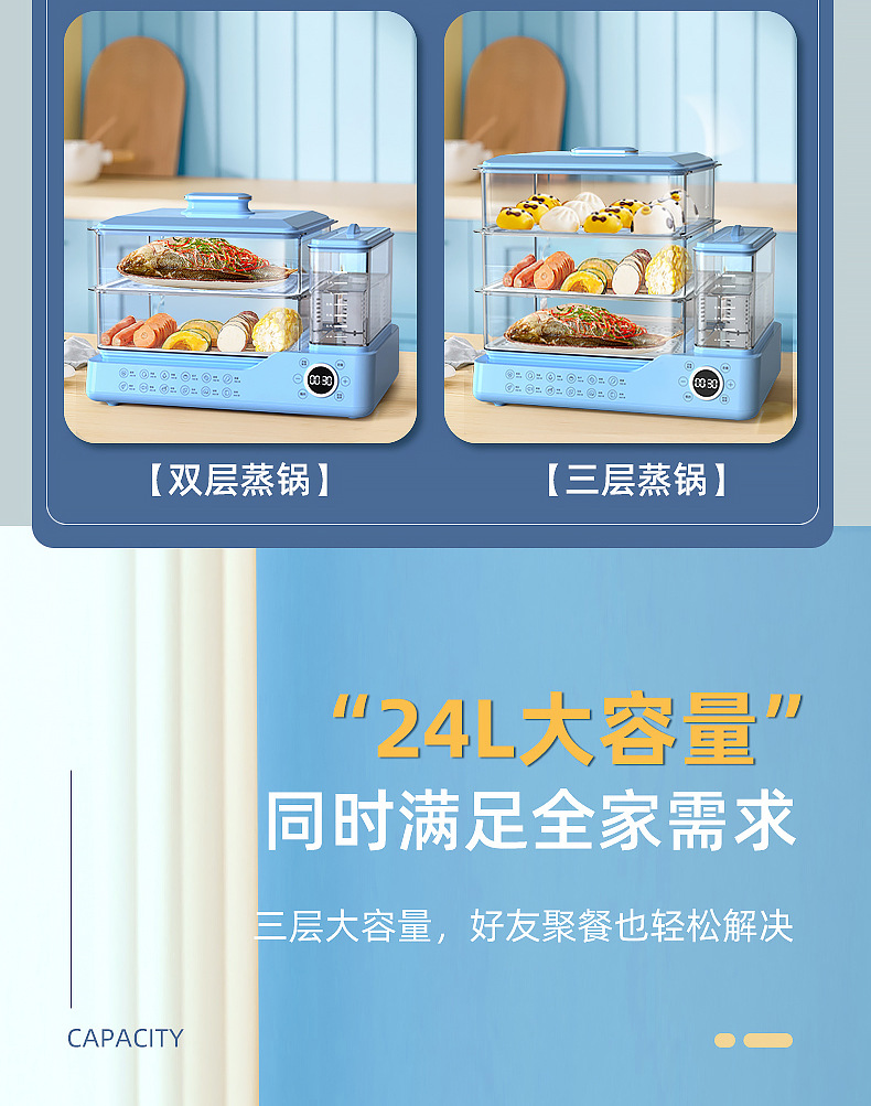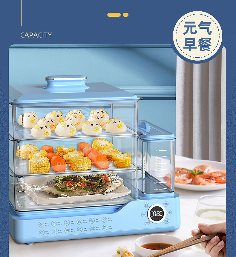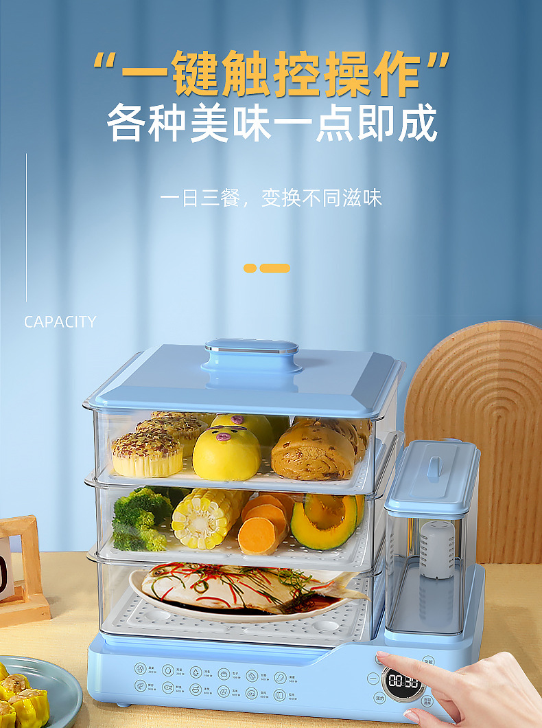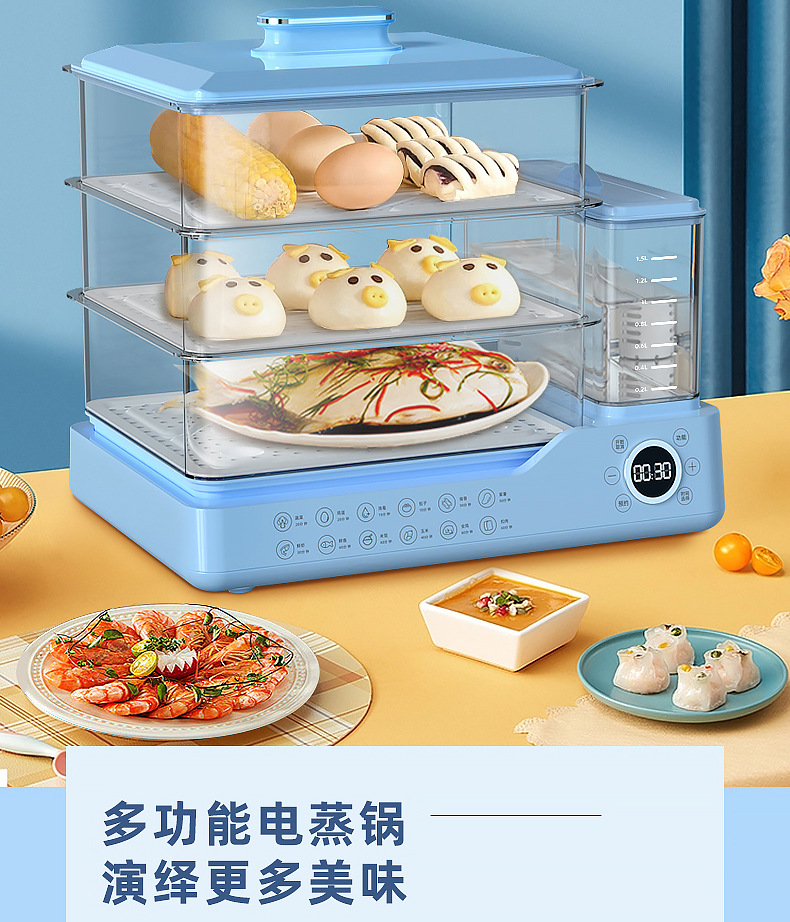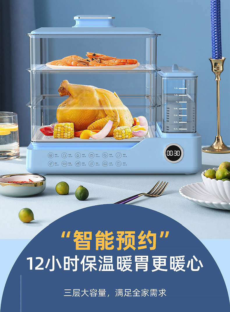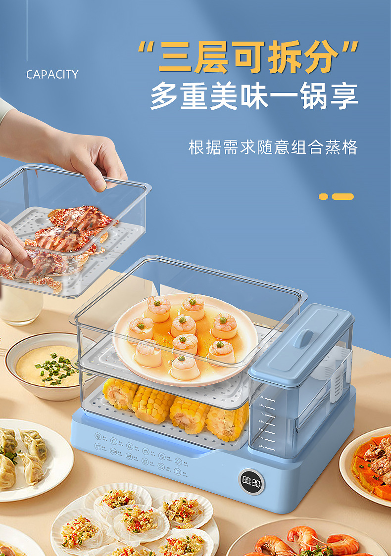 电蒸锅电蒸三层蒸煮一体蒸汽锅大容量可预约早餐机双旋钮