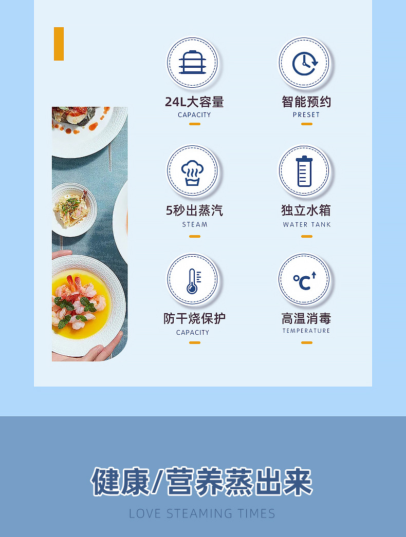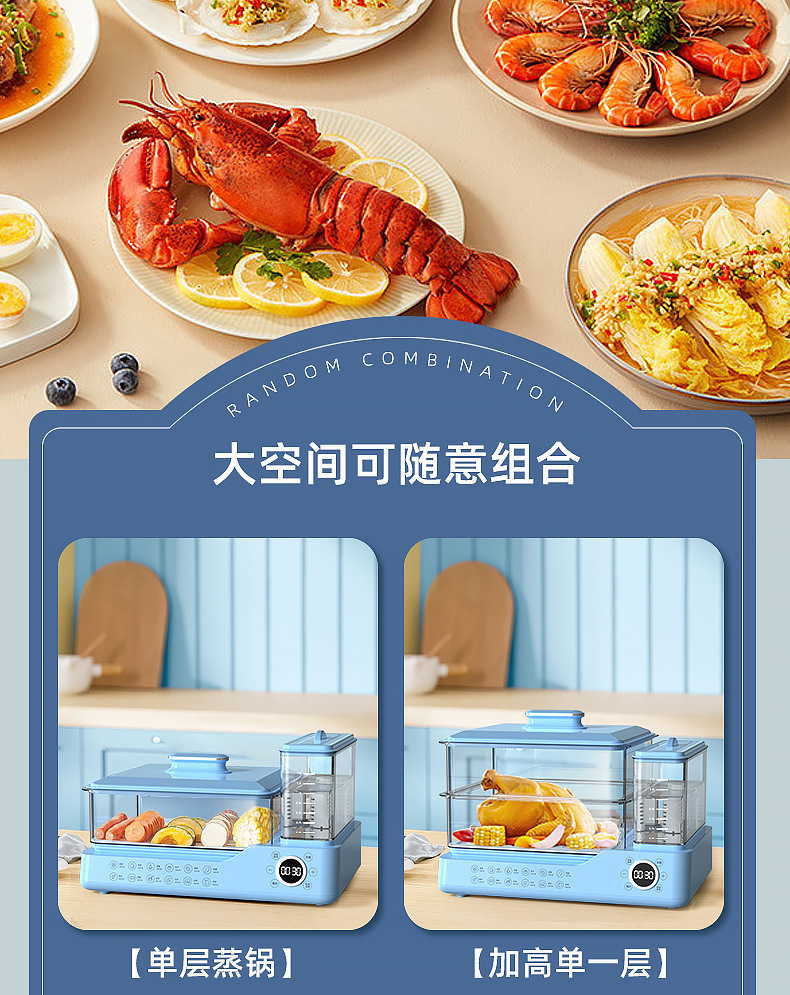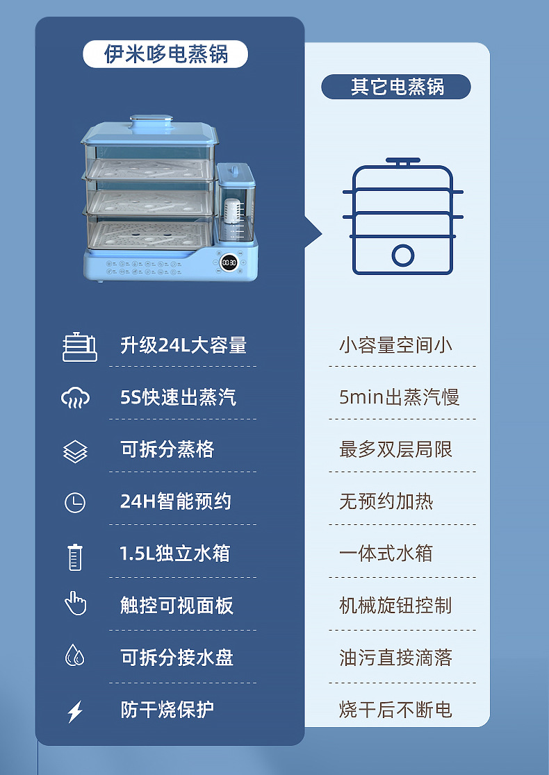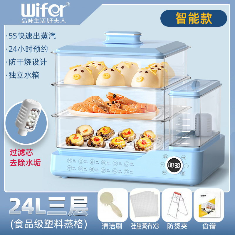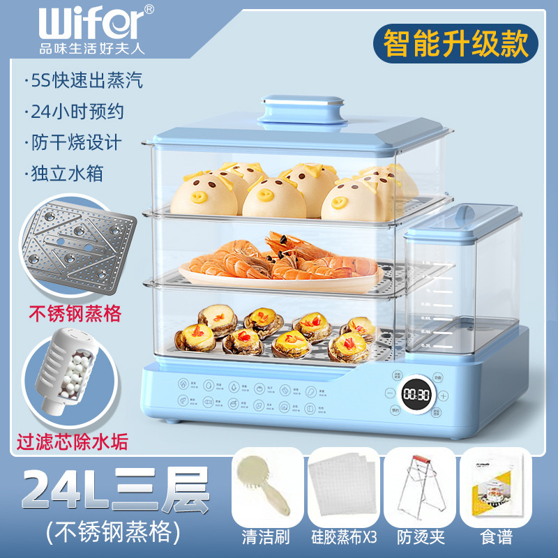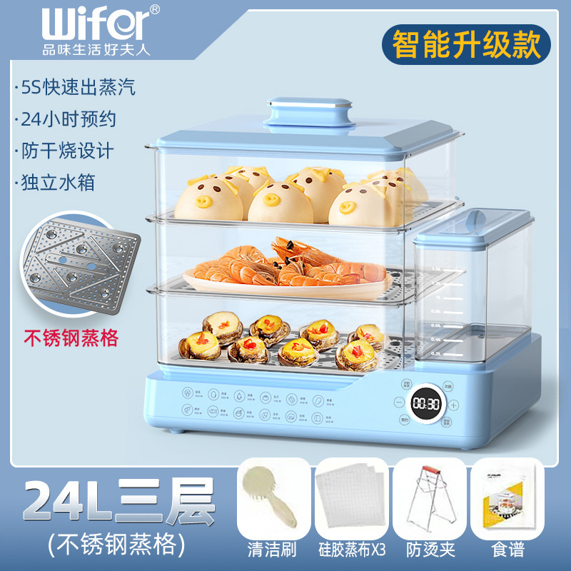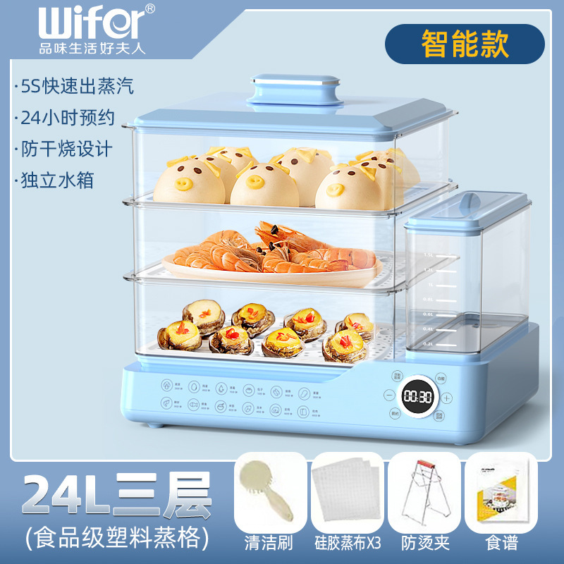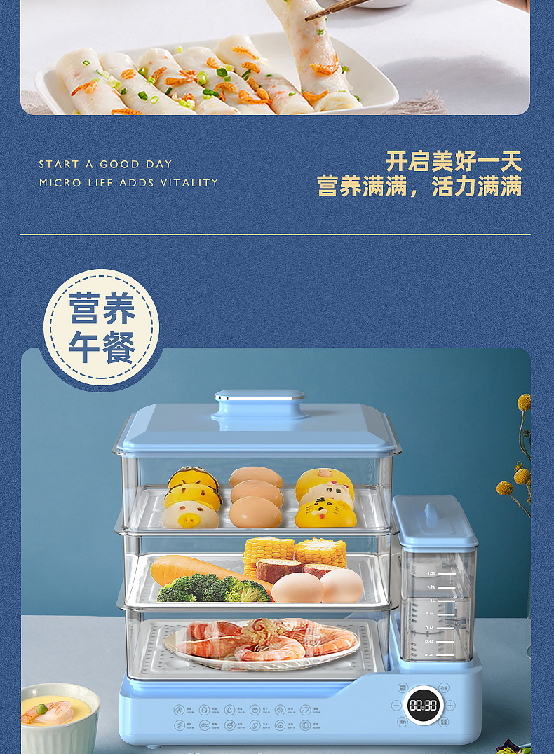 电蒸锅电蒸三层蒸煮一体蒸汽锅大容量可预约早餐机双旋钮