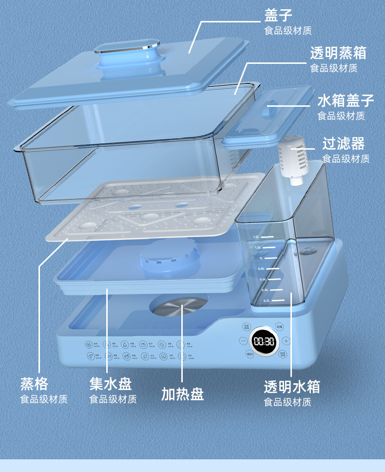 ZG-09三层电蒸锅蓝色【带滤芯】