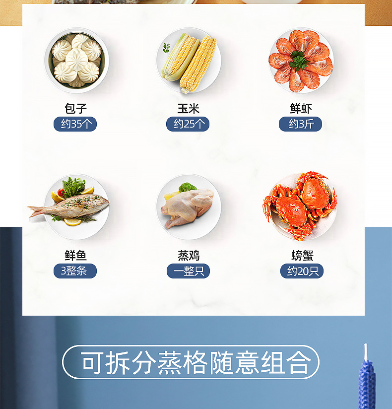 ZG-09三层电蒸锅蓝色【不锈钢款】