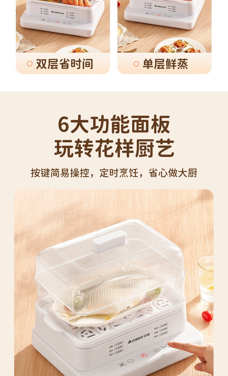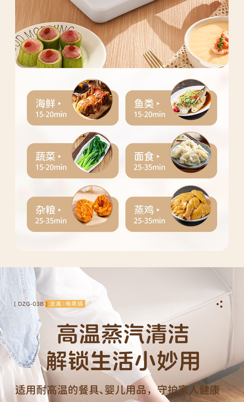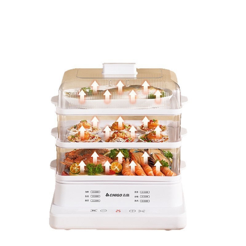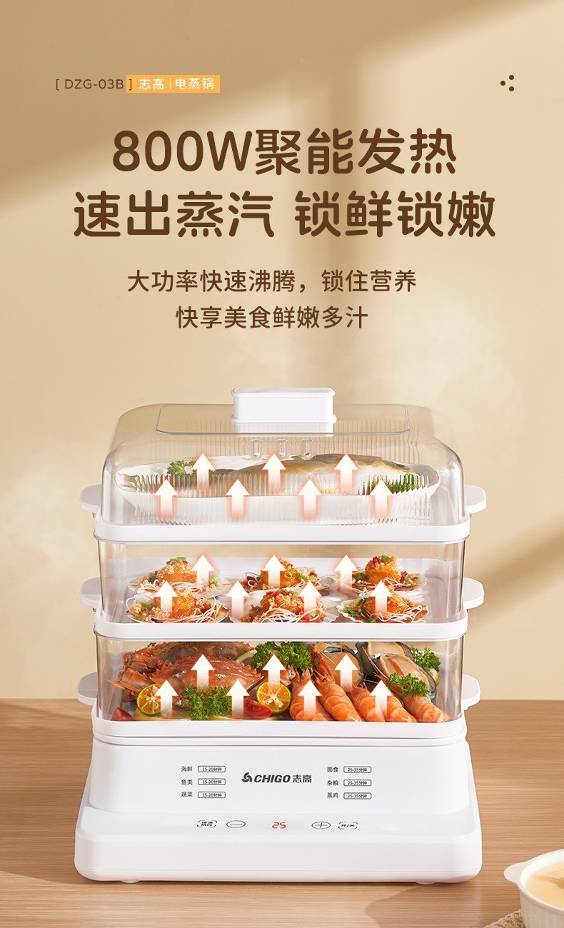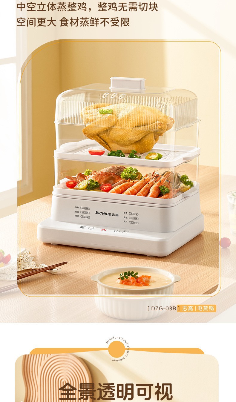 志高电蒸锅24L大容量家用三层多功能电蒸笼小型可视透明蒸锅