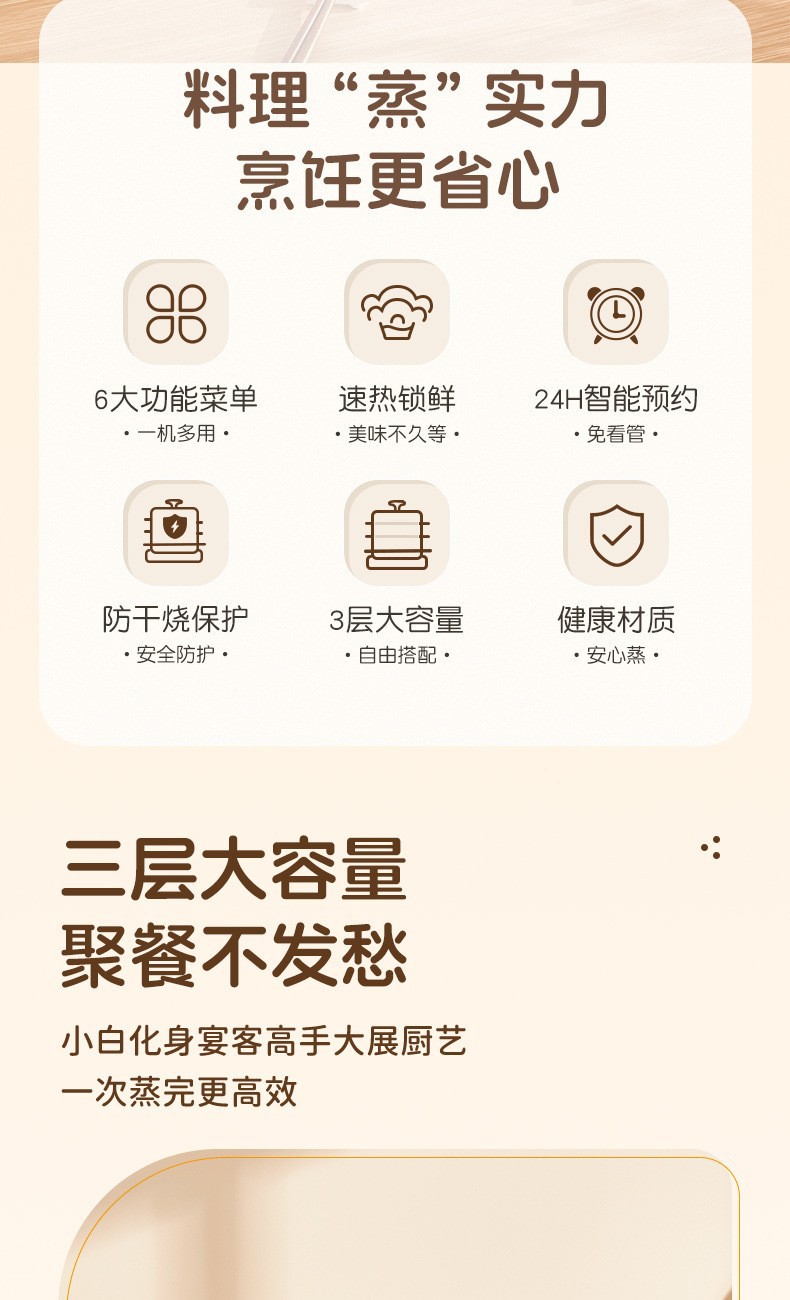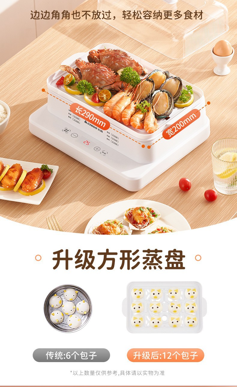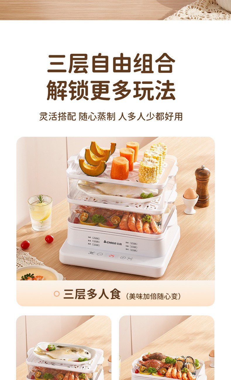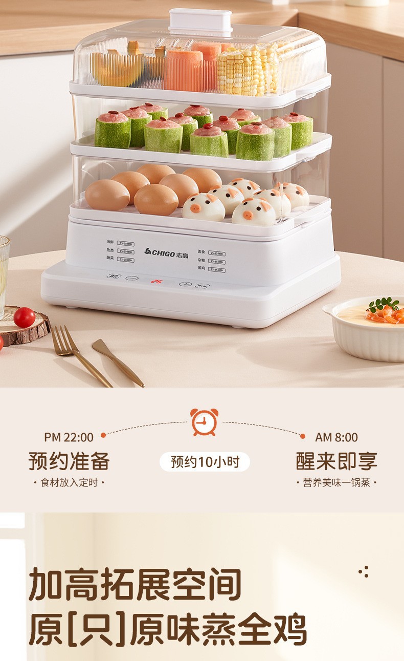 多功能电蒸锅家用大容量电蒸锅定时蒸煮一体三层蒸笼蒸汽锅