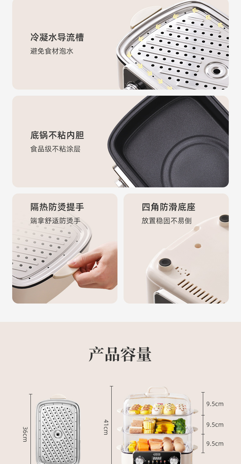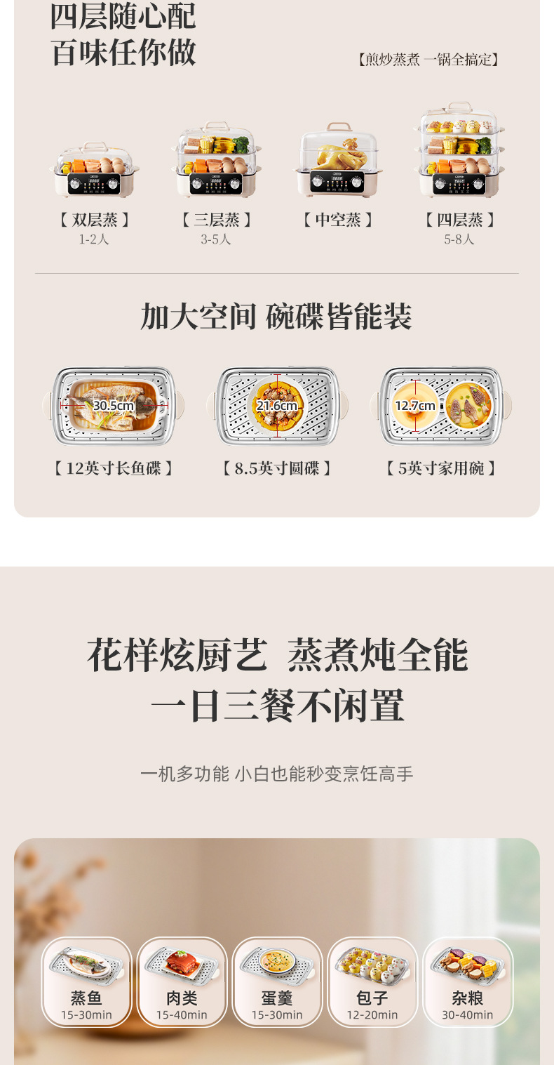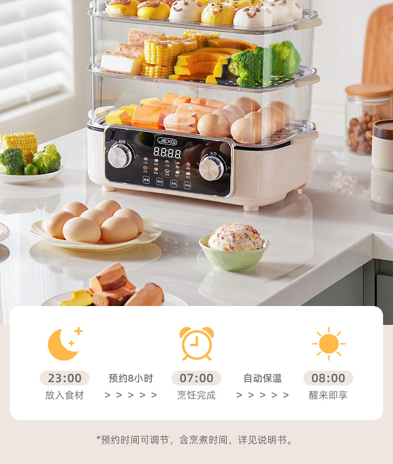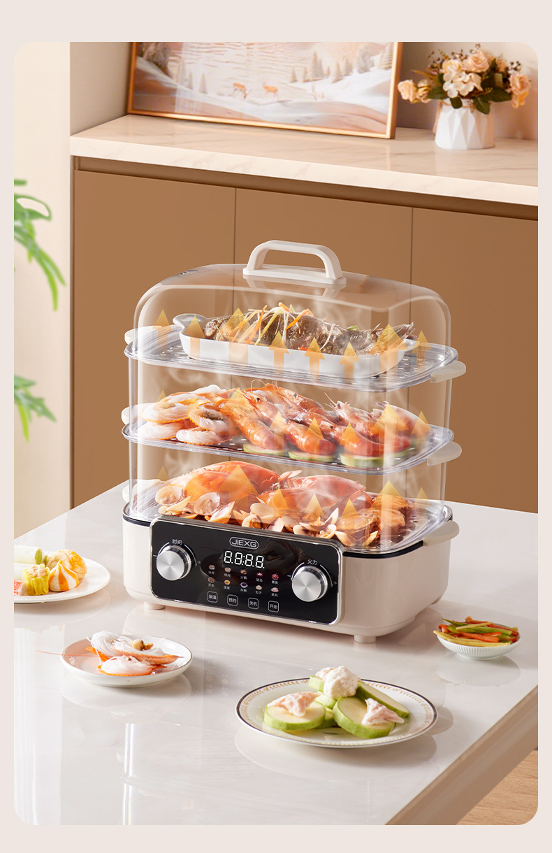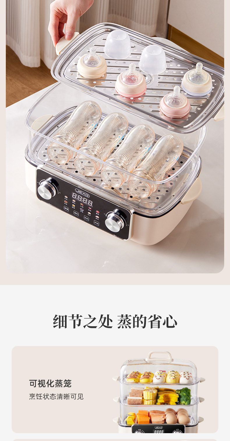 电蒸锅电蒸三层蒸煮一体蒸汽锅大容量可预约早餐机双旋钮