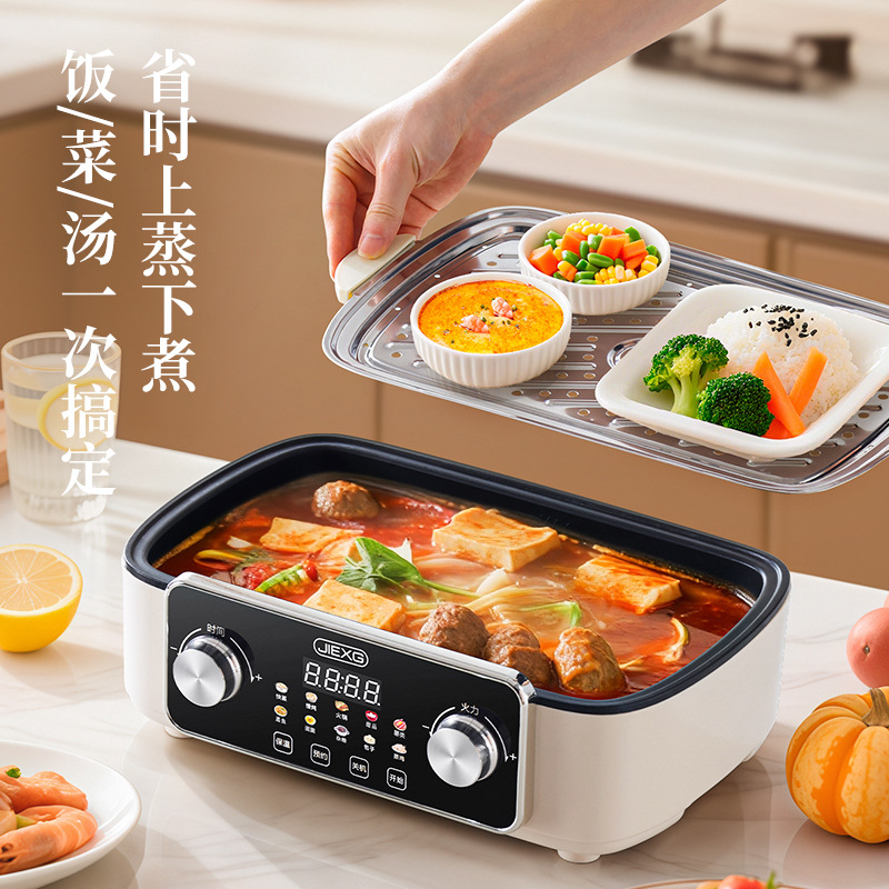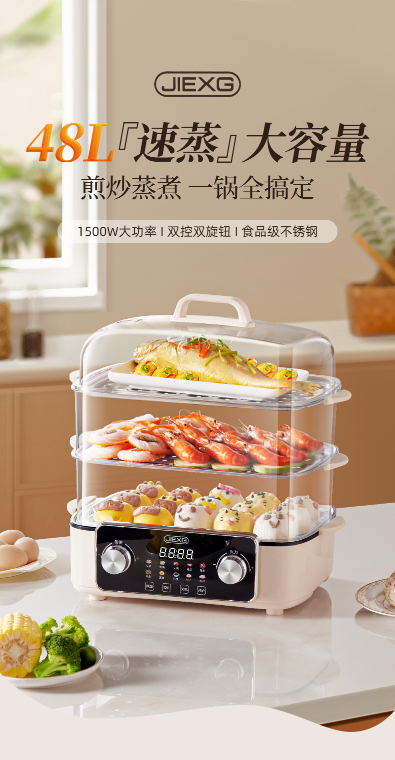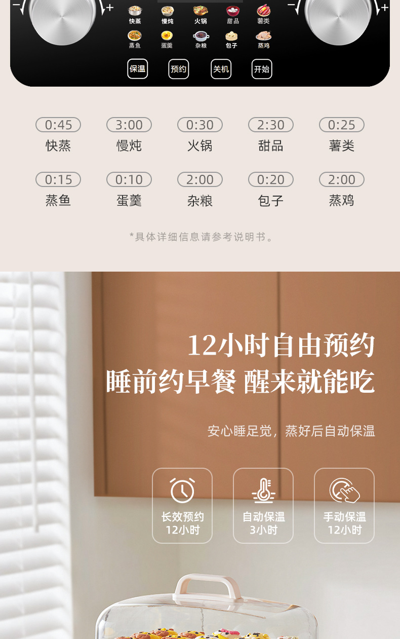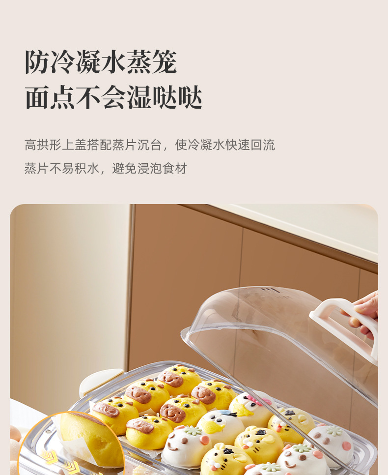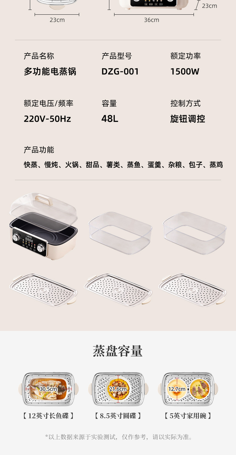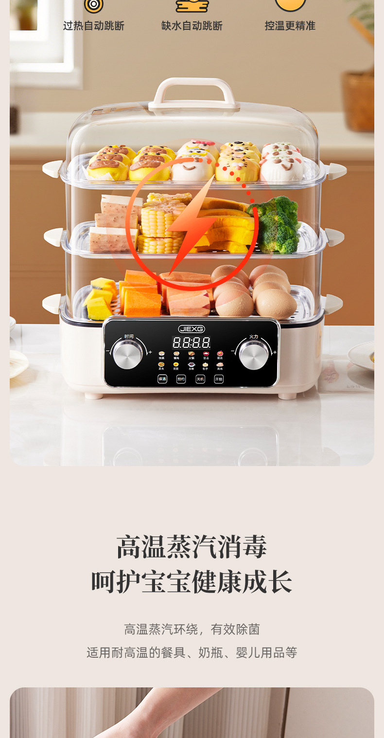 电蒸锅电蒸三层蒸煮一体蒸汽锅大容量可预约早餐机双旋钮