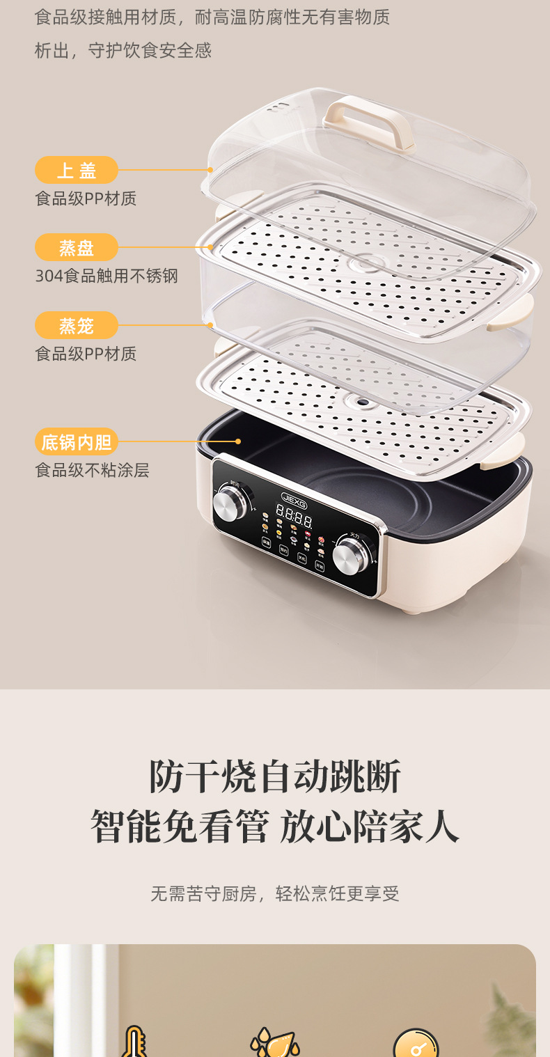 电蒸锅家用多功能三层大容量电蒸锅蒸煮一体防干烧蒸锅量