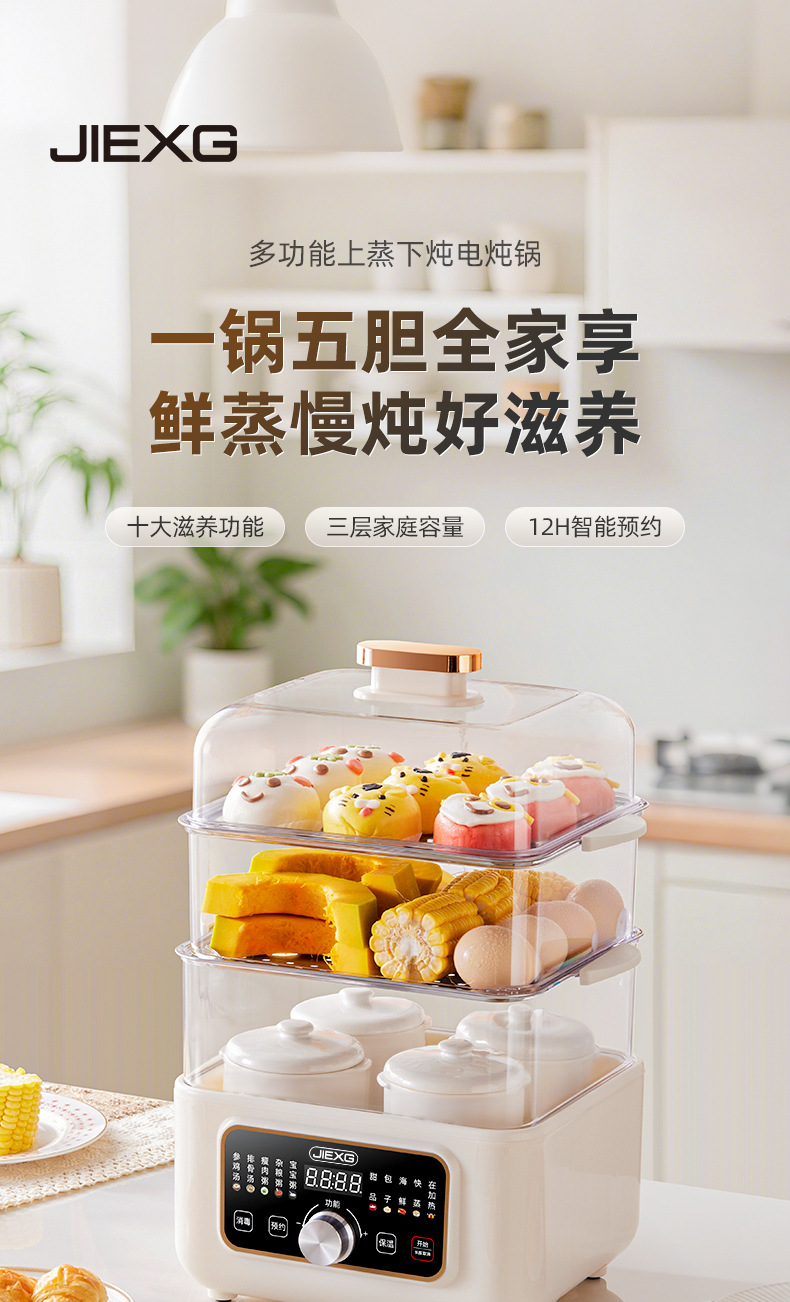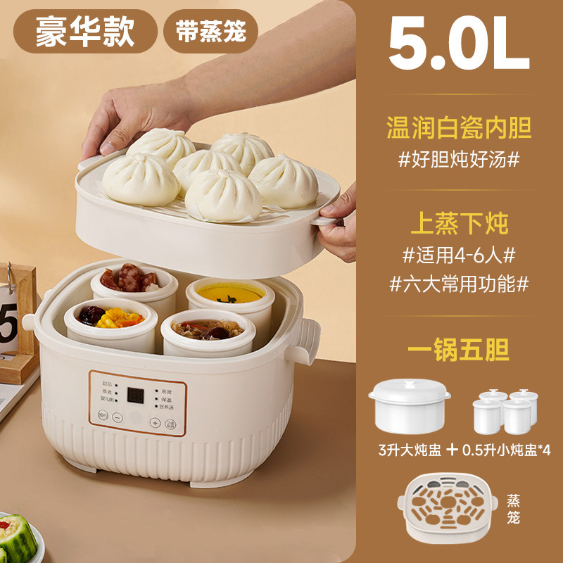 陶瓷电炖盅隔水家用电蒸锅预约多功能煲汤炖煮锅一锅四胆智能