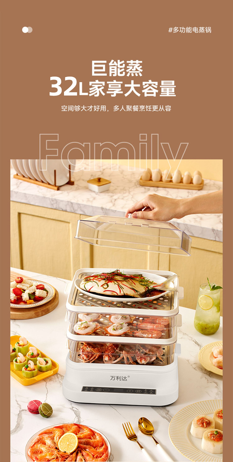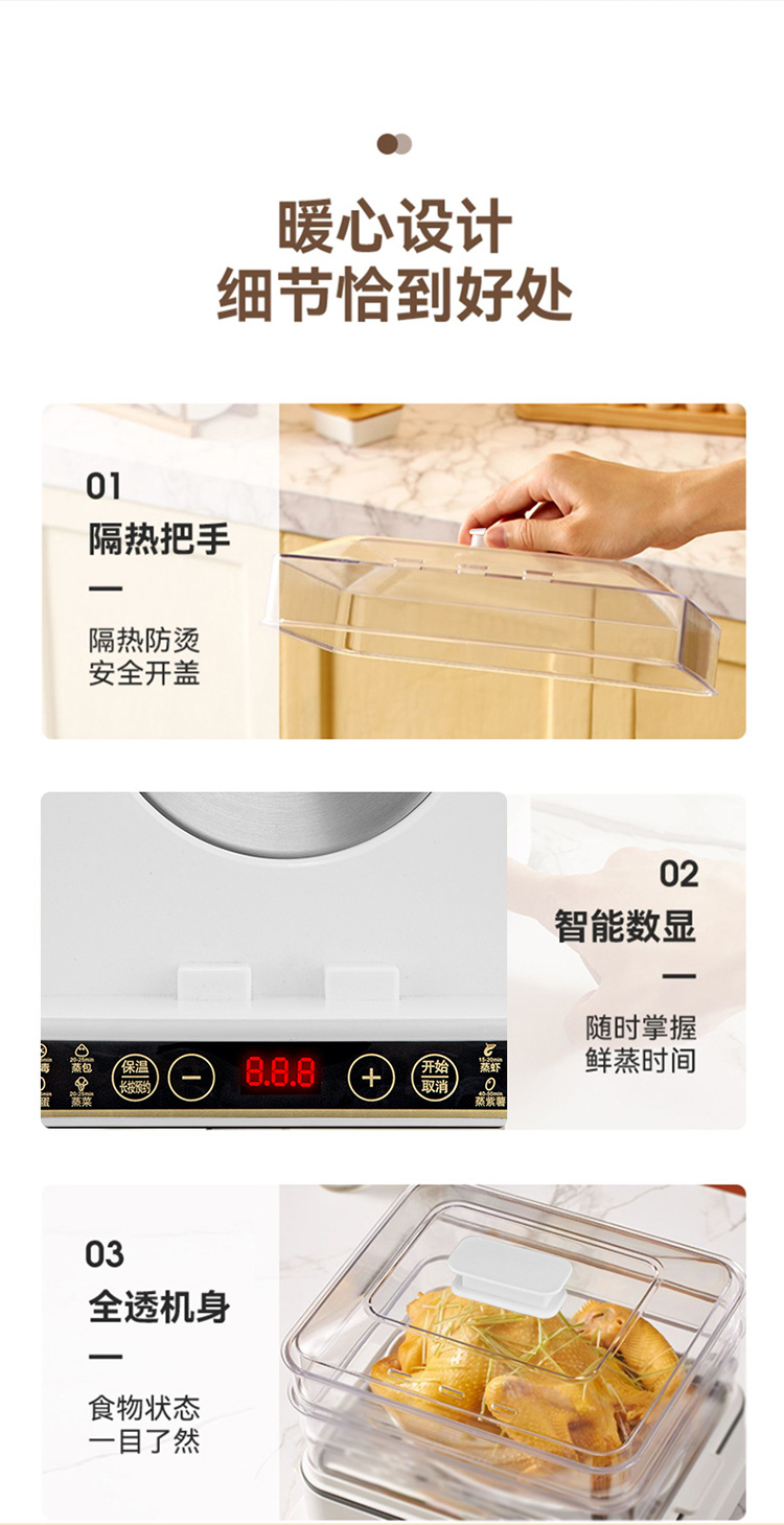 电蒸锅大容量家用一体多功能蒸汽锅智能多层透明