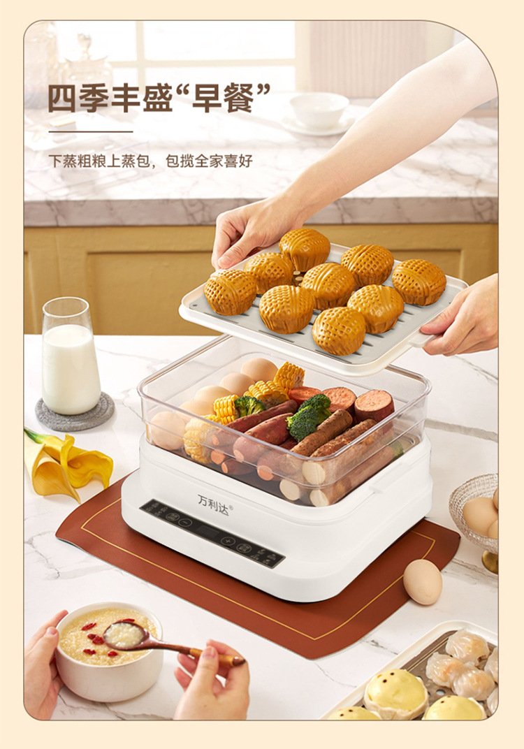 电蒸锅家用三层蒸锅大容量多功能可预约蒸煮一体早餐机