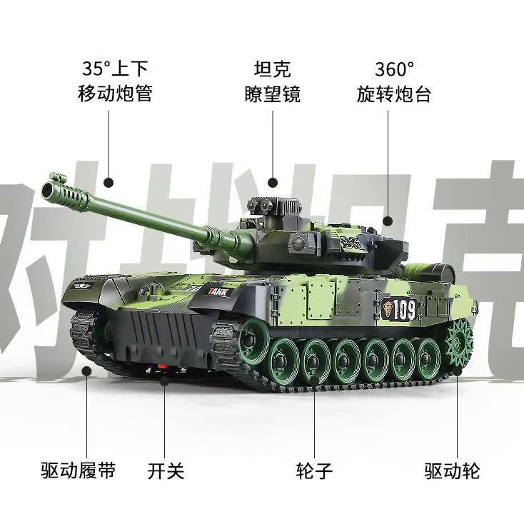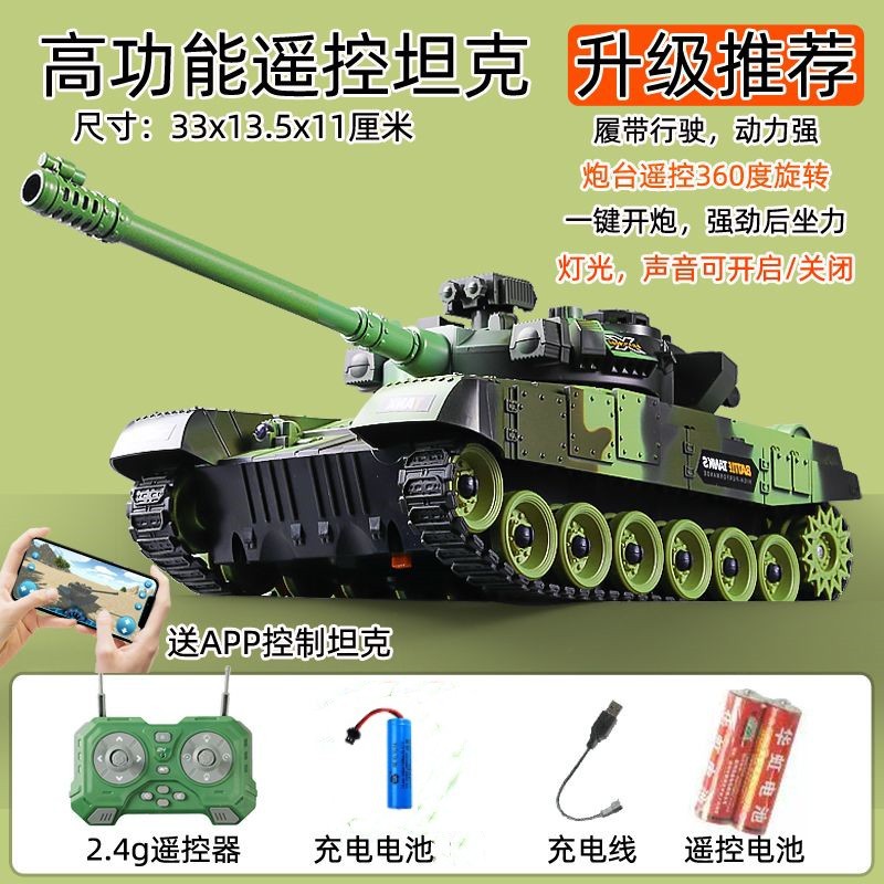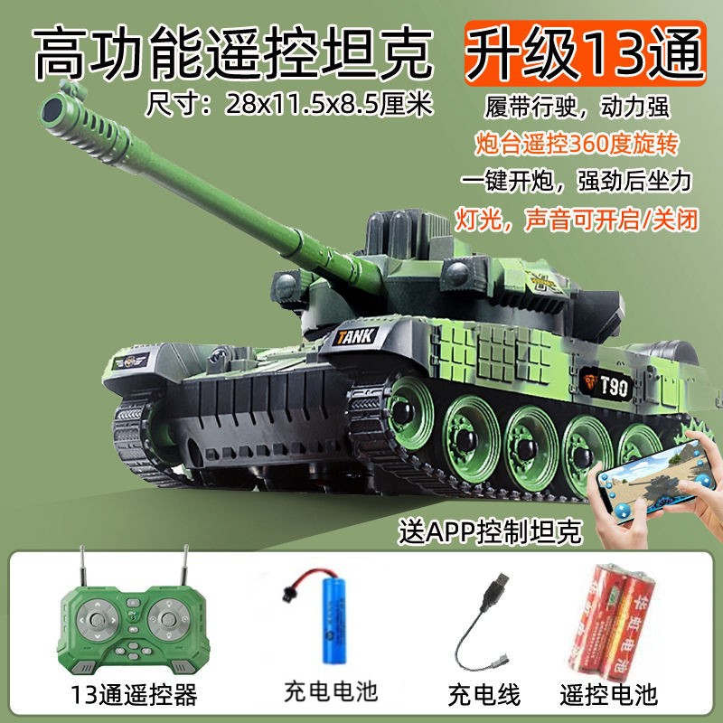 【升级款】11通T90遥控炮台可开炮-迷彩绿【手提礼盒】