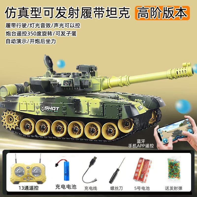 【豪华款】13通T90可发射水弹-迷彩黄【手提礼盒】